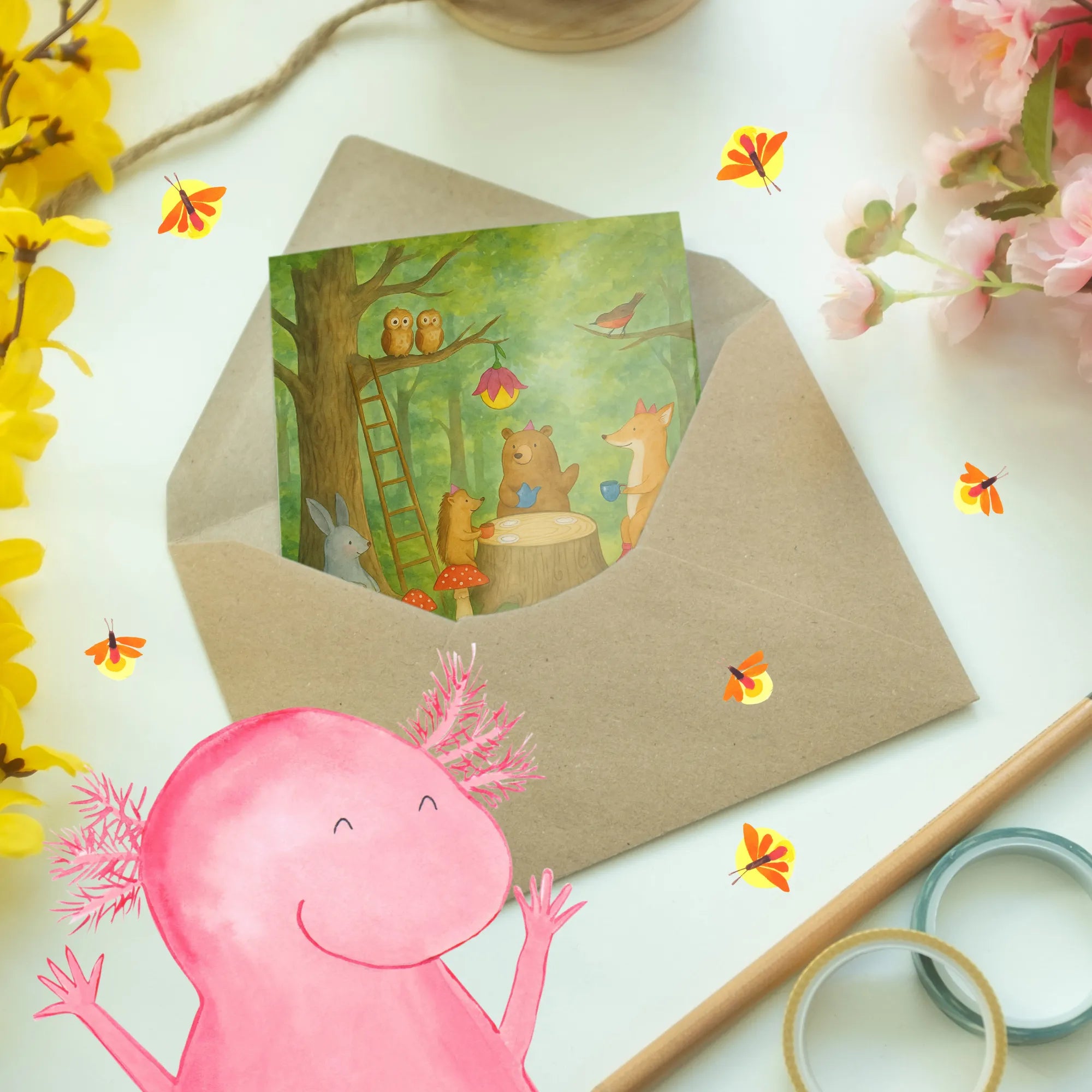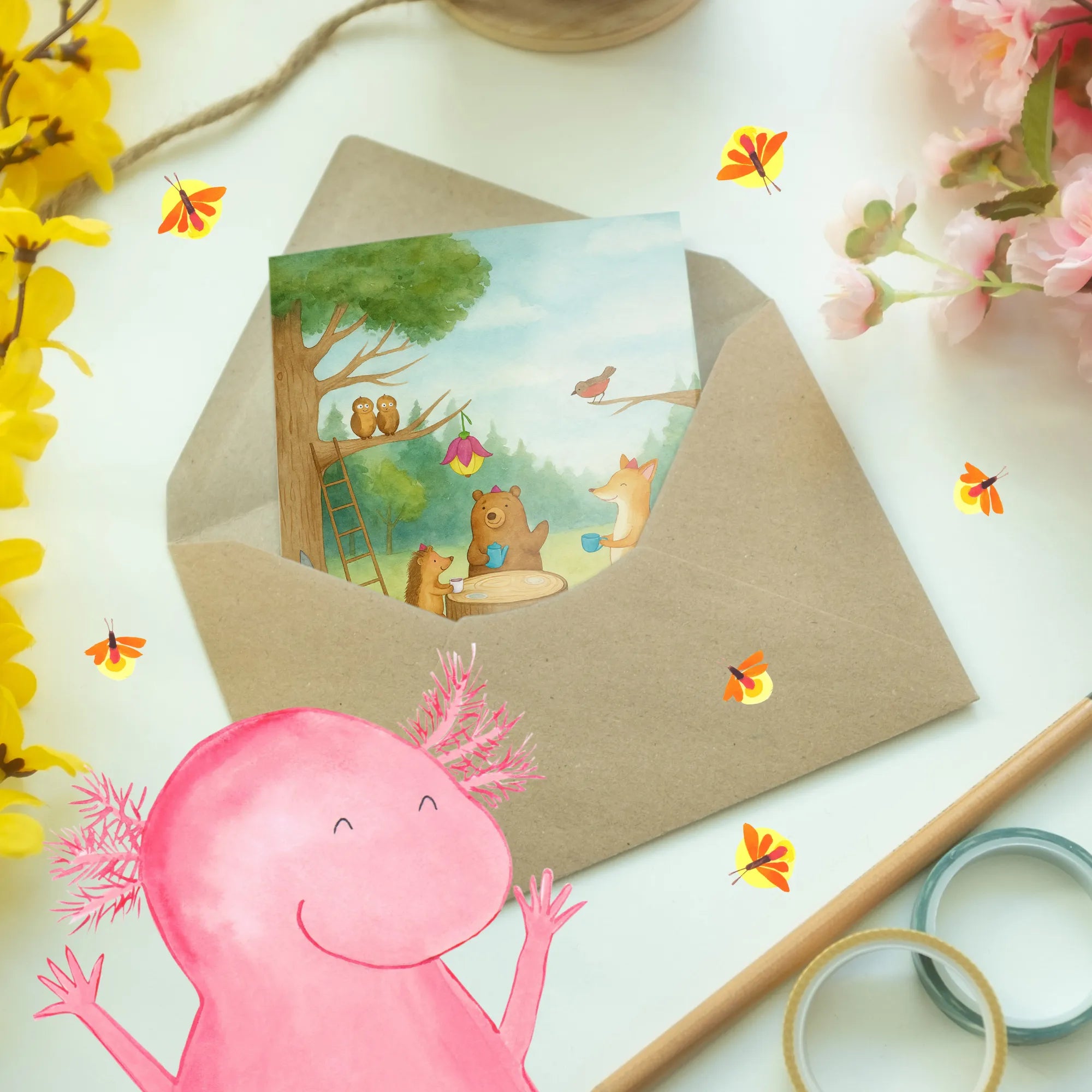Greetings card forest animals picnic Design - with a saying