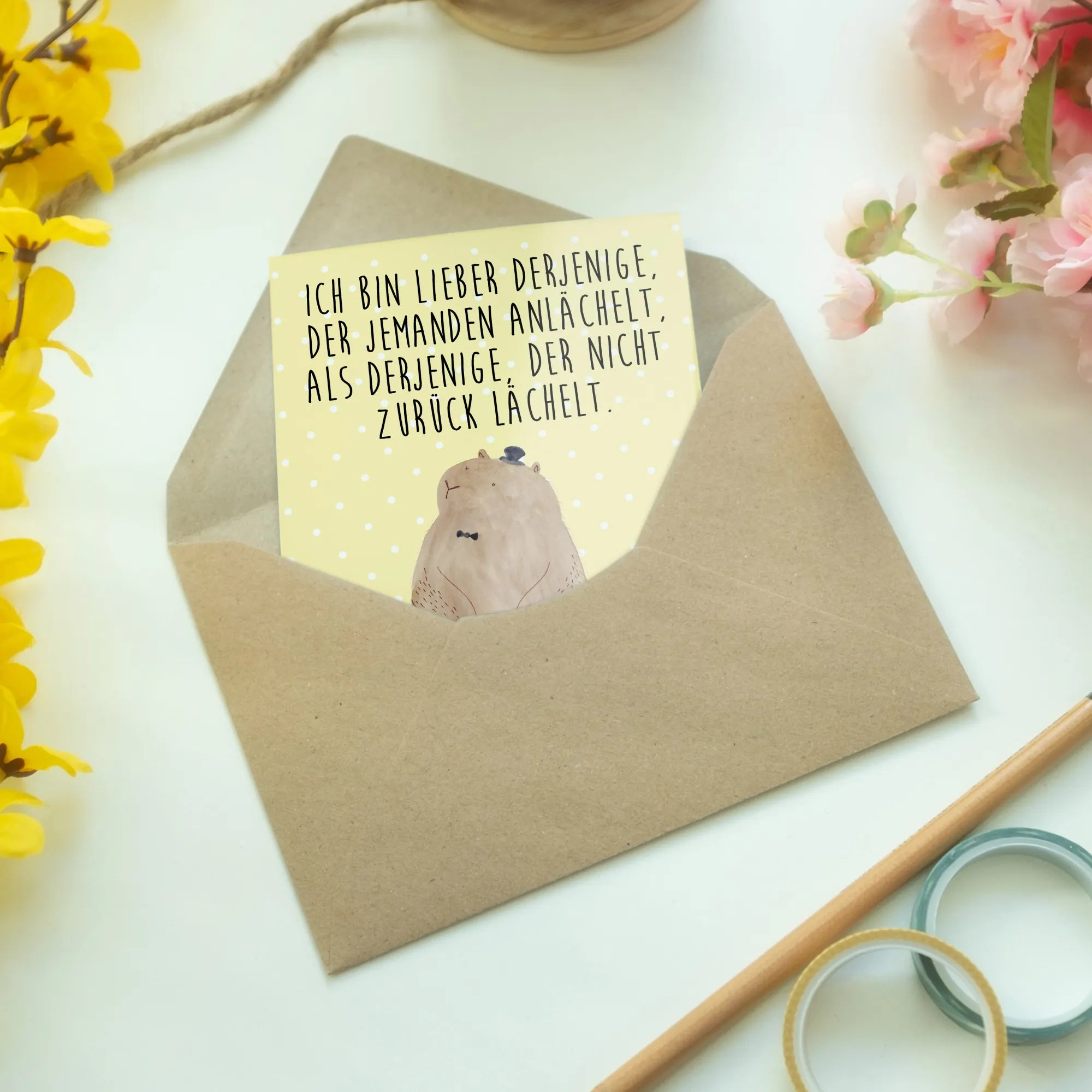 Greetings card Groundhog - with saying - Pastel Yellow