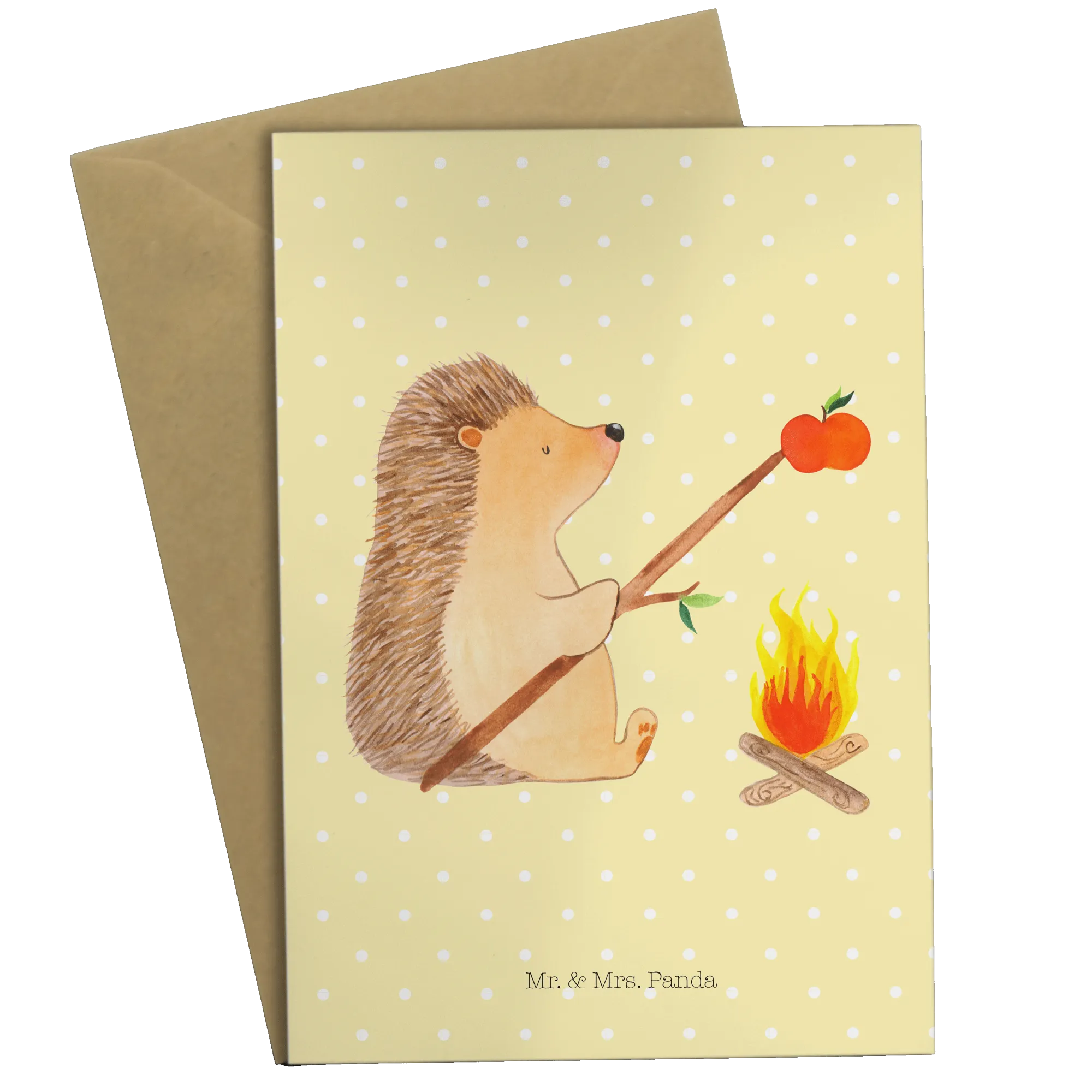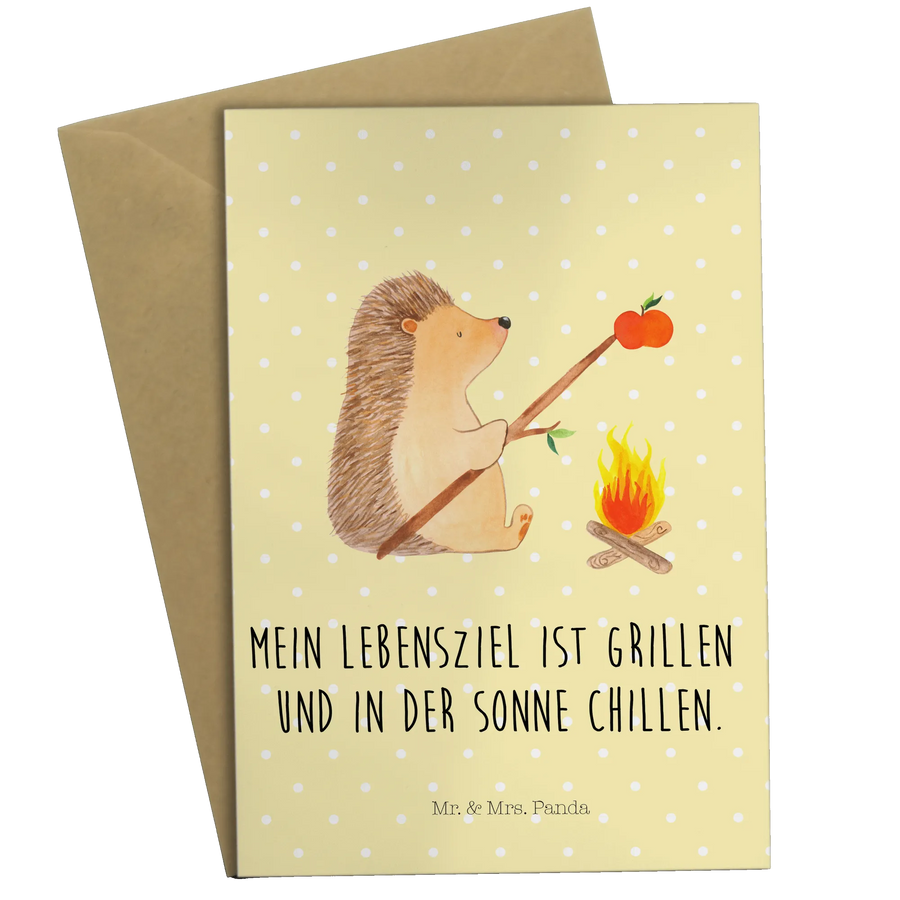 Greetings card Hedgehog grilling - with a saying - Pastel Yellow