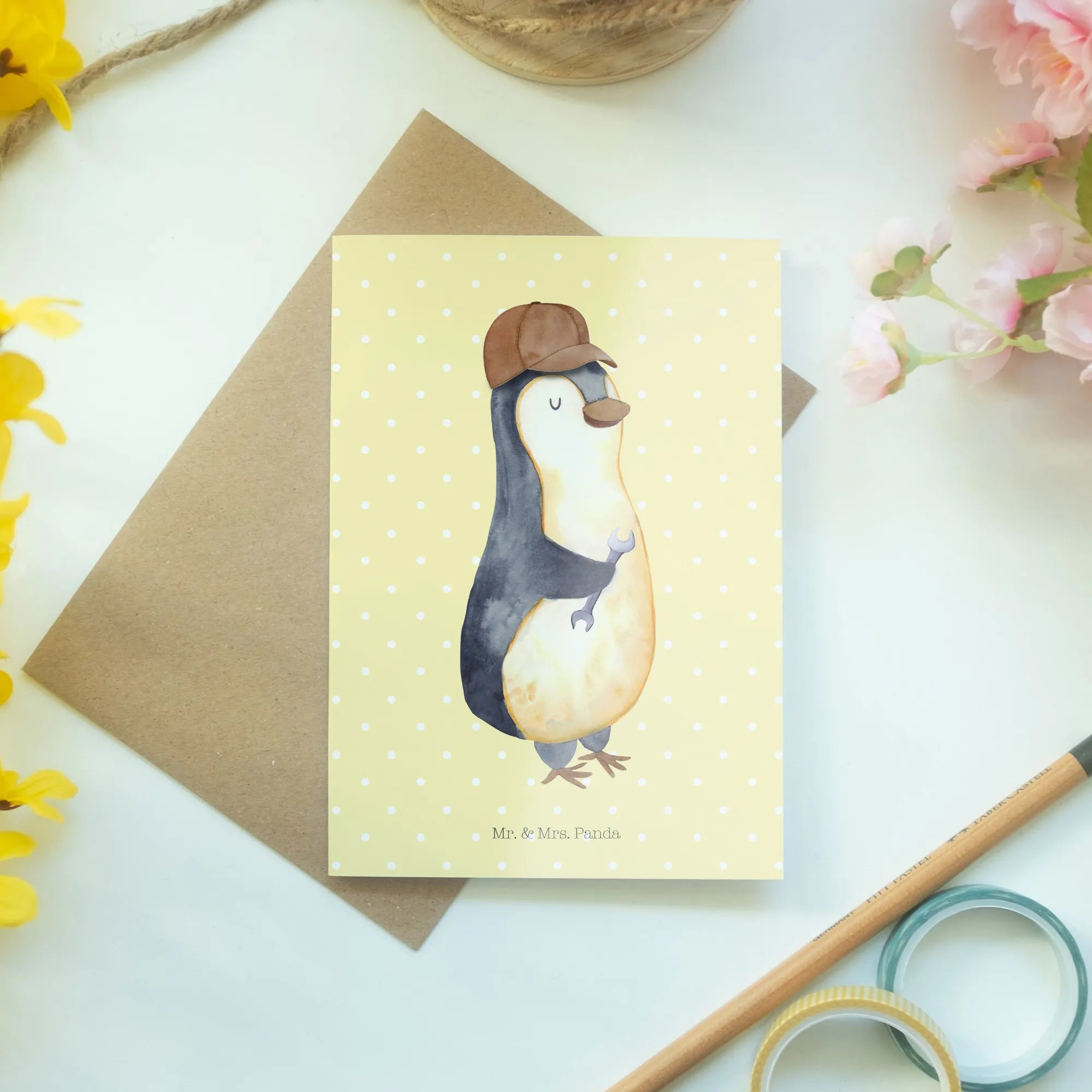 Imagine the joy on your dad's face as he opens this beautifully designed card to find a charming penguin wearing a cheeky brown hat and offering a playful grin, holding a stylish wrench in his flipper. This whimsical motif embodies the lovable chaos of family life, making it the ideal choice for a dad who perhaps isn't the handyman he likes to think he is. It’s the small, loving reminders like this that make family life special!