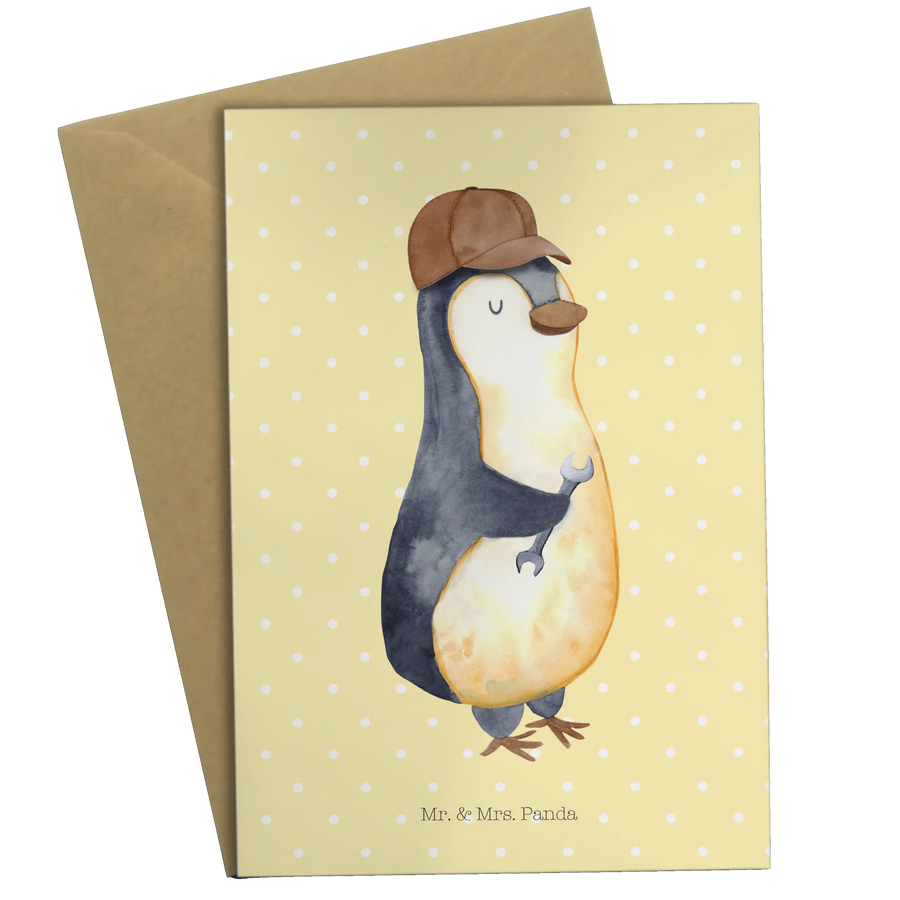 This unique card features an adorable penguin character wearing a stylish cap and holding a wrench, perfectly capturing the humor and essence of fatherhood. The playful slogan 'If Daddy can't fix it, we're screwed.' speaks volumes about the trusty role dads play in our lives, all while inviting a chuckle or two. Every father has that handyman side, and this card does an excellent job of celebrating it!