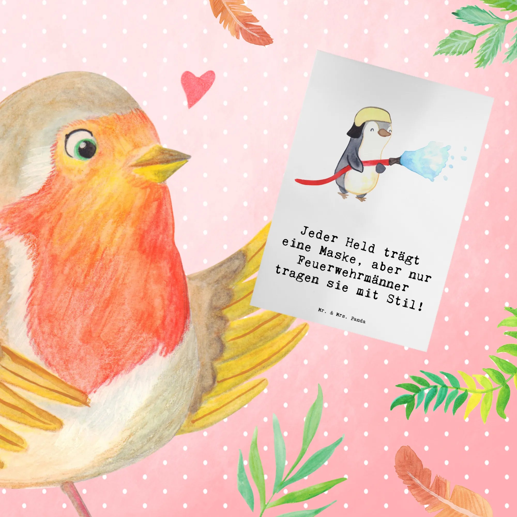 Greetings card Jeder Held trägt eine Maske, aber nur Feuerwehrmänner tragen sie mit Stil! - Sea Breeze