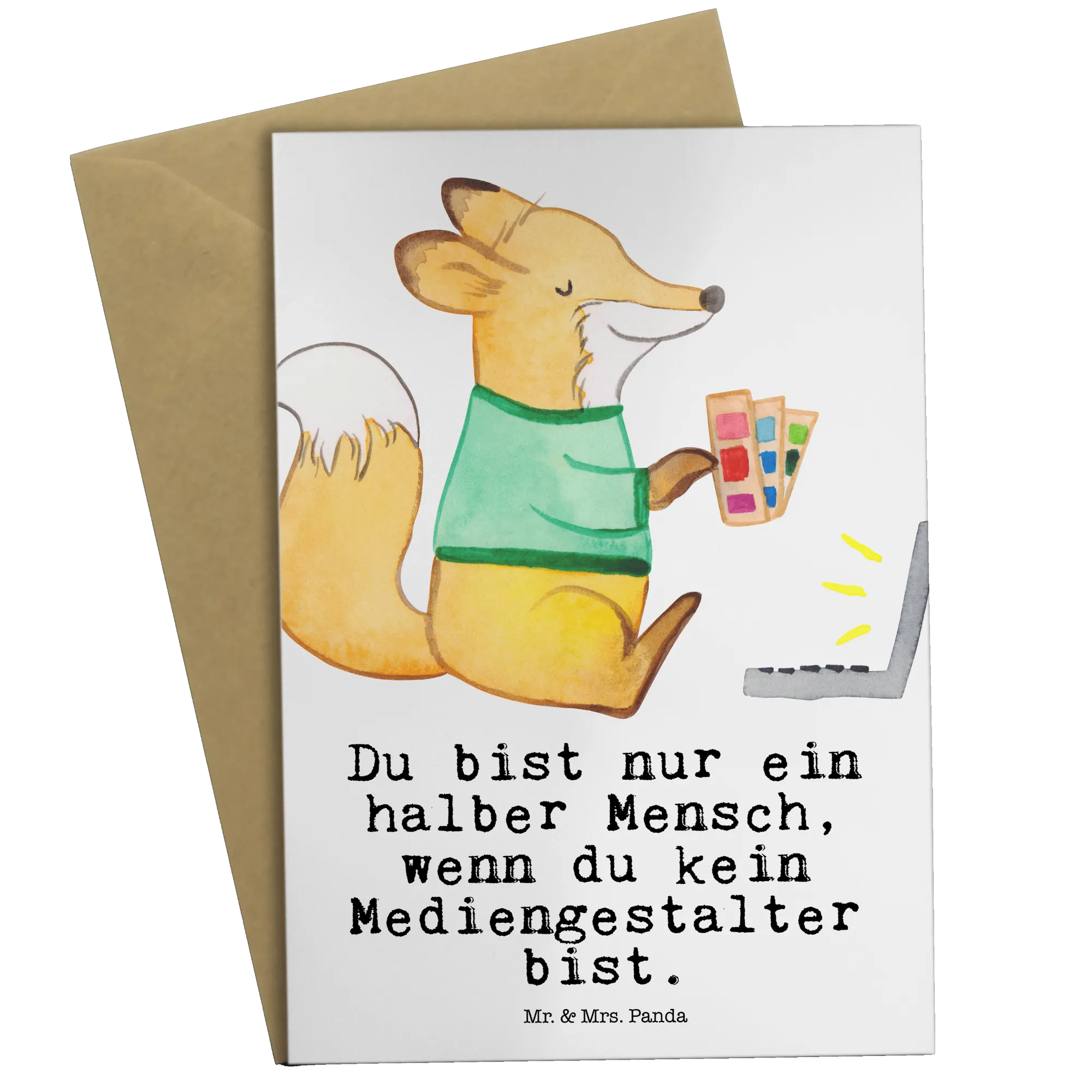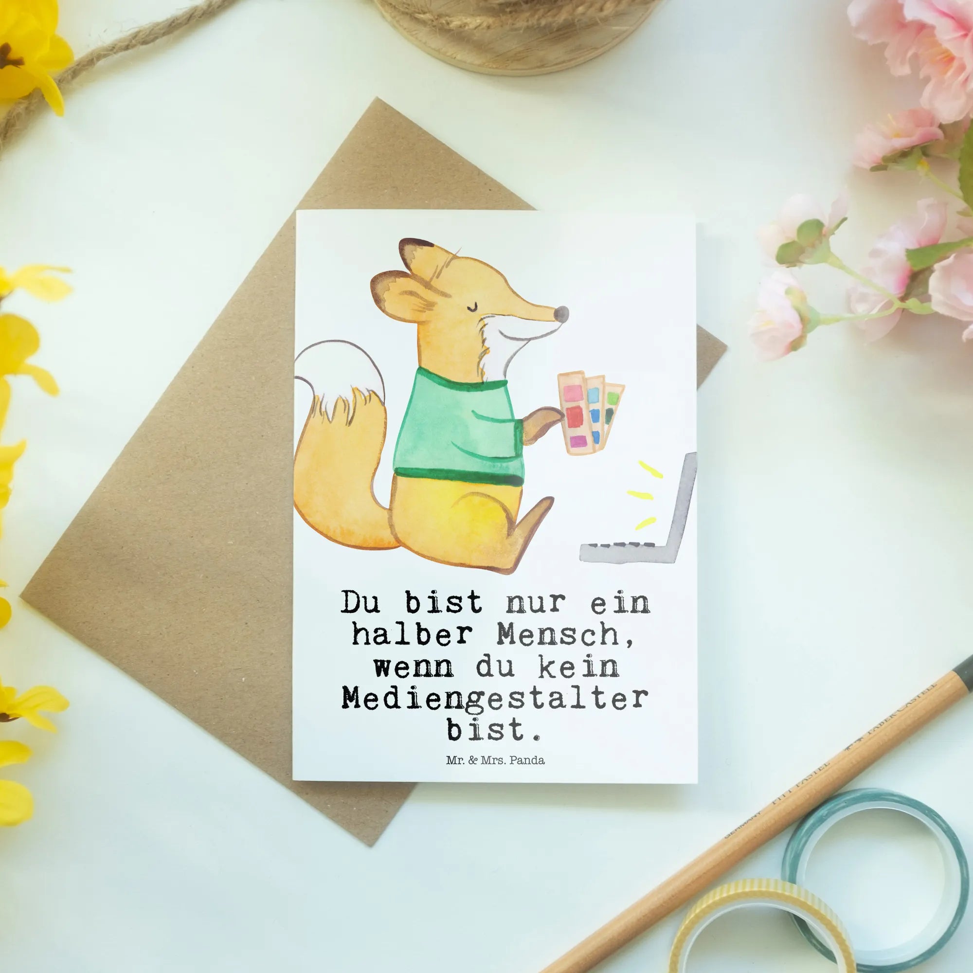 What makes this greeting card even more special is the heartwarming slogan that reads, "Is life even worth living if you're not a media designer?" This witty saying, combined with the whimsical design, is sure to bring a smile to anyone who appreciates the world of media design. It’s perfect for graphic designers, media designers, and anyone working in a creative field.