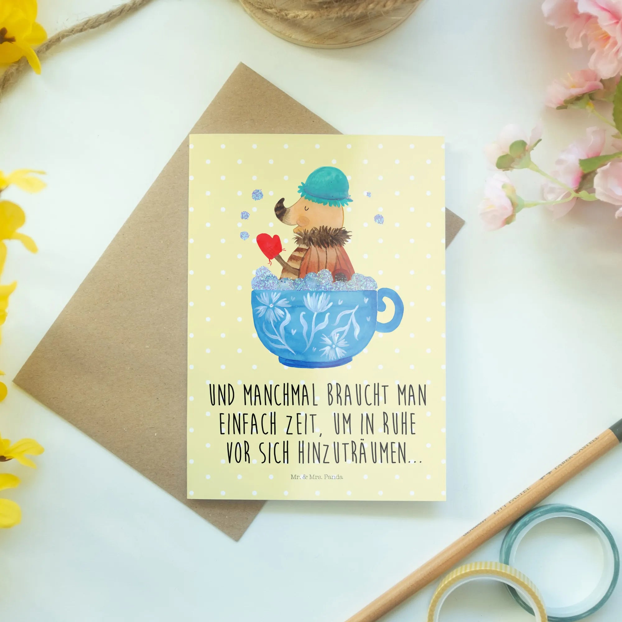 Greetings card Moth foam bath - with saying - Pastel Yellow