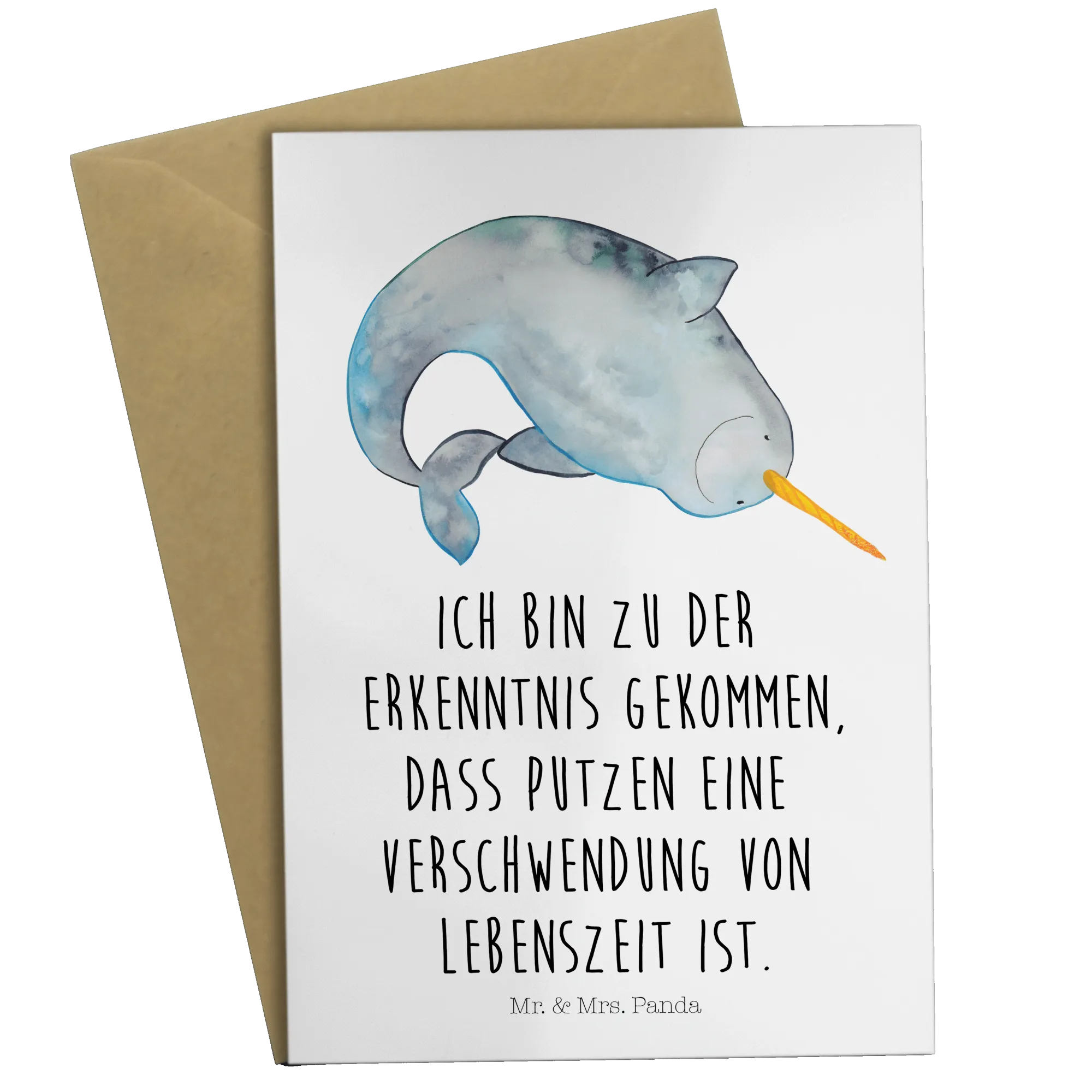 Greetings card Narwhal - with a saying - White