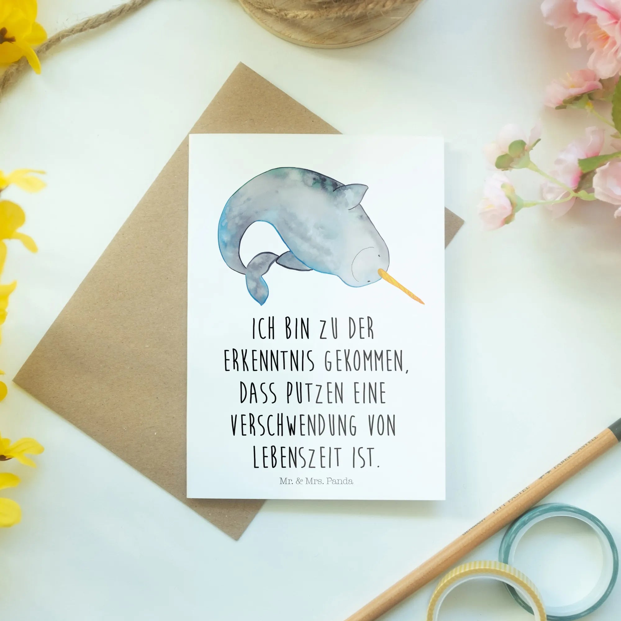 Are you searching for the perfect card to send your best wishes and warm thoughts? Look no further! The Narwhal Greetings Card from Mr. & Mrs. Panda's Marine Animals Collection is the ideal choice for ocean lovers and anyone who appreciates adorable art.