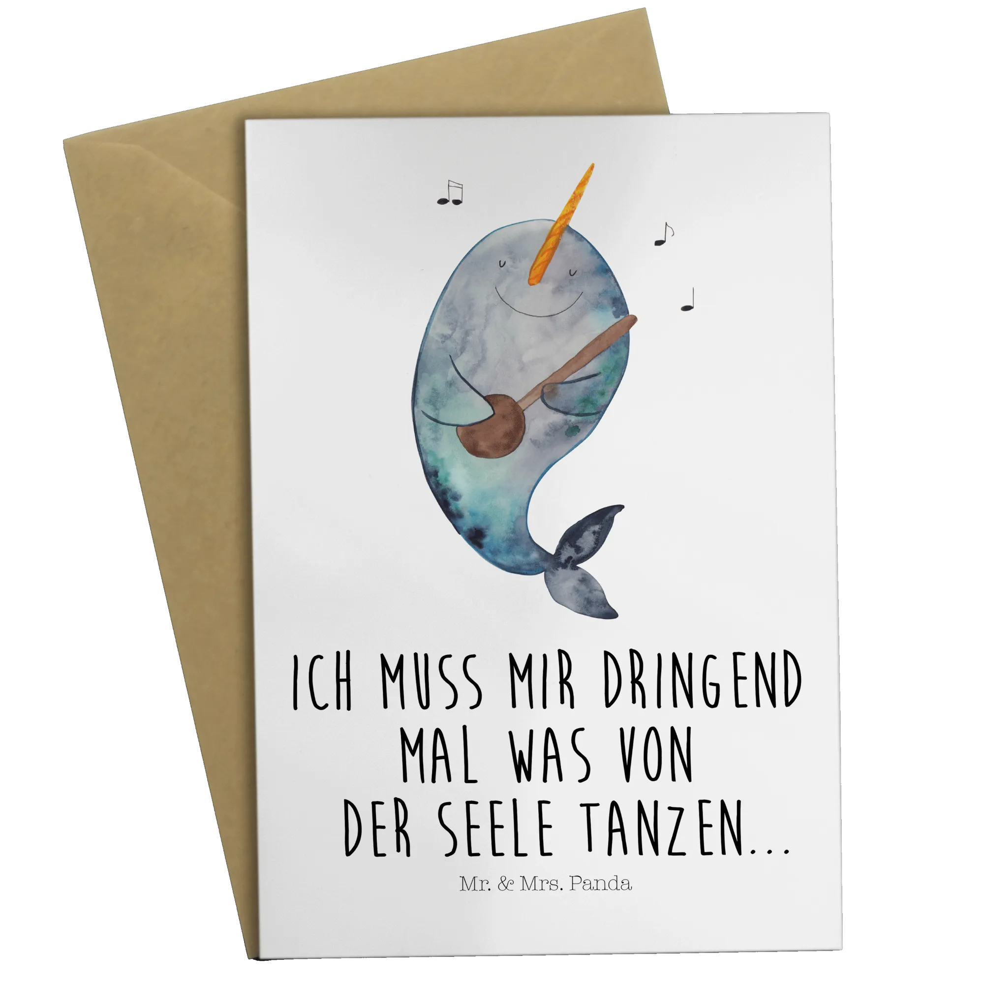 Picture a joyful narwhal, strumming his guitar with a big smile, embodying the essence of relaxation and fun. In a stunning blend of soft blue and gray watercolor hues, this delightful creature invites you to dance away your frustrations. The musical notes swirling around him echo his joyful melody, perfectly encapsulating the saying, 'Ich muss mir dringend mal was von der Seele tanzen.' Whether it's a tough day or just everyday stress, this whimsical narwhal reminds us that a good tune can help smooth along our worries with a sway of the body and a strum of the strings.