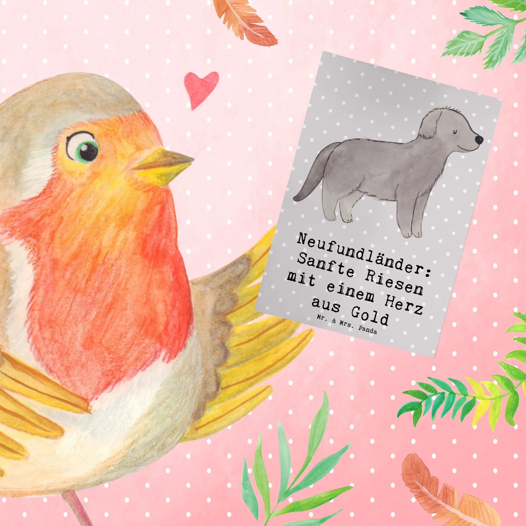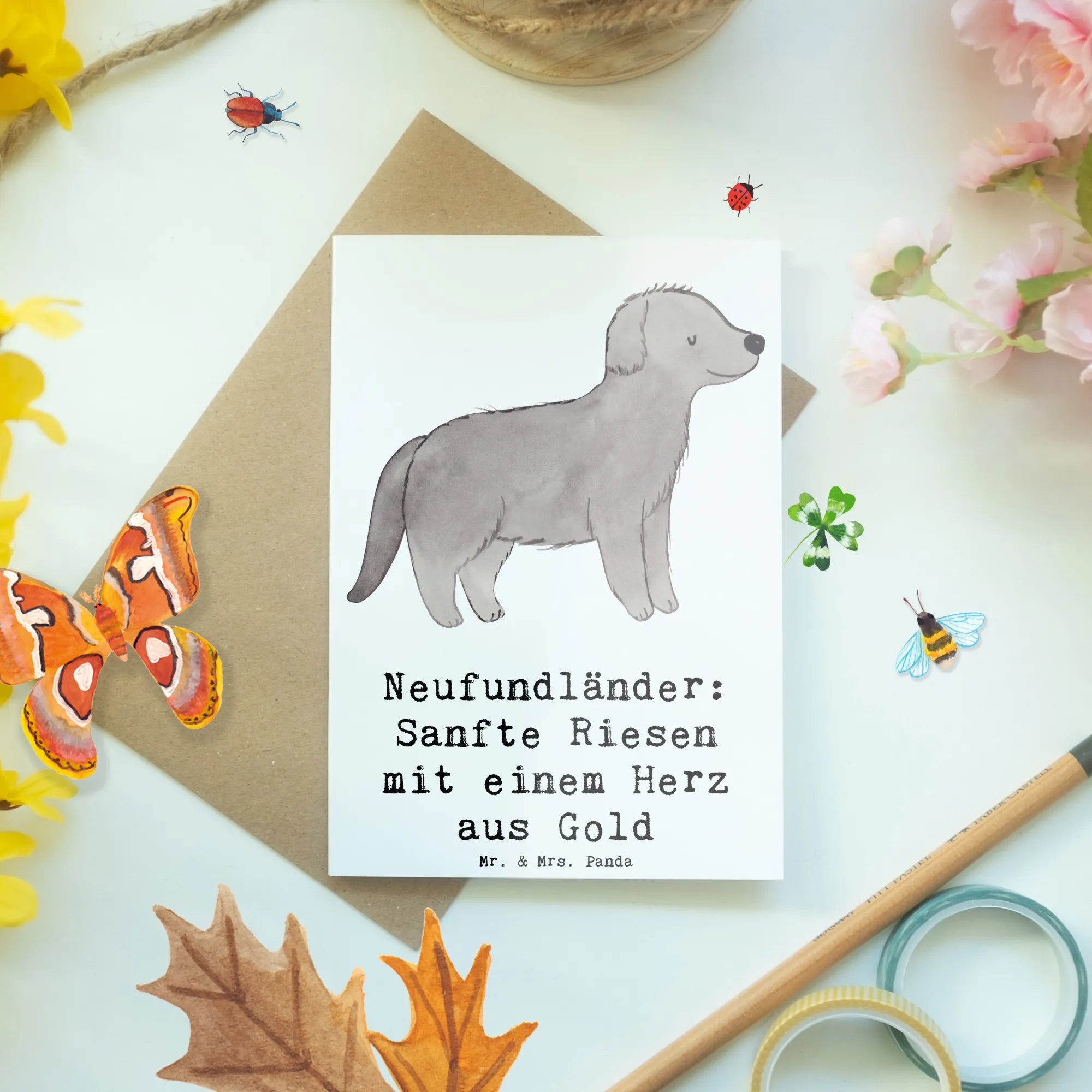 Greetings card Neufundländer: Sanfte Riesen mit einem Herz aus Gold - White