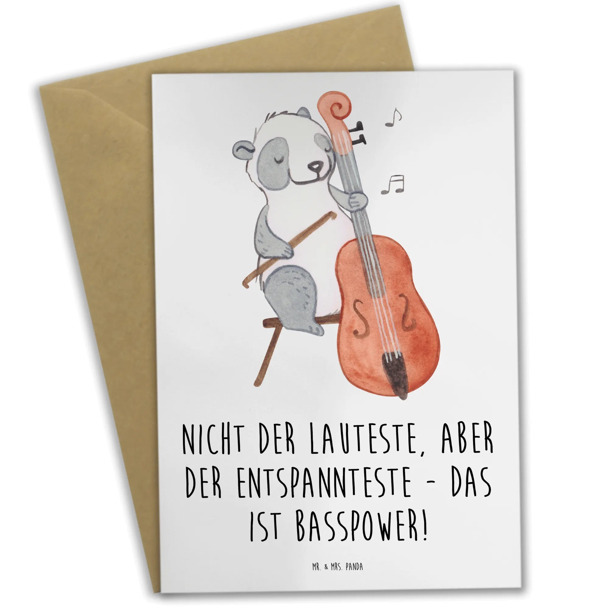 Greetings card Nicht der Lauteste, aber der Entspannteste - Das ist Basspower! Ansichtskarten, Hochzeitskarte, Grußkarte, Karte, Geburtstagskarte, Einladungskarte, Klappkarte, Glückwunschkarte, Instrumente, Geschenke Musiker, Musikliebhaber