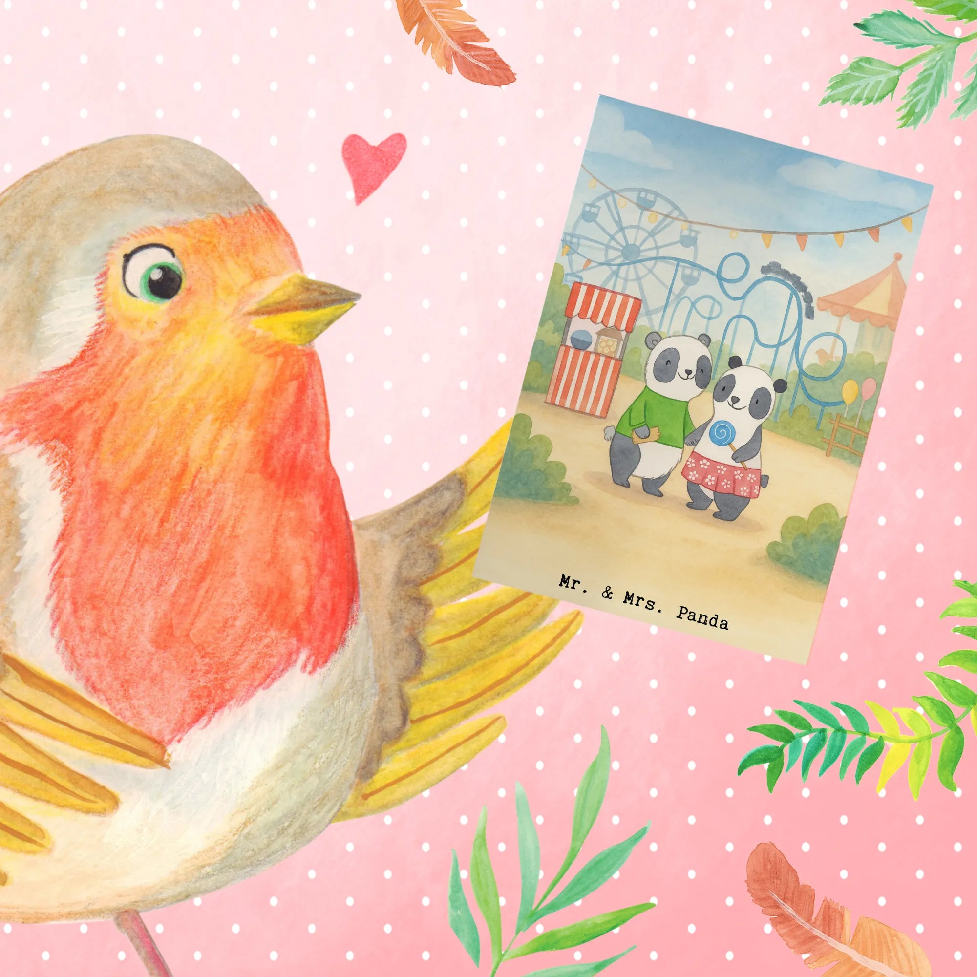 Greetings card pandas visit amusement park Design - with saying