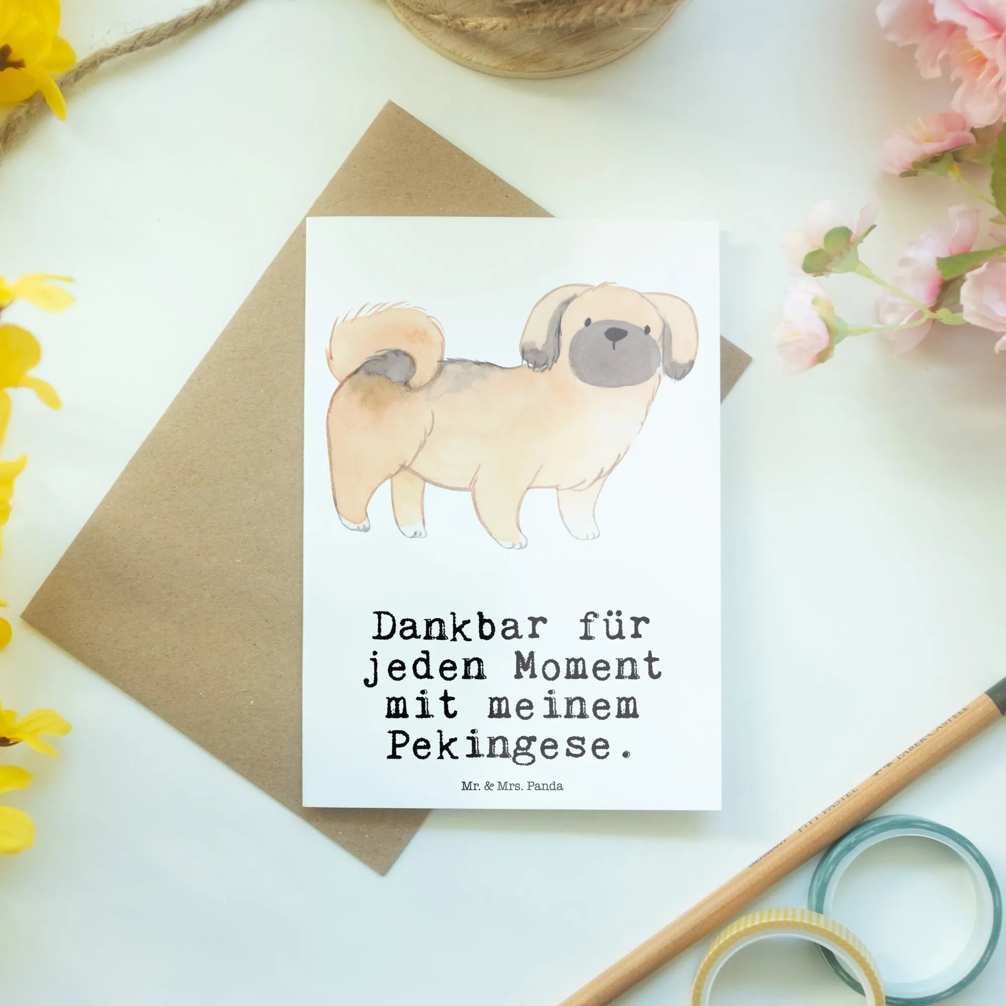 Greetings card Pekingese moment