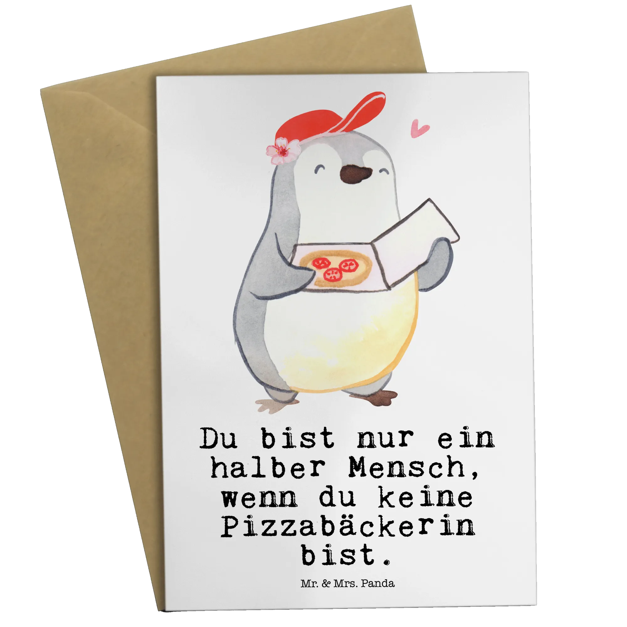 Greetings card Pizza maker Heart - with saying - White
