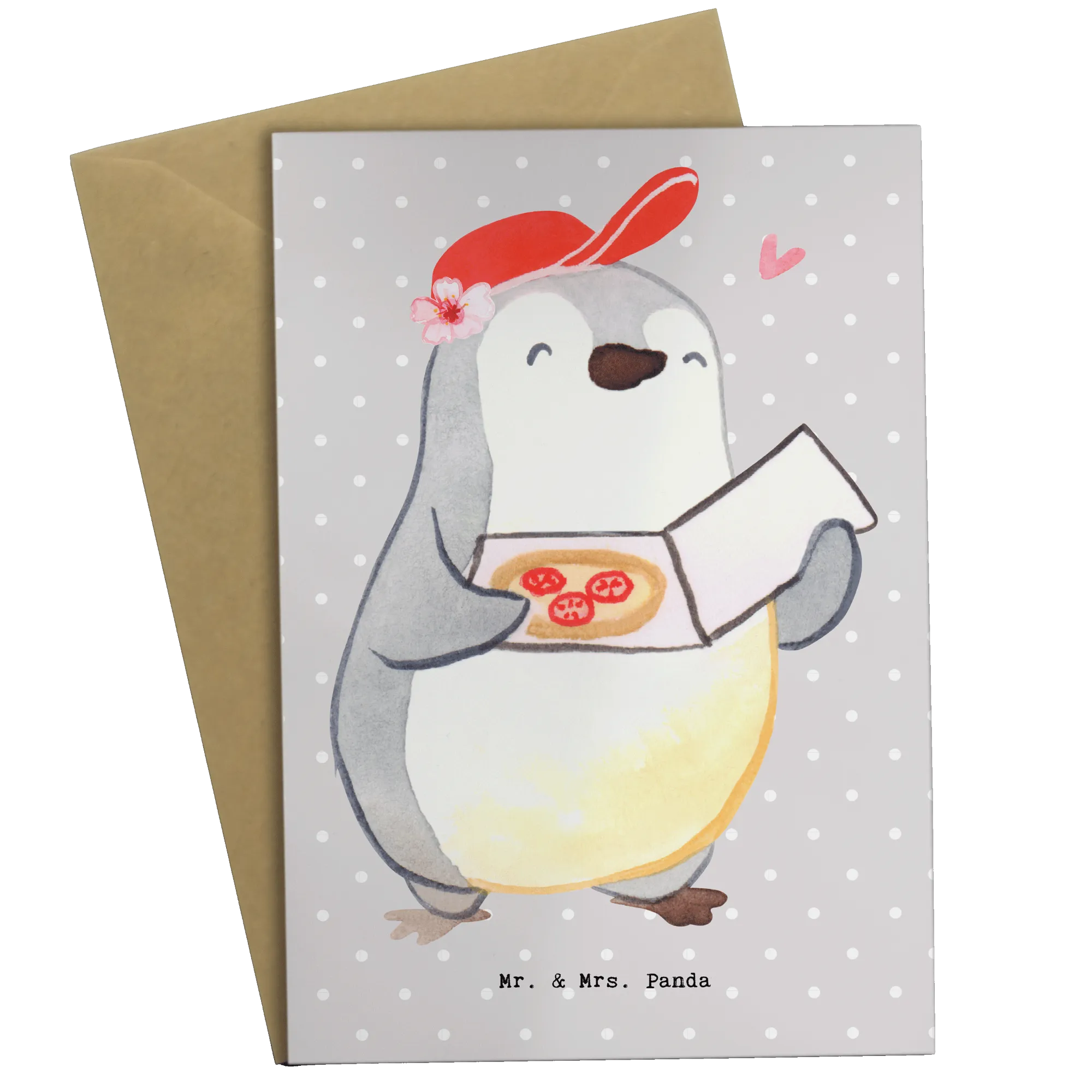 Looking for a delightful gift that will bring joy to the hardworking pizza makers in your life? Our Mr. & Mrs. Panda Greetings Card with a charming pizza maker design is just the thing to brighten their day! This beautifully illustrated card showcases a sweet bear chef decked out in an apron, a cooking spoon in one hand, and a chili in the other. It's perfect for celebrating their passion and skill in crafting the most delicious pizzas around!