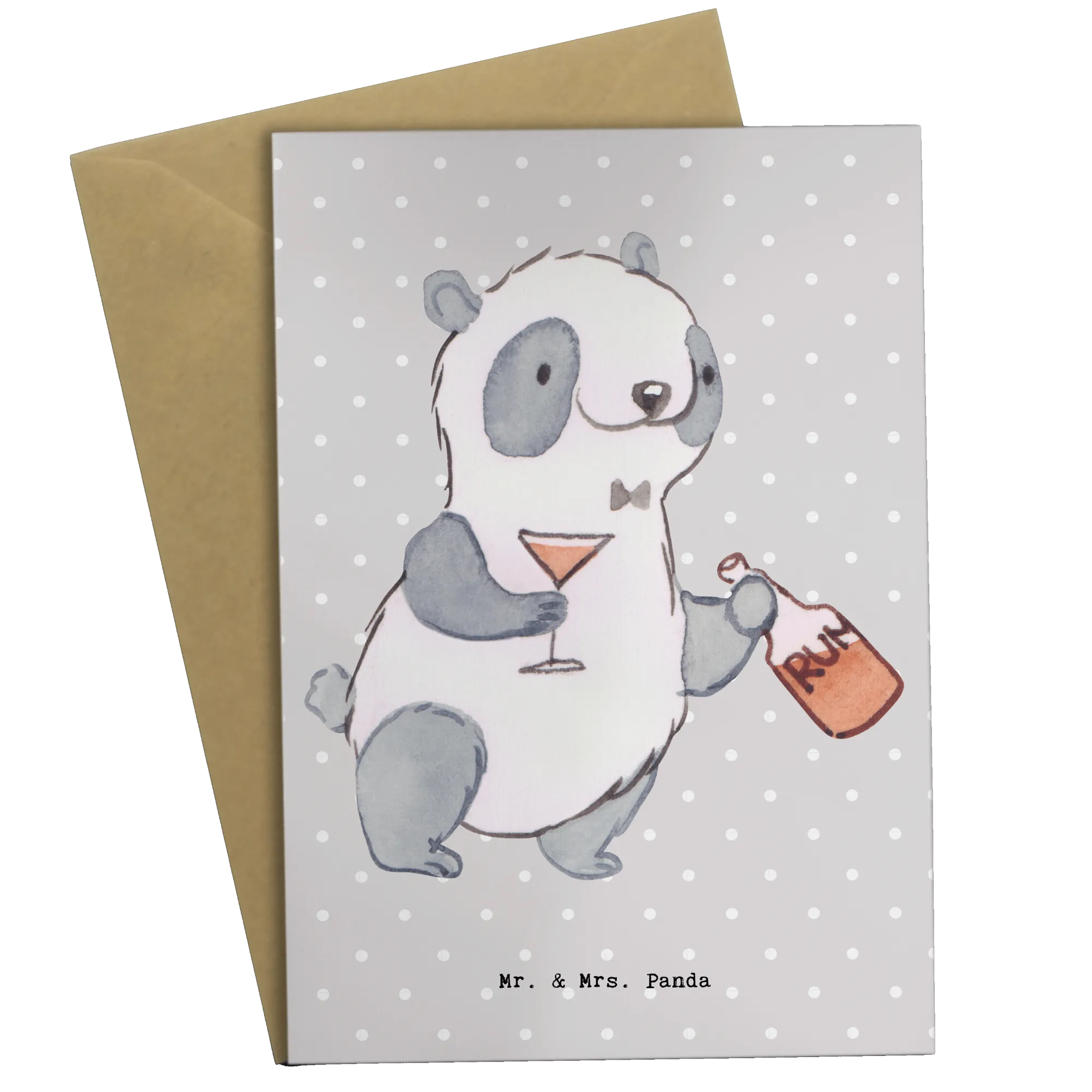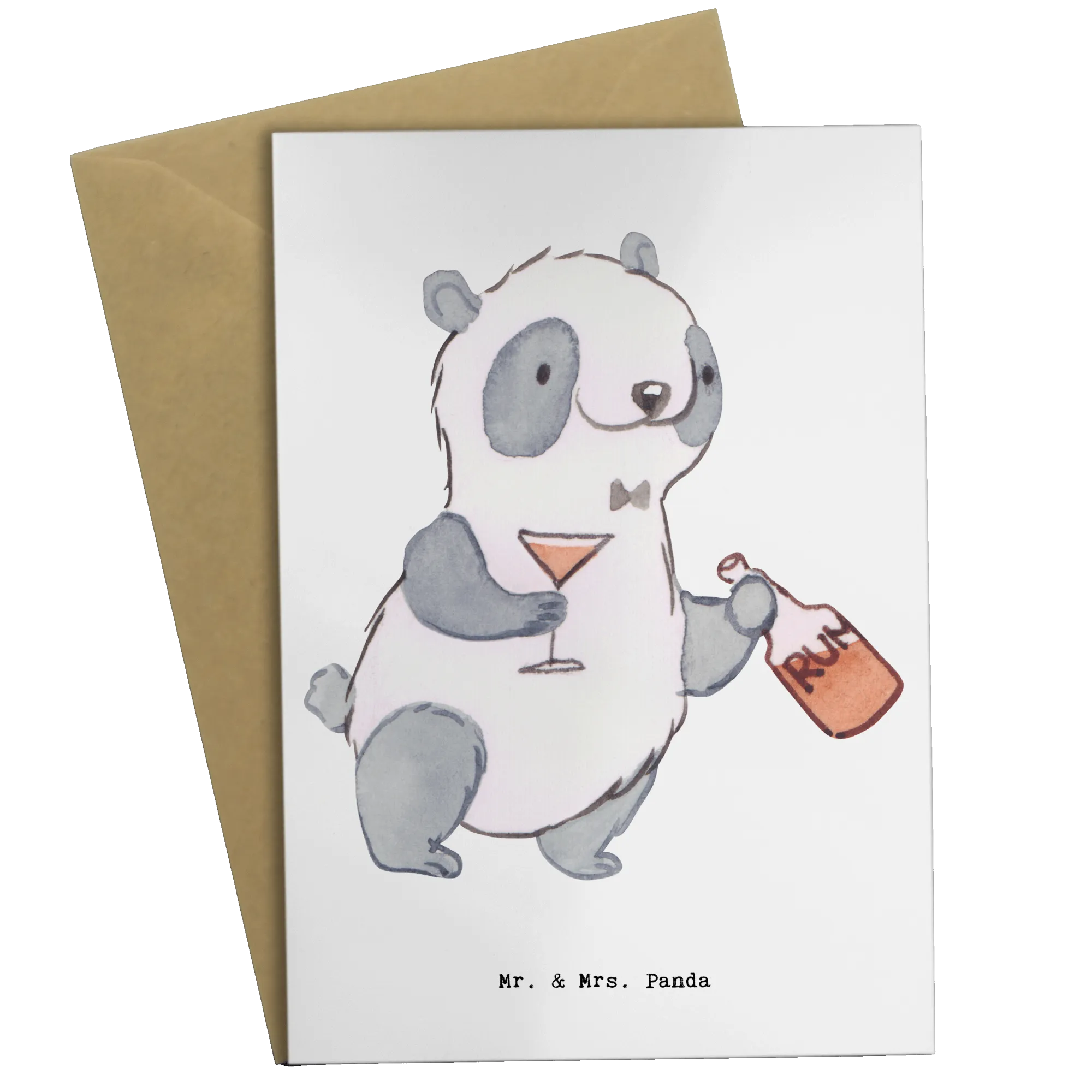 Perfect for those who cherish their profession or simply love the vibrant atmosphere of a bar, this card will warm the hearts of patrons and friends alike. The striking design showcases a dapper panda, holding a glass in one hand and a rum bottle in the other, delivering a playful yet festive vibe that every bar owner would appreciate.