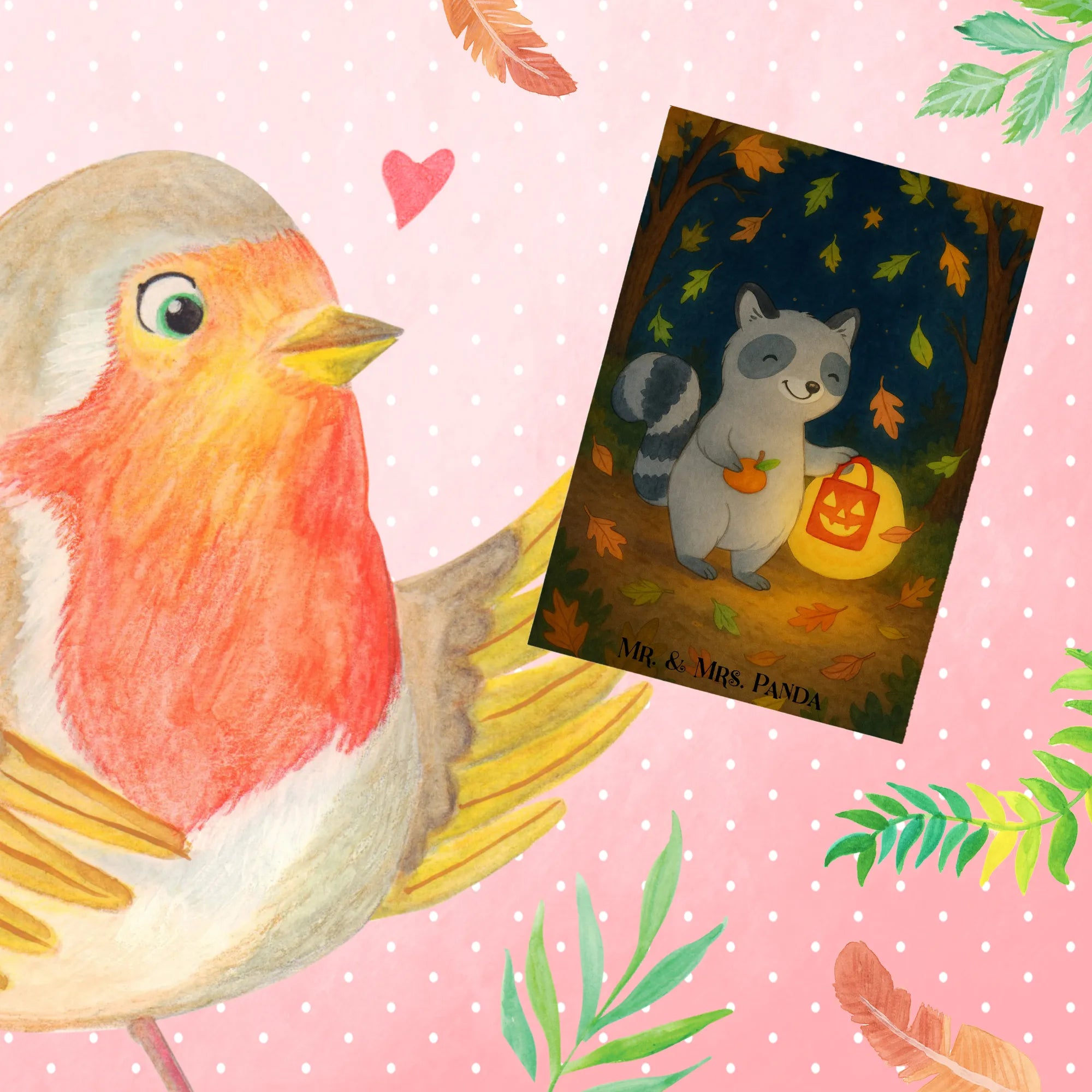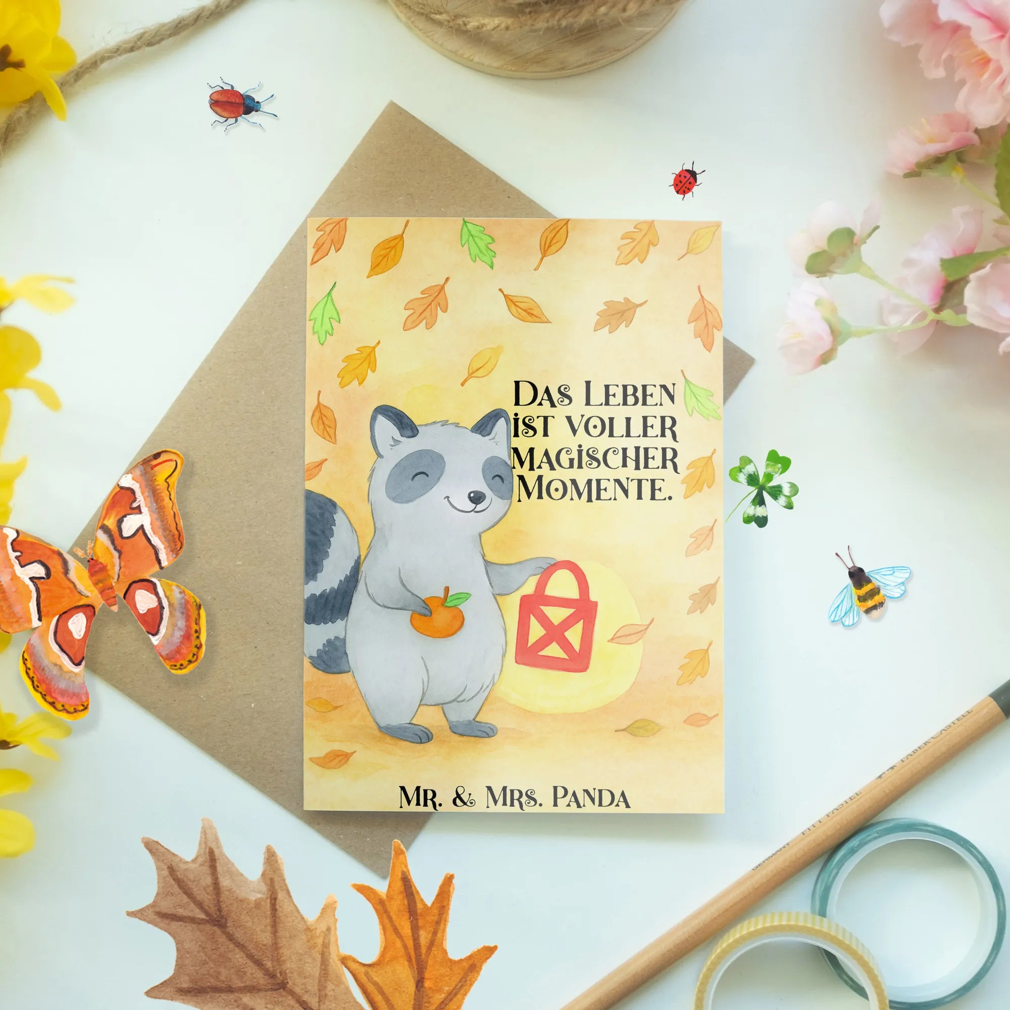 Greetings card Raccoon Lantern Design Grußkarte, Klappkarte, Einladungskarte, Glückwunschkarte, Hochzeitskarte, Geburtstagskarte, Karte, Ansichtskarten, Halloween, Deko, Martinssingen, Dekoration, Geschenke, Schenken, Halloween Deko, Trick or Treat, Süßes sonst gibt's saures, Waschbär, Laterne, Herbst