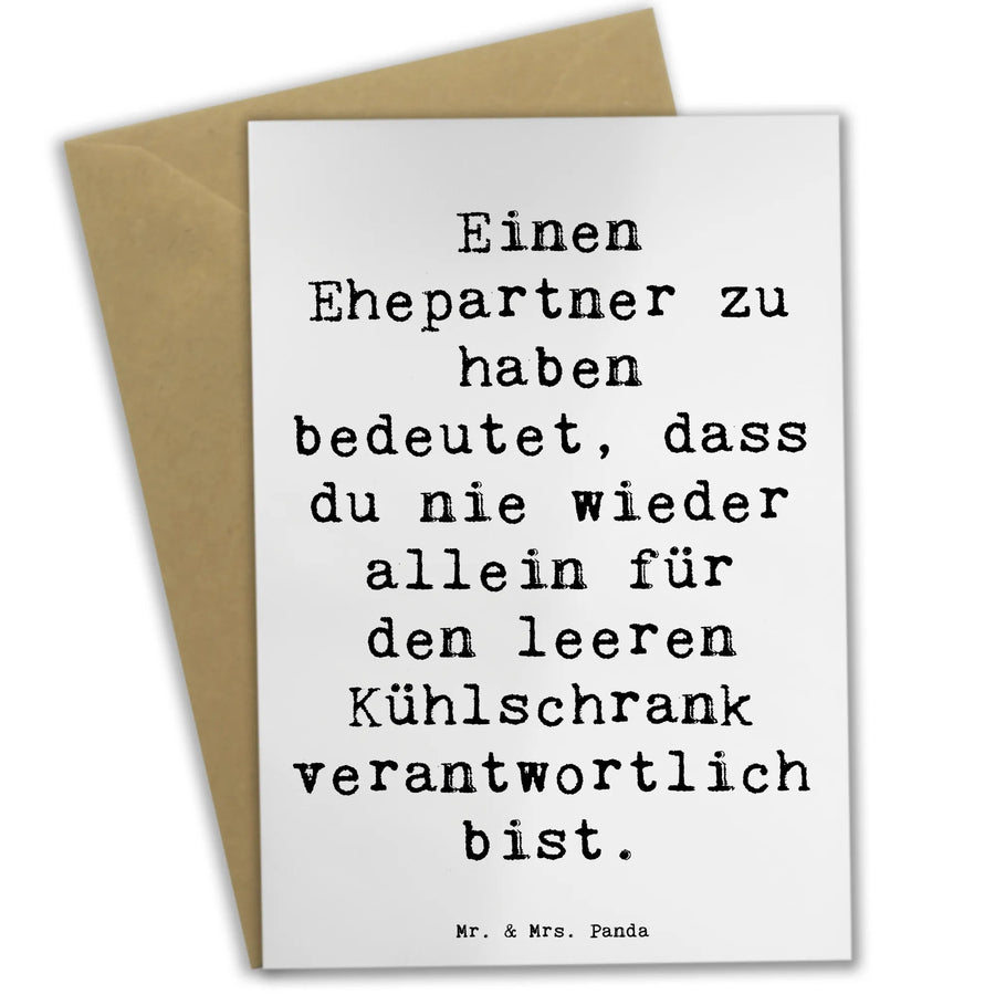 Greetings card Saying Einen Ehepartner zu haben bedeutet, dass du nie wieder allein für den leeren Kühlschrank verantwortlich bist. Grußkarte, Klappkarte, Einladungskarte, Glückwunschkarte, Hochzeitskarte, Geburtstagskarte, Karte, Ansichtskarten, Familie, Vatertag, Muttertag, Bruder, Schwester, Mama, Papa, Oma, Opa