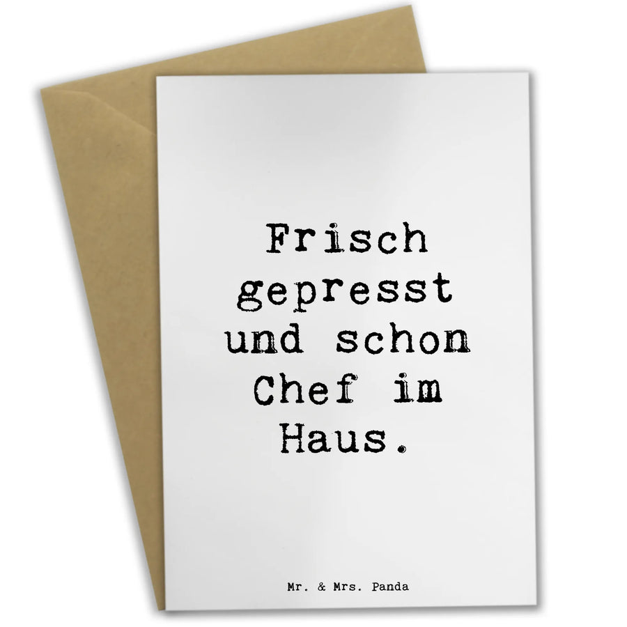 Greetings card Saying Frisch gepresst und schon Chef im Haus. – Mr. & Mrs. Panda