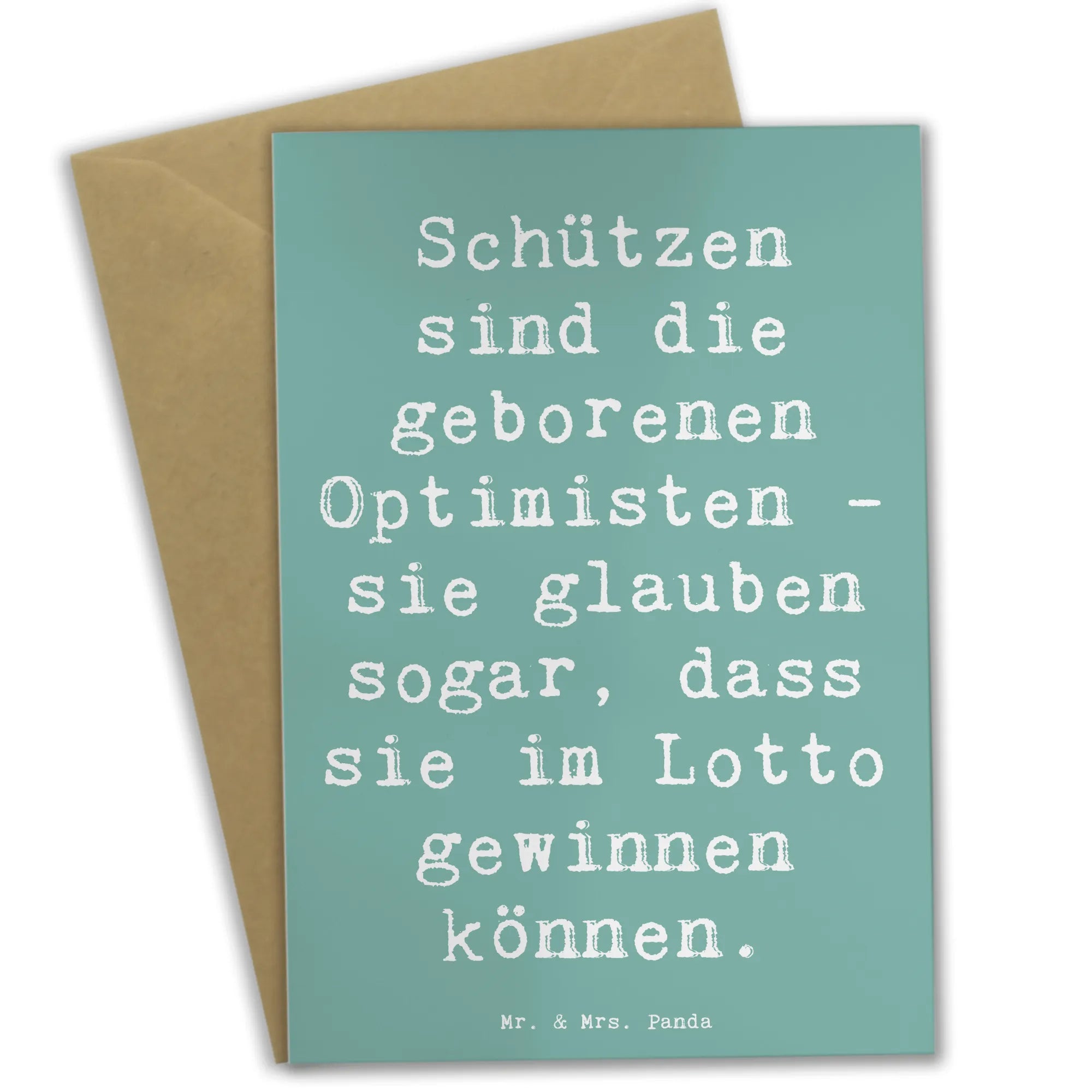 Greetings card Saying Schützen sind die geborenen Optimisten - sie glauben sogar, dass sie im Lotto gewinnen können. Glückwunschkarte, Karte, Geburtstagskarte, Ansichtskarten, Klappkarte, Hochzeitskarte, Einladungskarte, Grußkarte, Tierkreiszeichen, Sternzeichen, Horoskop, Astrologie, Aszendent