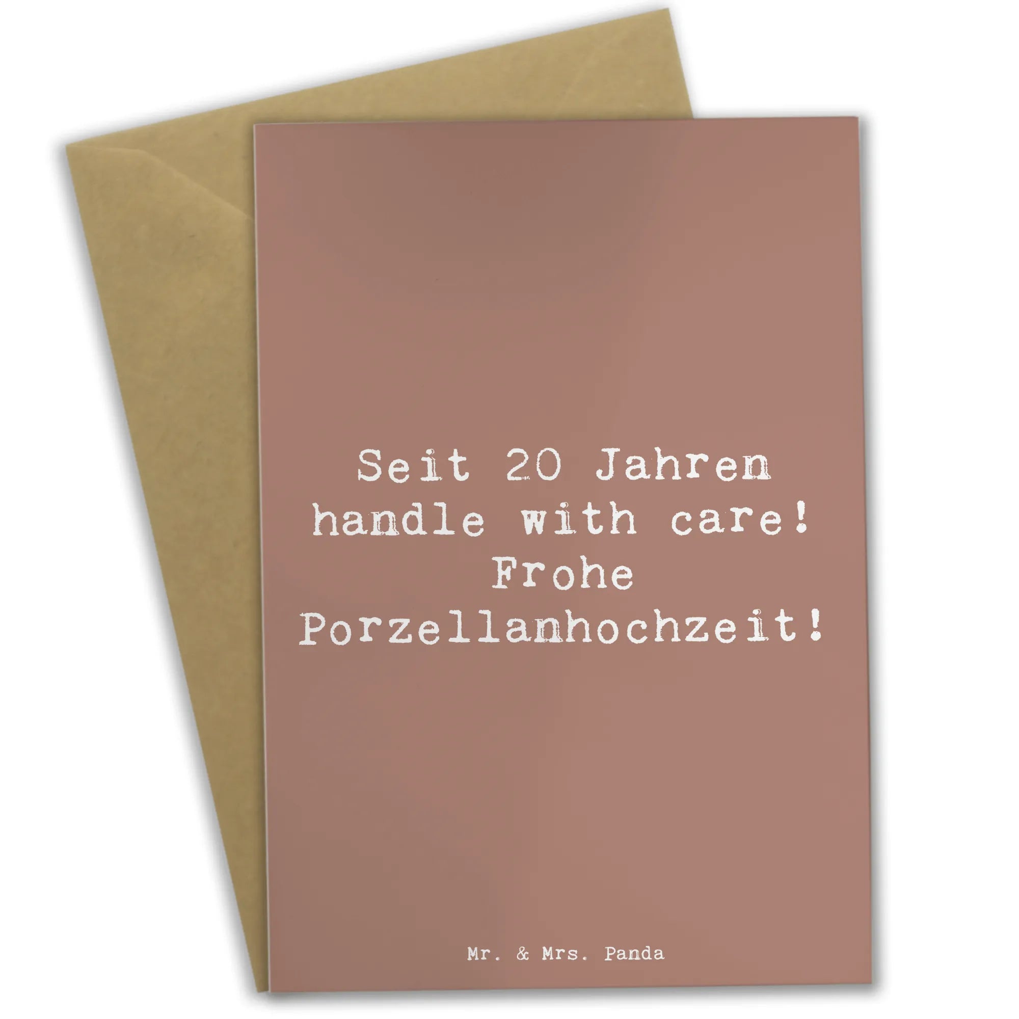 Greetings card Saying Seit 20 Jahren handle with care! Frohe Porzellanhochzeit! - Transparent