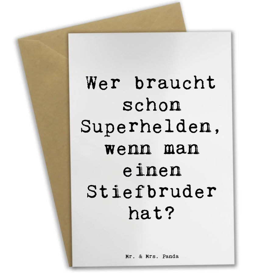 Greetings card Saying Wer braucht schon Superhelden, wenn man einen Stiefbruder hat?