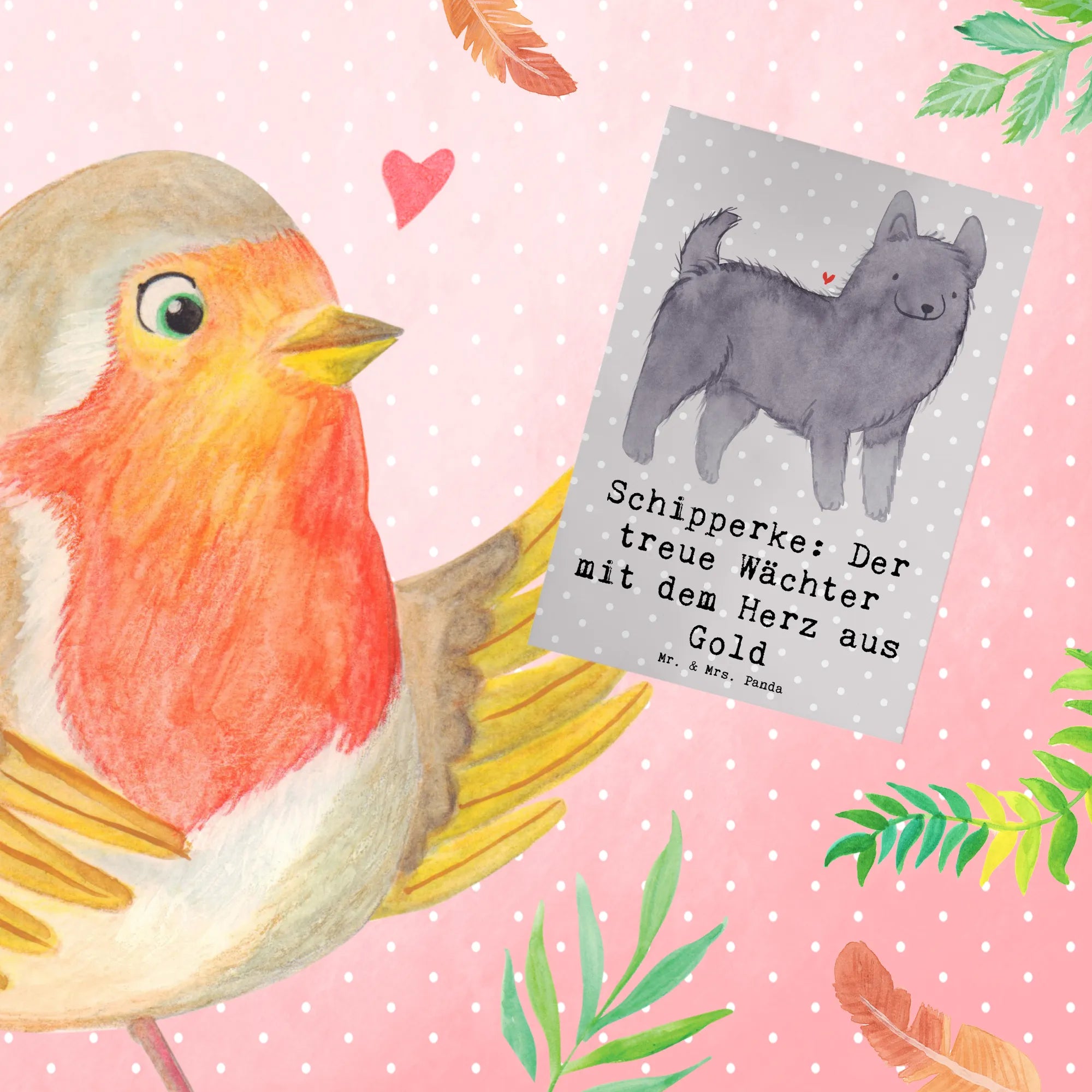 Greetings card Schipperke: Der treue Wächter mit dem Herz aus Gold - White