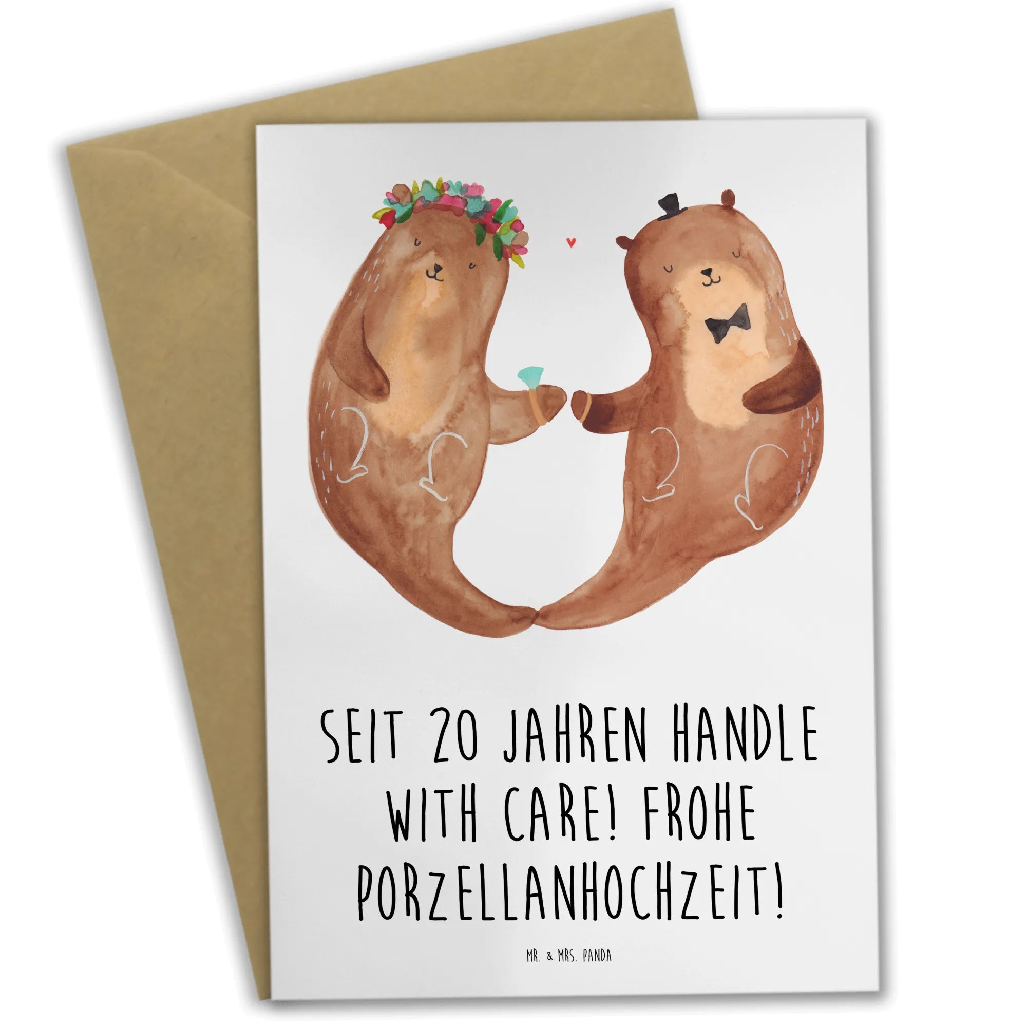 Greetings card Seit 20 Jahren handle with care! Frohe Porzellanhochzeit! - Sea Breeze