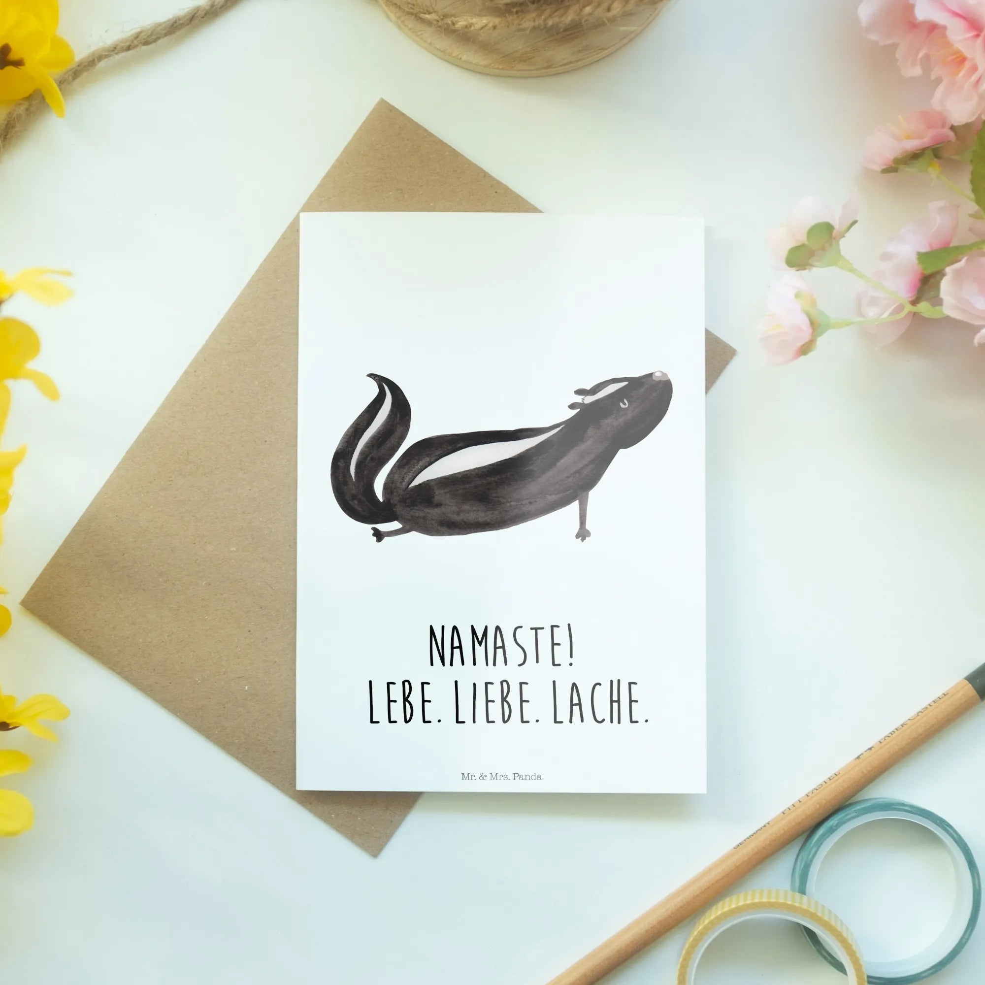 Celebrate with the joy of giving and make a lasting impression with this cheerful skunk design! By choosing Mr. & Mrs. Panda's Skunk Yoga card, you are not just sending a message; you are sharing a piece of happiness.