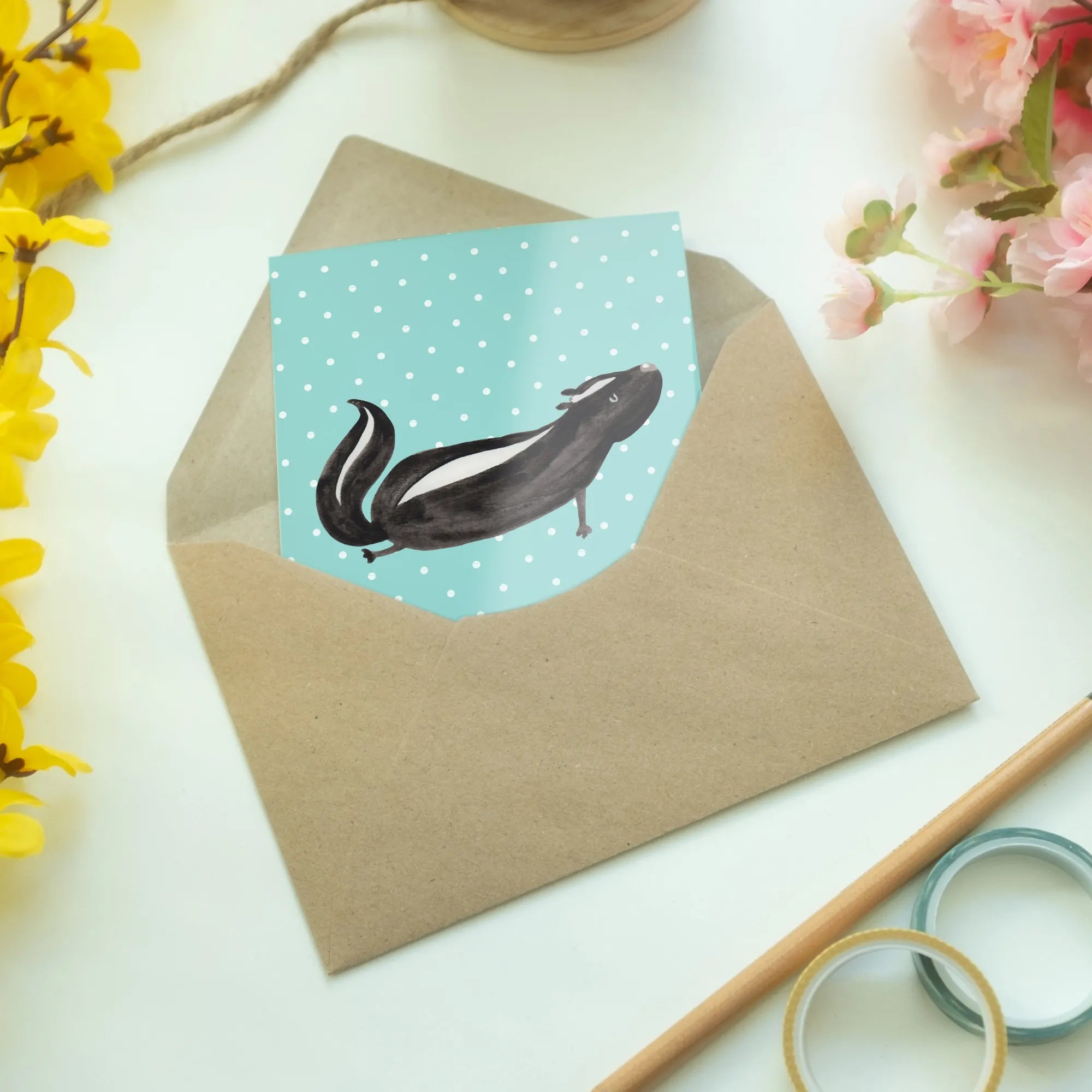 Greetings card skunk yoga - with saying - Turquoise Pastel
