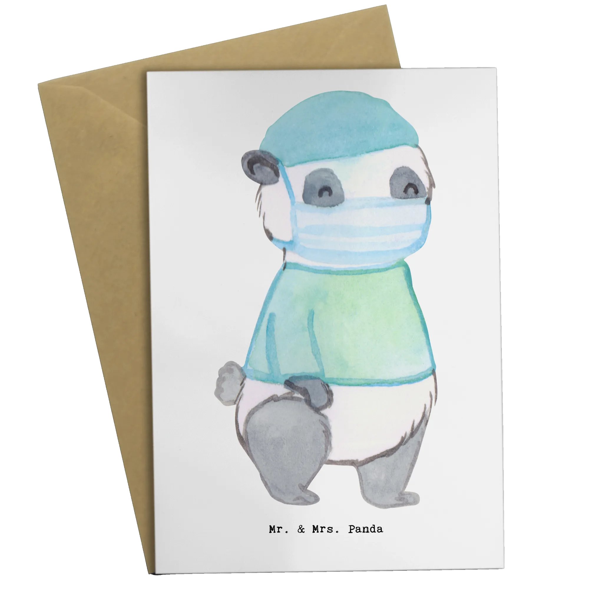 Crafted from high-quality 300-gram cardboard, this card boasts a sleek, glossy finish on the front and back, making it a sight to behold. The adorable design showcases a cheerful panda wearing a surgical mask, embodying the charm and joy that surgeons bring to their work. With a blank interior, this card offers ample space for your personal message, making it perfect for any occasion - whether it's a job start, anniversary, farewell, retirement, or just because!
