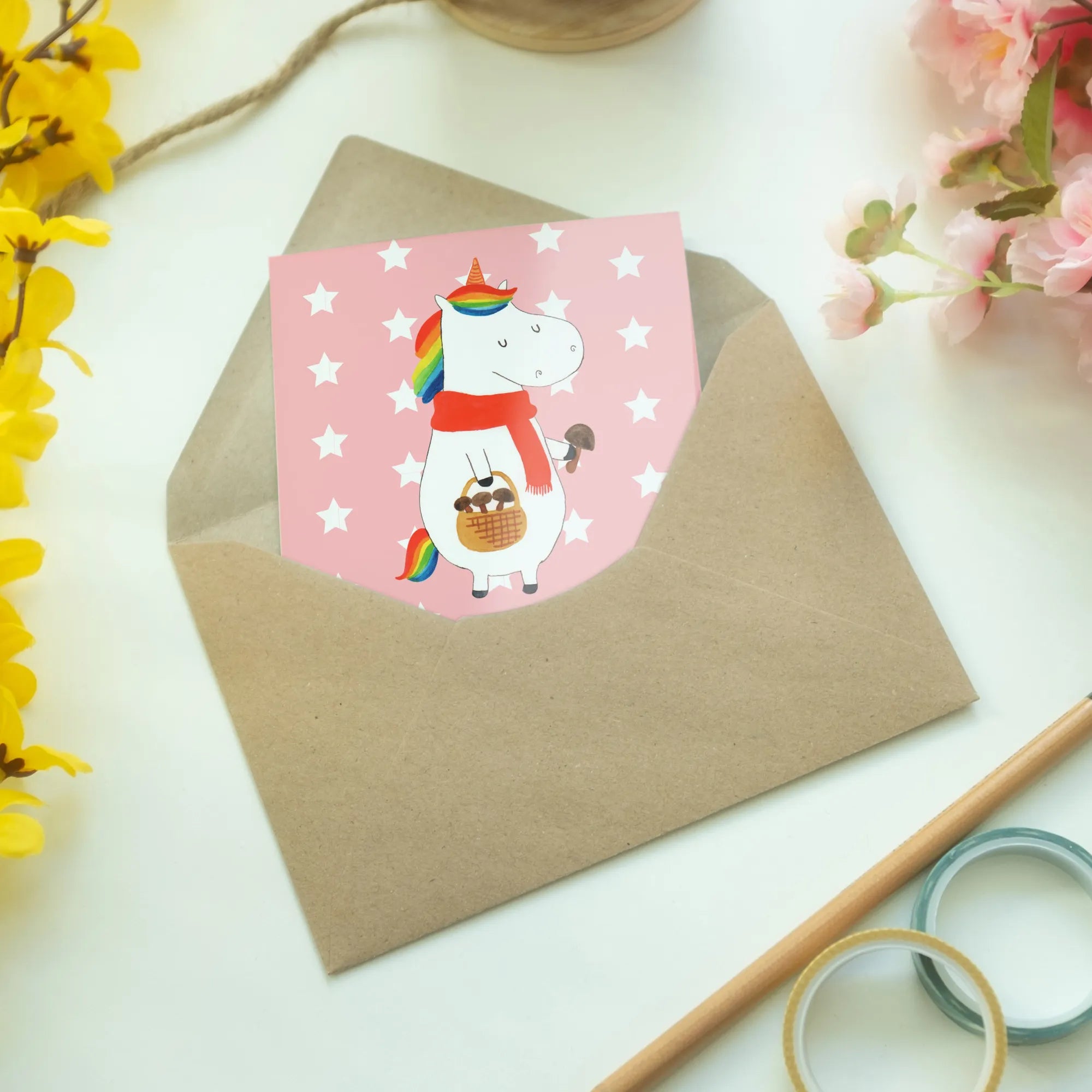 Greetings card unicorn Mushroom - with a saying - Pastel Red