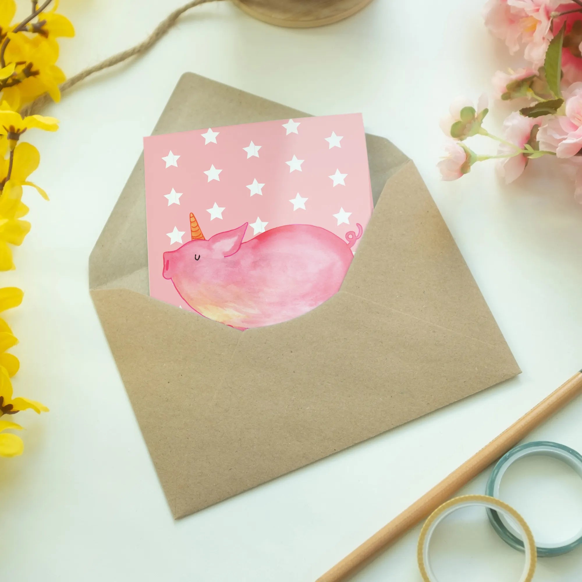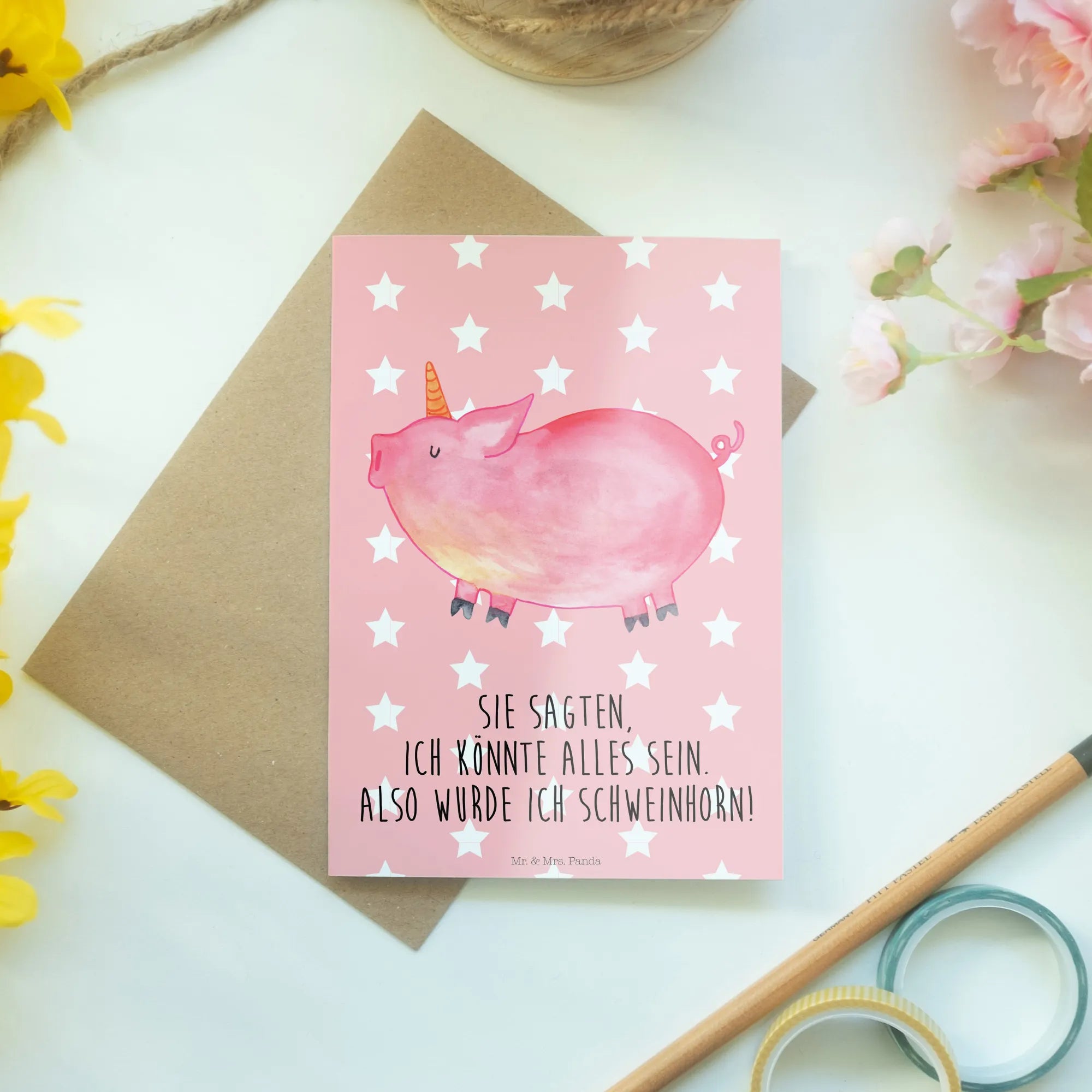 Greetings card unicorn Pig - with a saying - Red Pastel