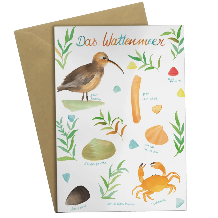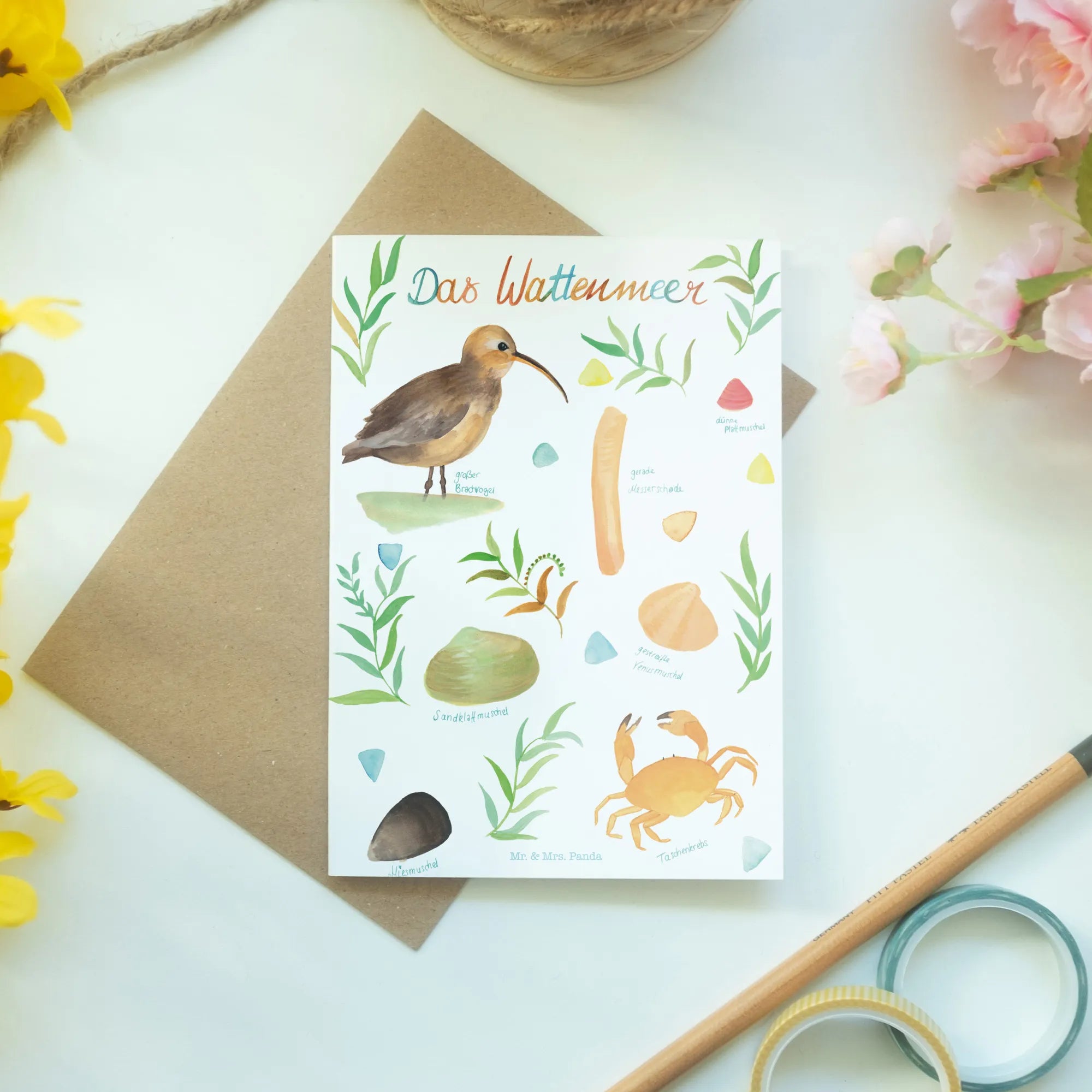 Greetings card Wadden Sea folding card, invitation card, greeting card, birthday card, wedding card, Nature, joy of life, love, Baltic Sea, Gift Maritime, Lake, Shell, Wadden Sea, North Sea, Nature Motif, Flood, Birds, Ebb, Sea, Decoration Bathroom