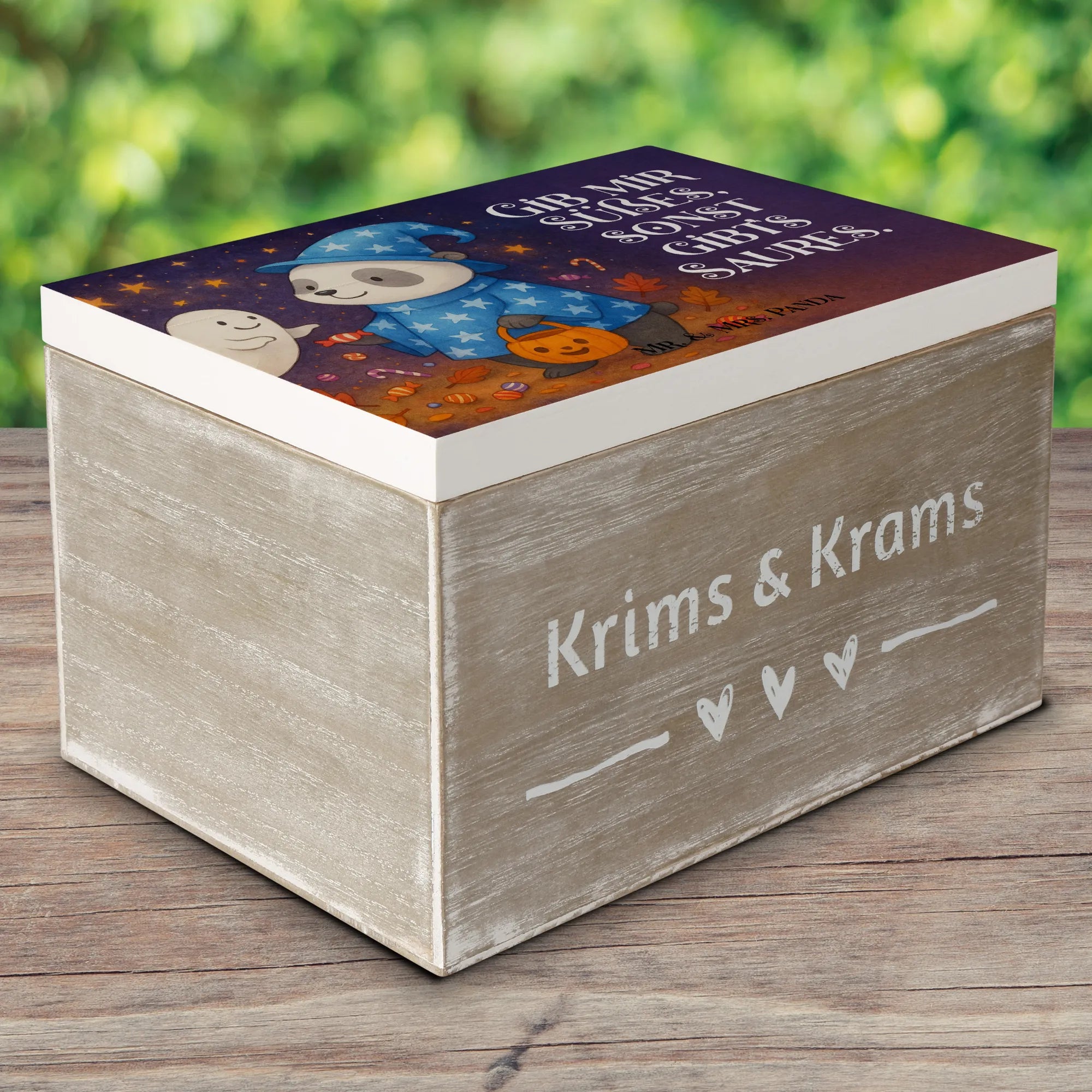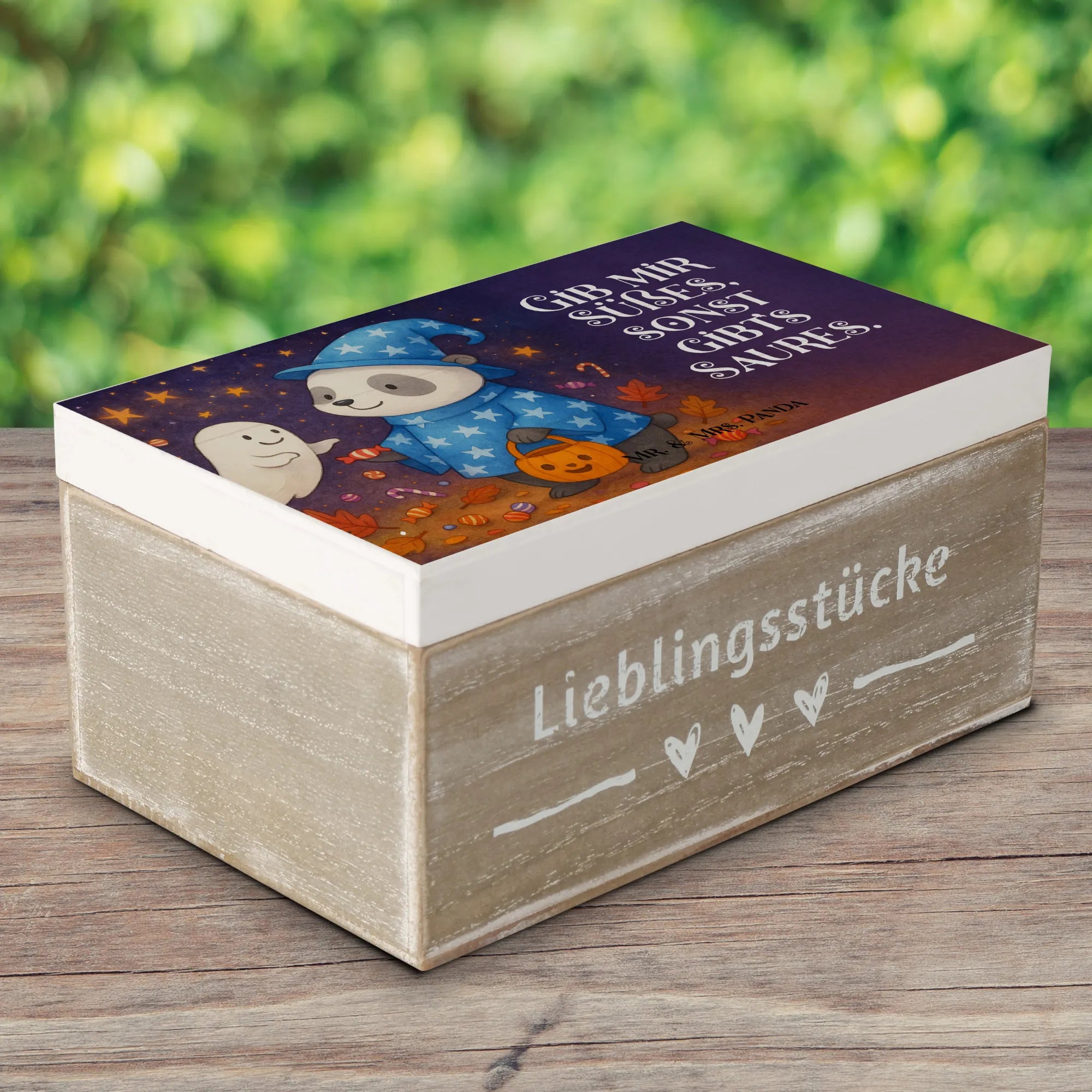 Holzkiste Panda Zauberer Design Kiste, Geschenkbox, Schatzkiste, XXL, Truhe, Aufbewahrungsbox, Holzkiste, Geschenkdose, Erinnerungsbox, Dekokiste, Erinnerungskiste, Schatulle, Halloween, Deko, Martinssingen, Dekoration, Geschenke, Schenken, Gespenst, Halloween Deko, Süßes sonst gibt's saures, Zauberer, Panda, Trick or Treat