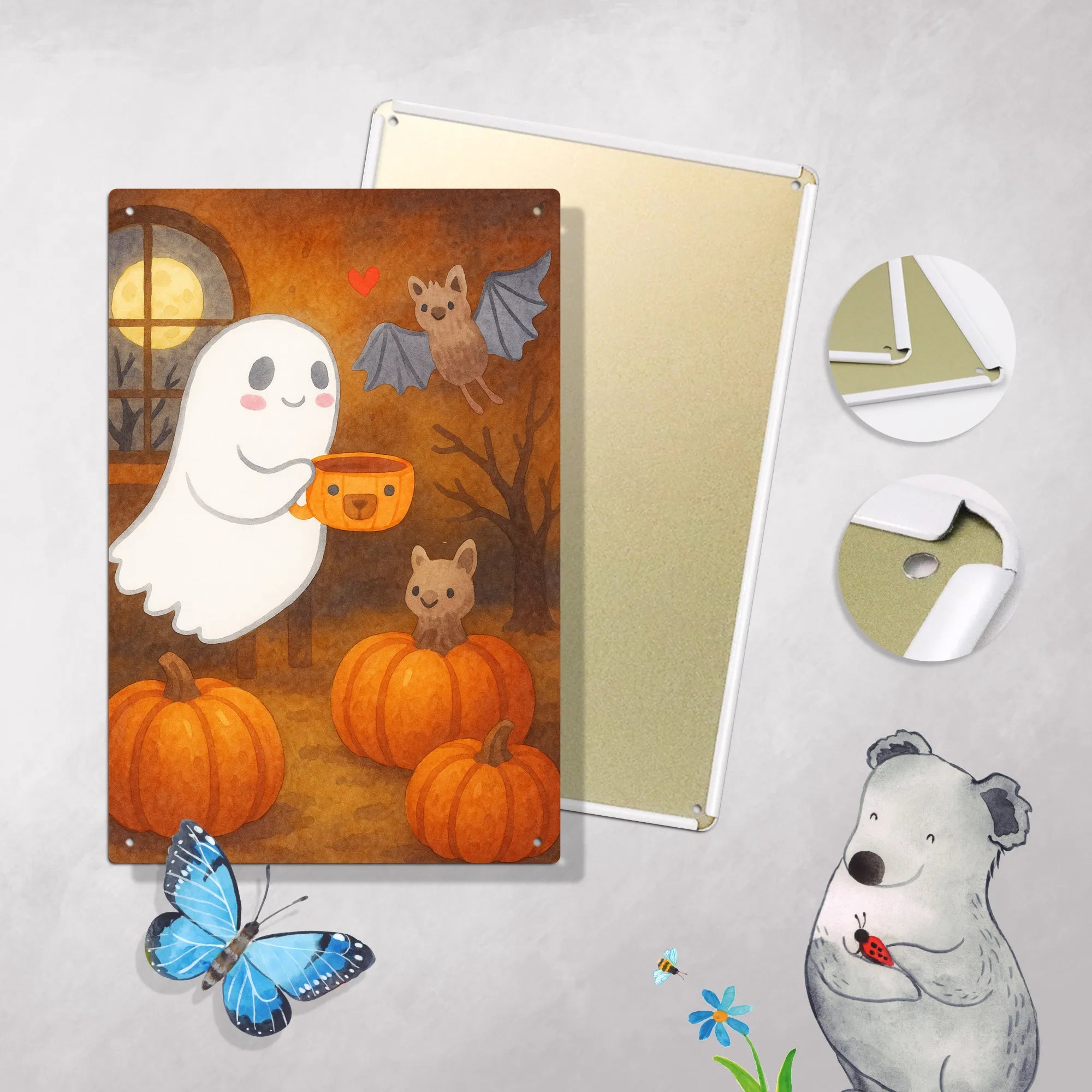 Paint by Numbers Metal Sign Ghost Coffee Design Halloween, decoration, Martin singing, decor, gifts, giving