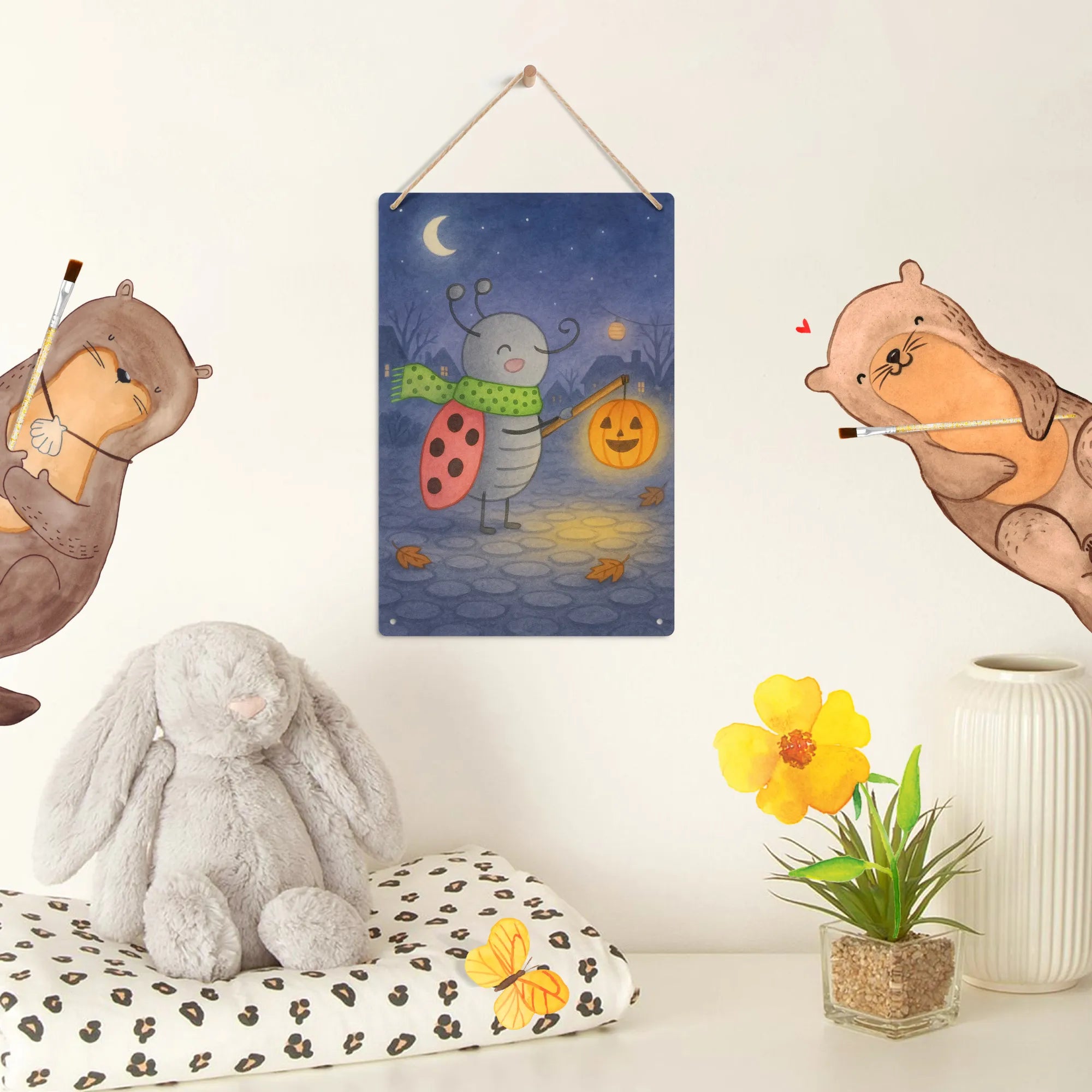 Step into an autumn wonderland with Smörle Lantern, the delightful ladybug who knows how to shine! Wrapped in a stylish green scarf, this cheerful bug holds a bright orange lantern that perfectly mimics the friendly faces of Halloween pumpkins. The tiny red heart hovering above its head adds a sprinkle of love that binds the whole scene together. Smörle is not just about warm lights; it teaches us to find joy in everyday moments. As the leaves turn and the nights cool down, let this charming motif radiate happiness and light up your space. It reminds us to embrace the beauty of the fall season while creating memories that last a lifetime. So why not welcome Smörle into your home? It’s a friendly companion for family gatherings, cozy evenings, and those sweet little moments of joy that make life so special.