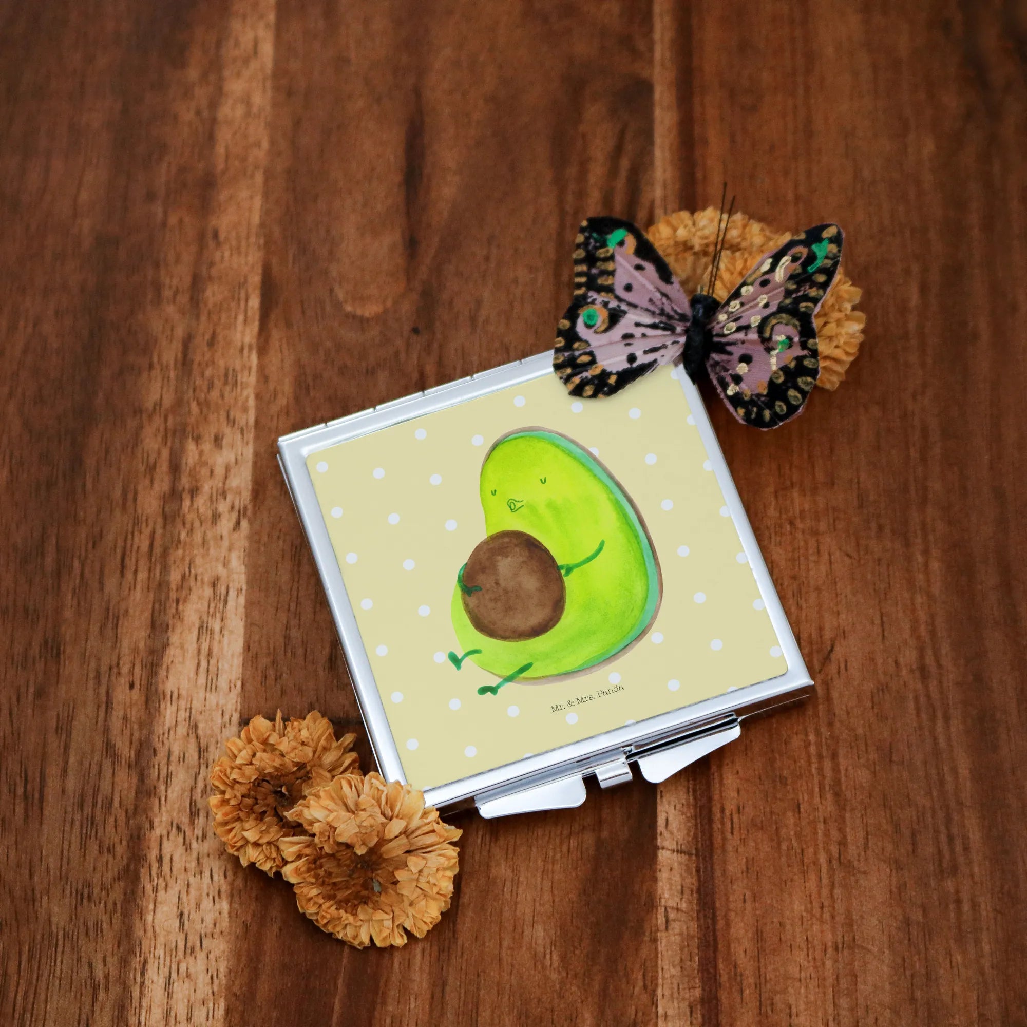 Handbag mirror avocado Pipes - with a saying - Yellow Pastel