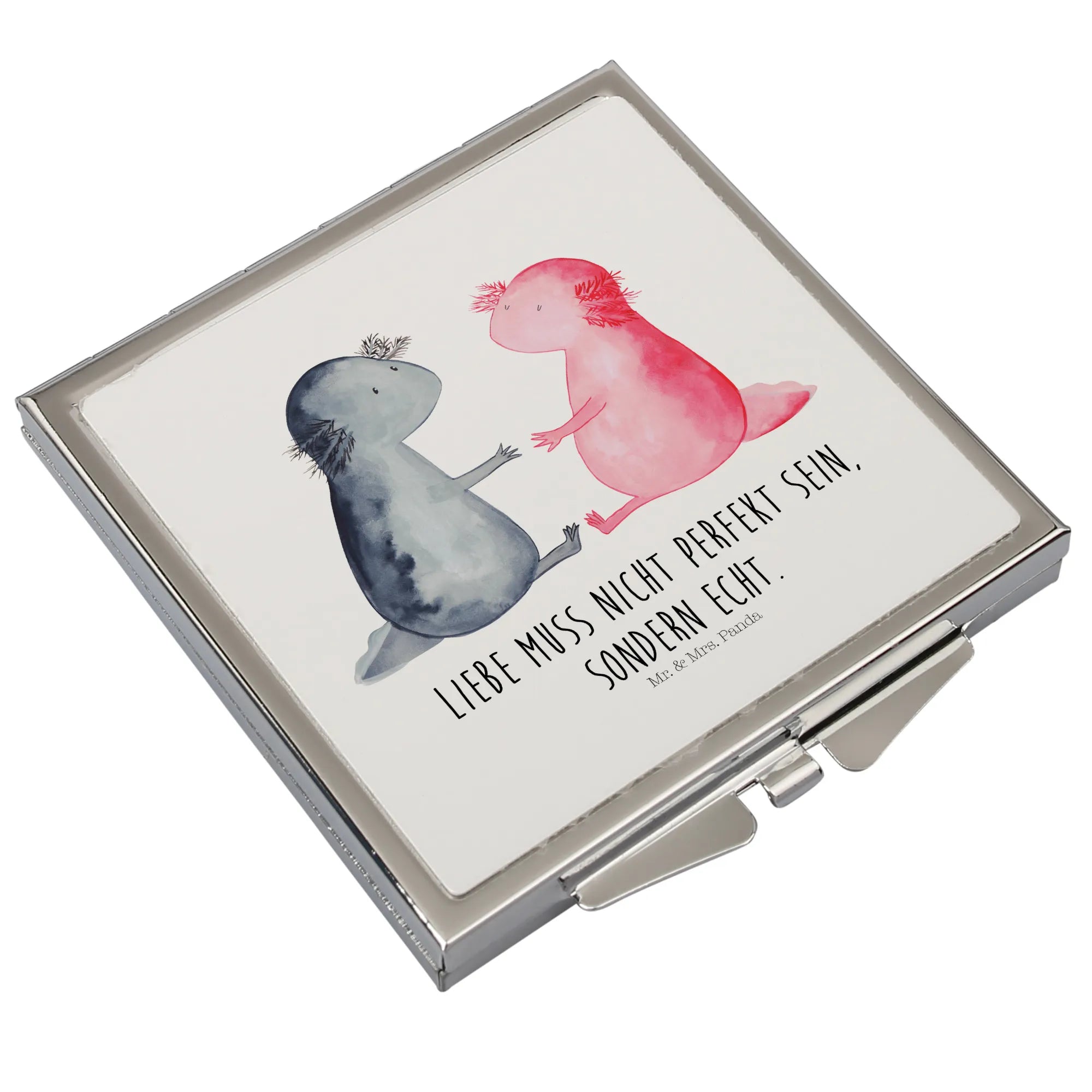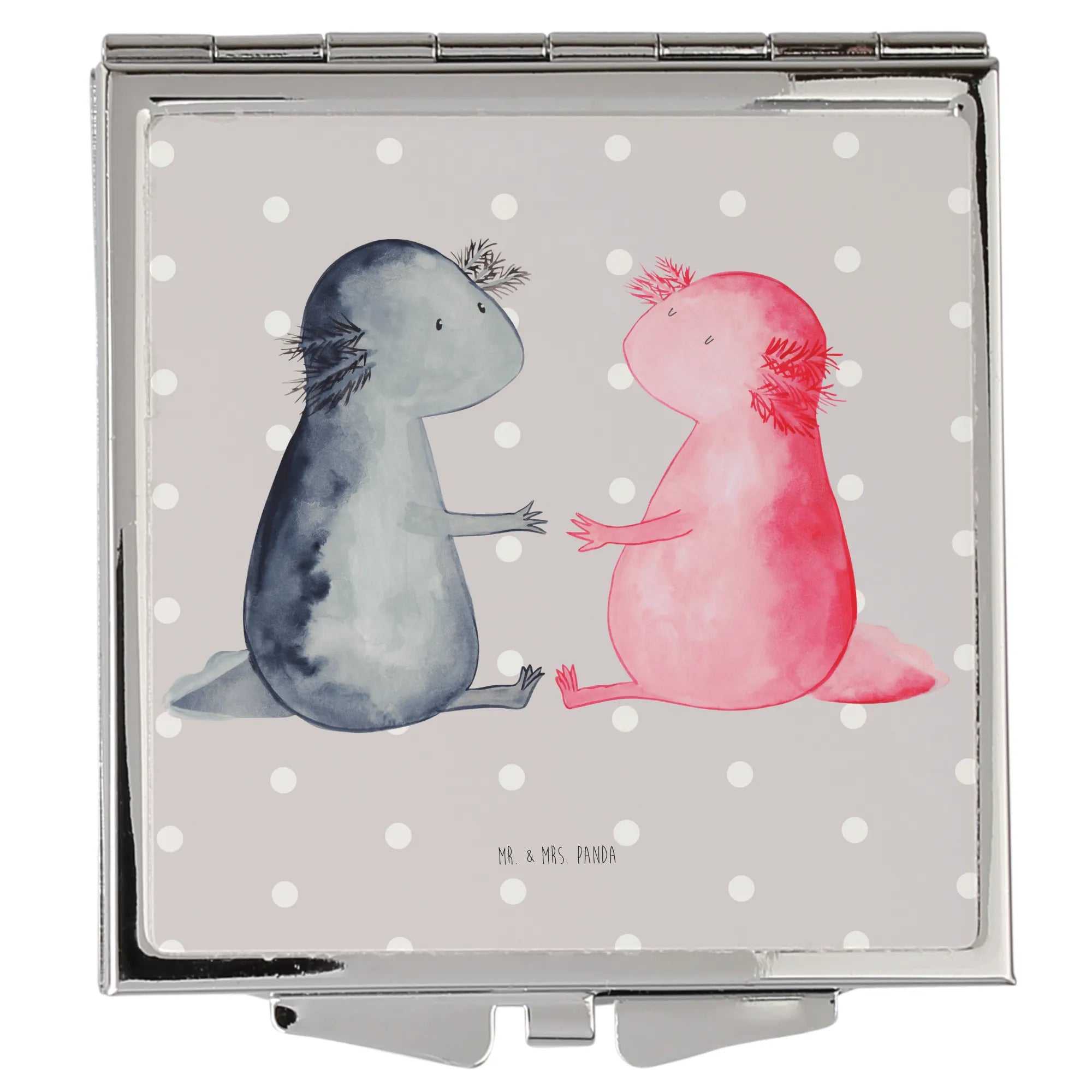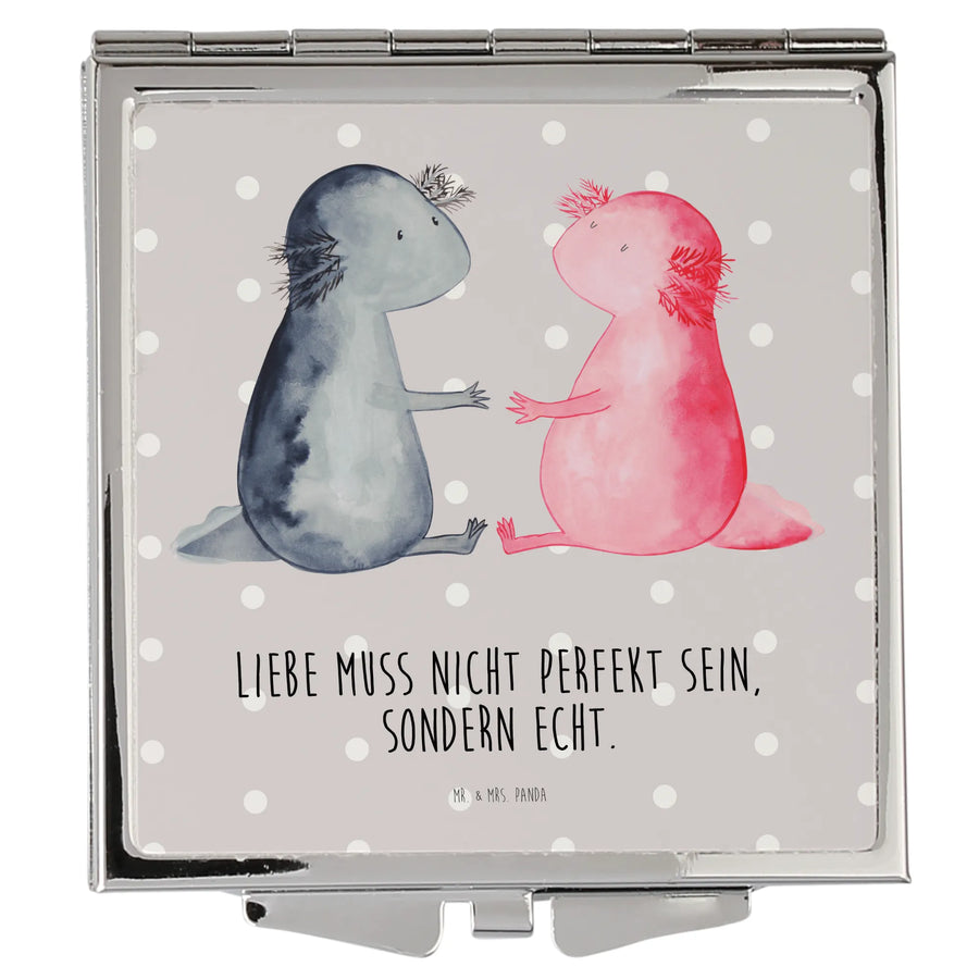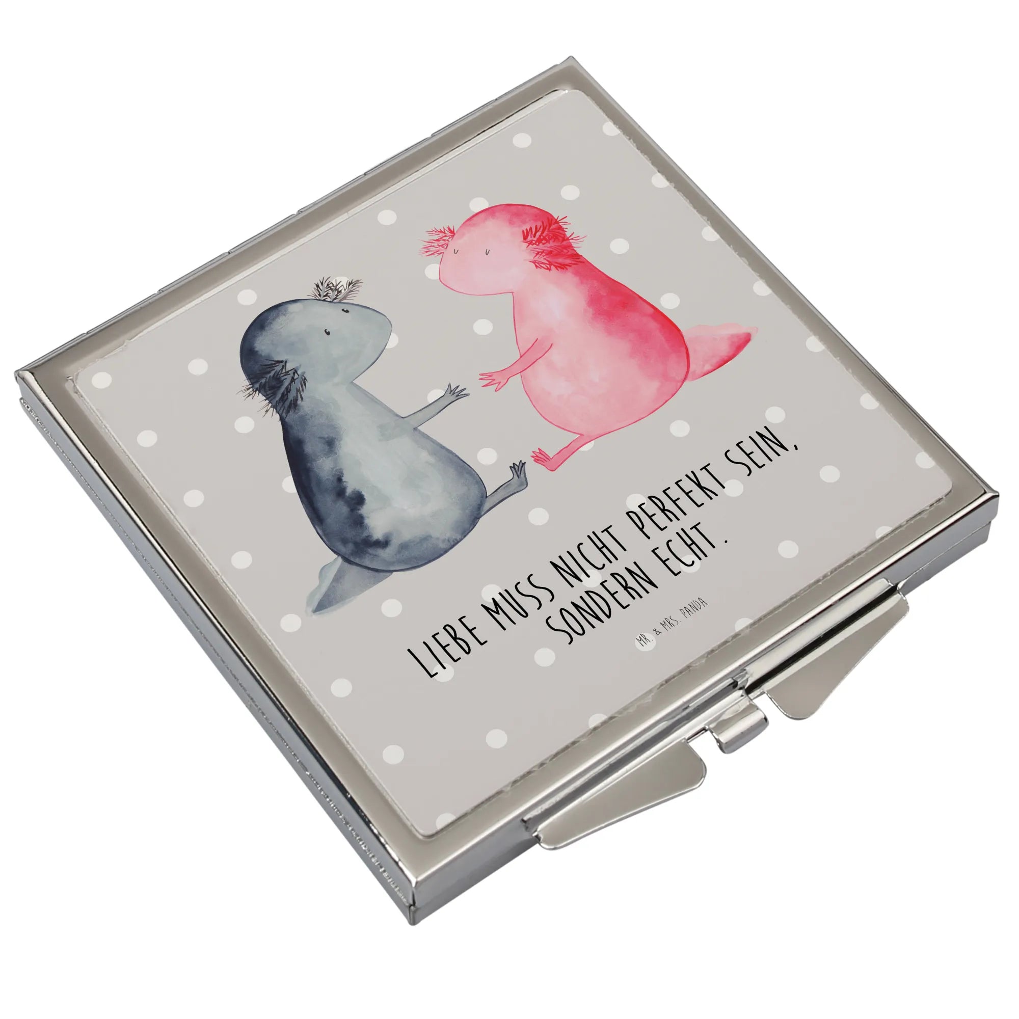 Handbag mirror axolotl Love - with a saying - Grey Pastel
