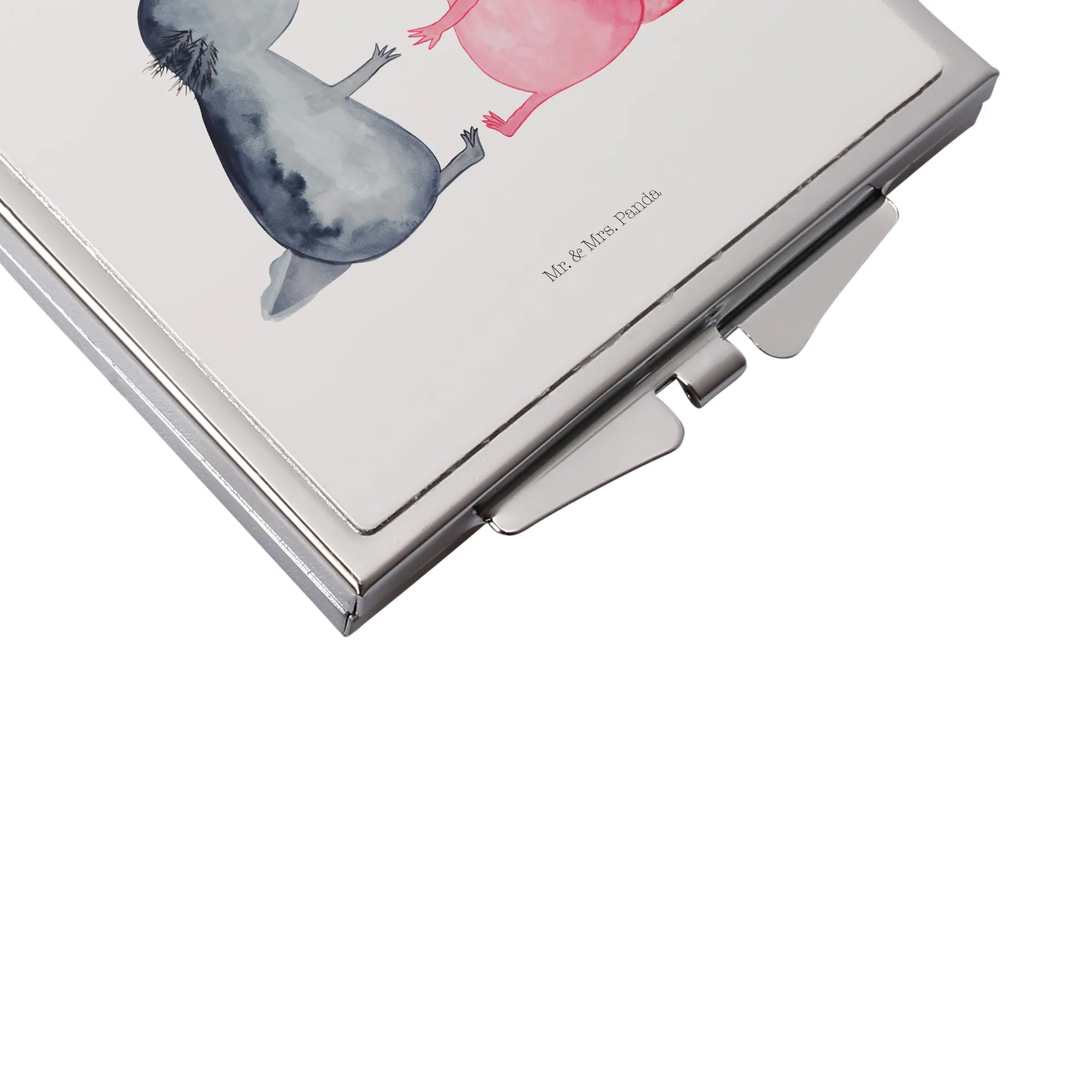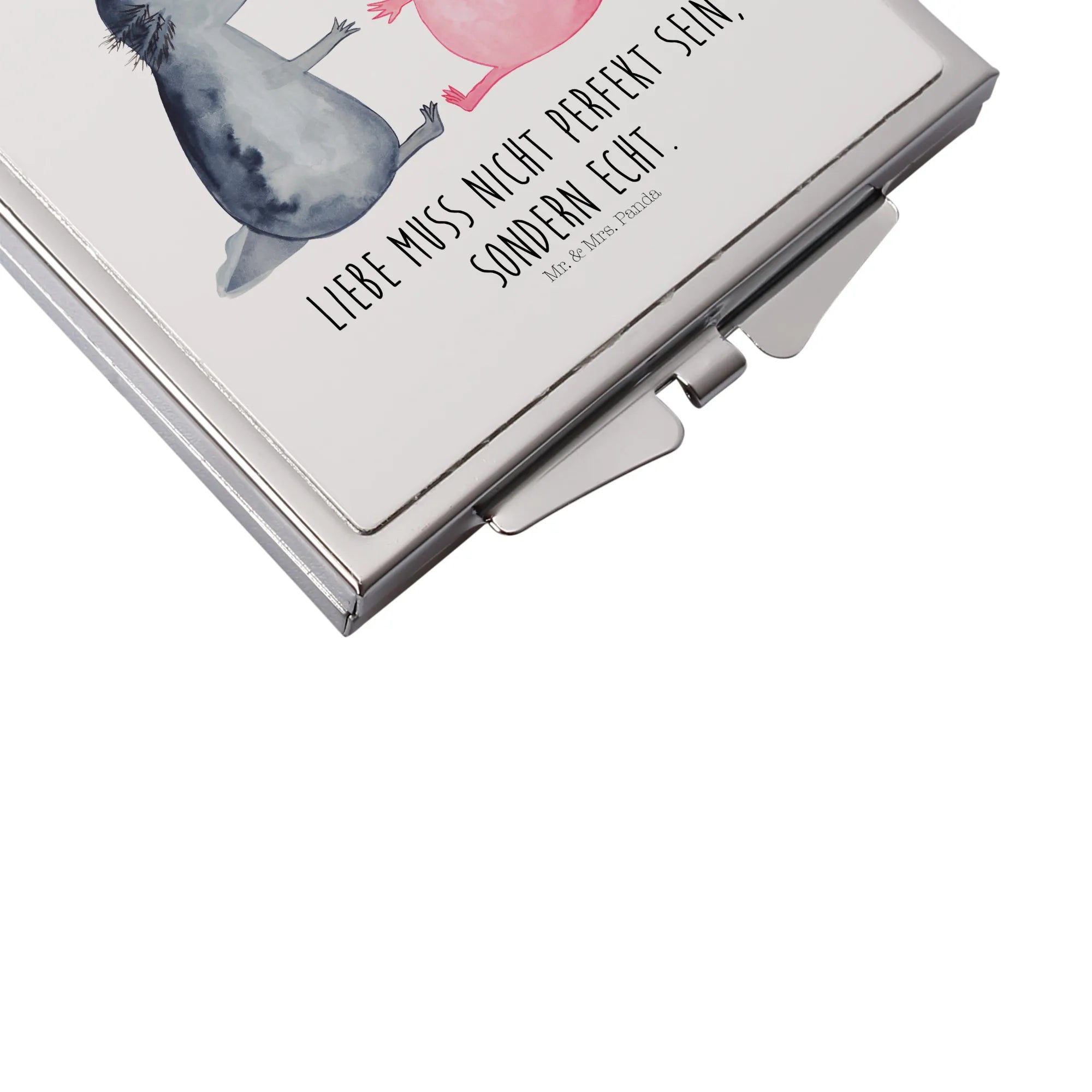Discover the beauty of our square Handbag Mirror from Mr. & Mrs. Panda, designed to be your perfect travel companion. Measuring 60 mm x 60 mm x 8 mm, this stylish mirror is adorned with charming motifs and lighthearted sayings that will brighten your day. Made with high-quality glass and coated in aluminum, the mirror not only boasts an impressive durability but also features an elegant silver-plated edge that enhances its aesthetic allure. Its compact square shape ensures that it fits effortlessly into any purse or backpack, making it the ultimate accessory for on-the-go touch-ups. The easy-to-use folding mechanism ensures a secure closure, keeping your mirror safe from scratches. Whether as a thoughtful gift or a treat for yourself, this handbag mirror showcases the delightful essence of Mr. & Mrs. Panda. Suitable for quick make-up adjustments or a quick check before you head out, it's a must-have for anyone who values functionality alongside style. Just wipe it clean with a damp cloth to maintain its sparkle.