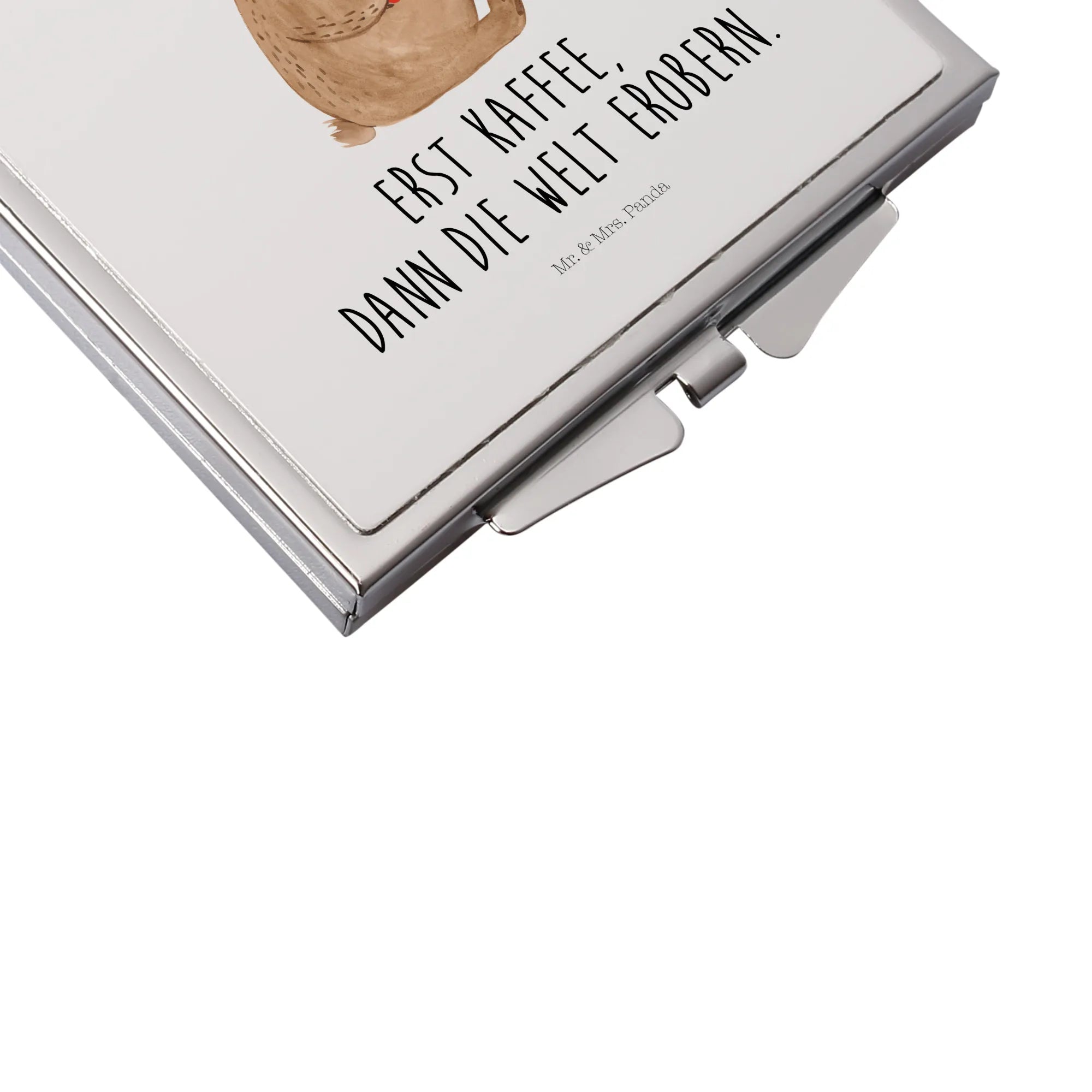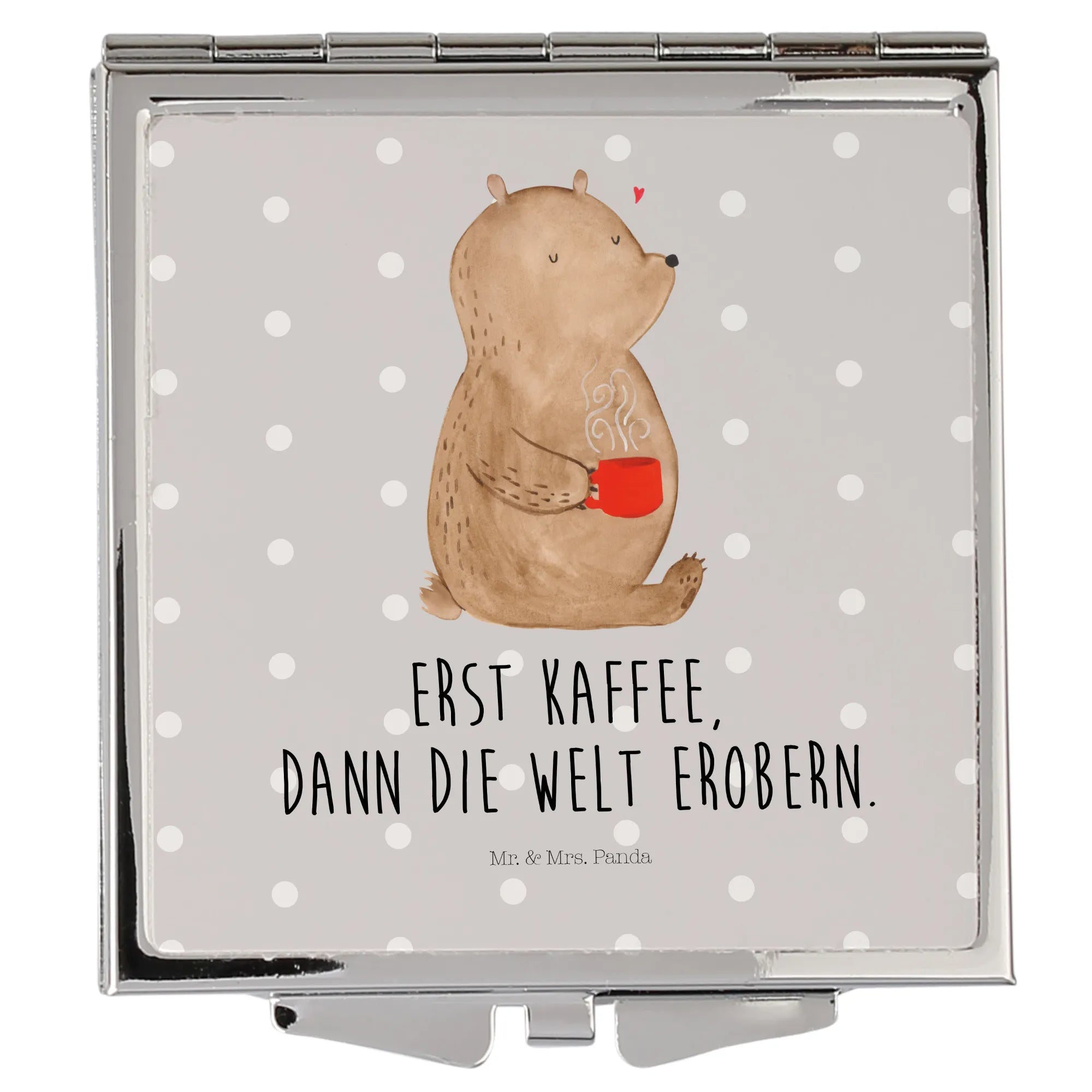 Handbag mirror bear Coffee - with a saying - Grey Pastel
