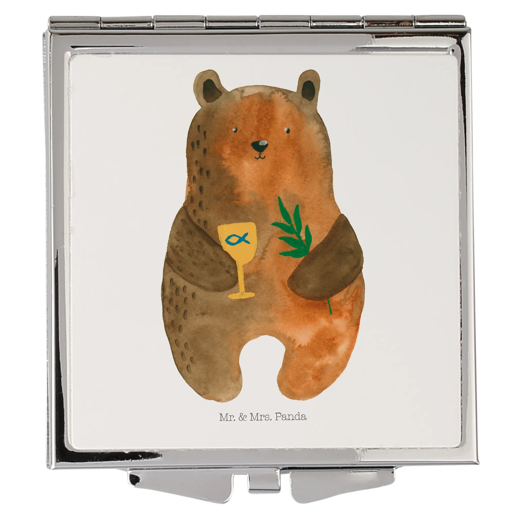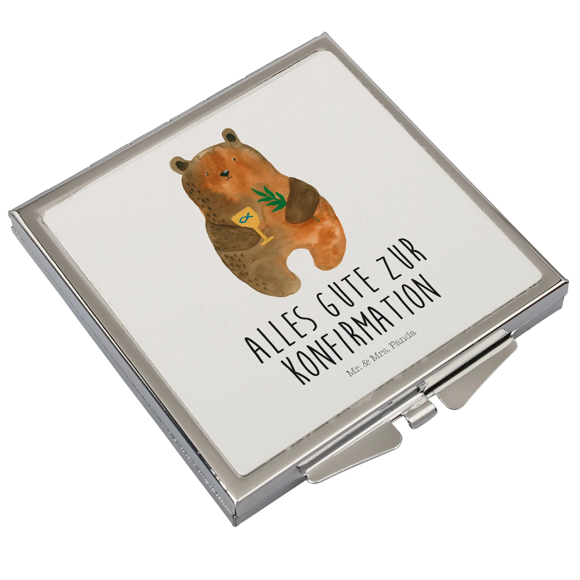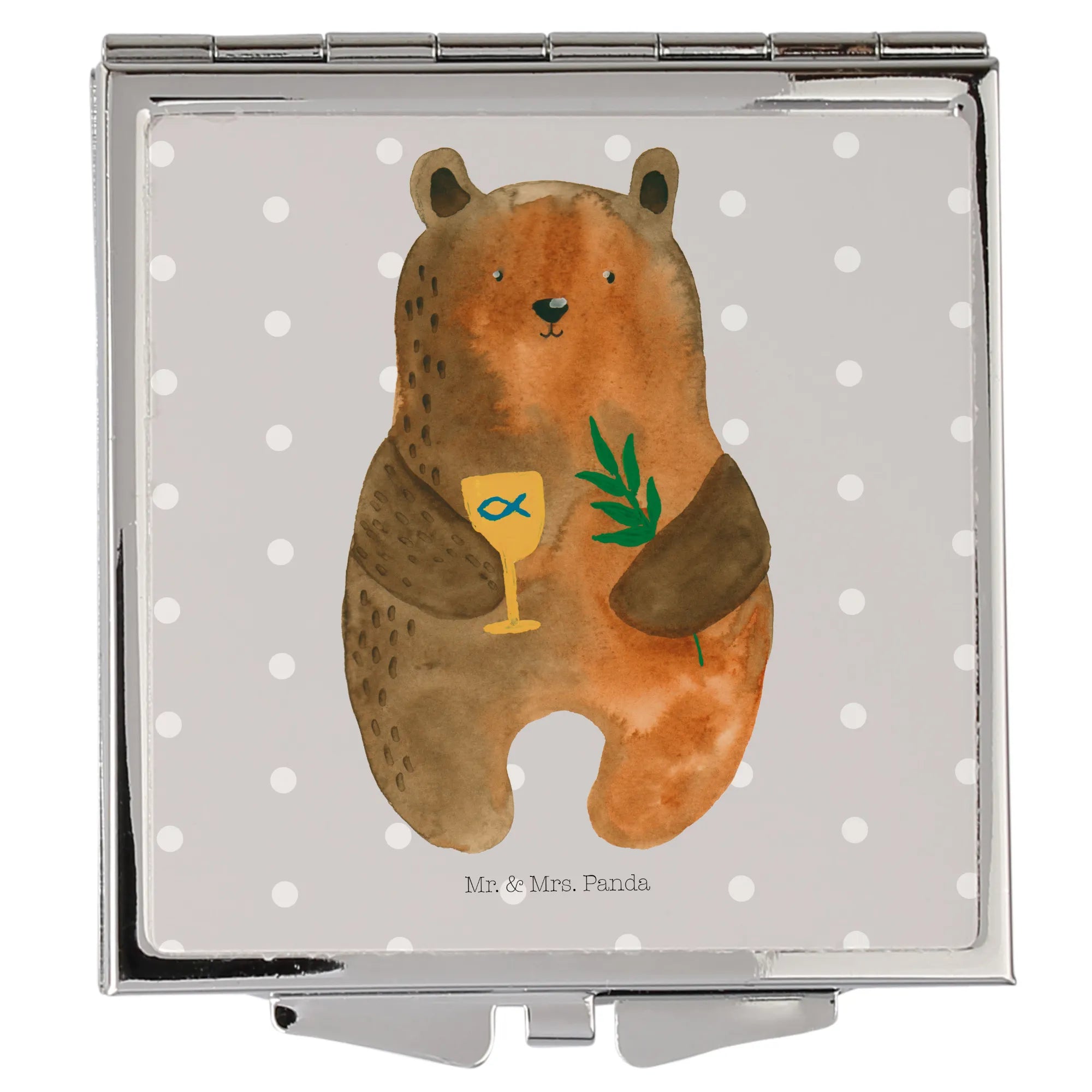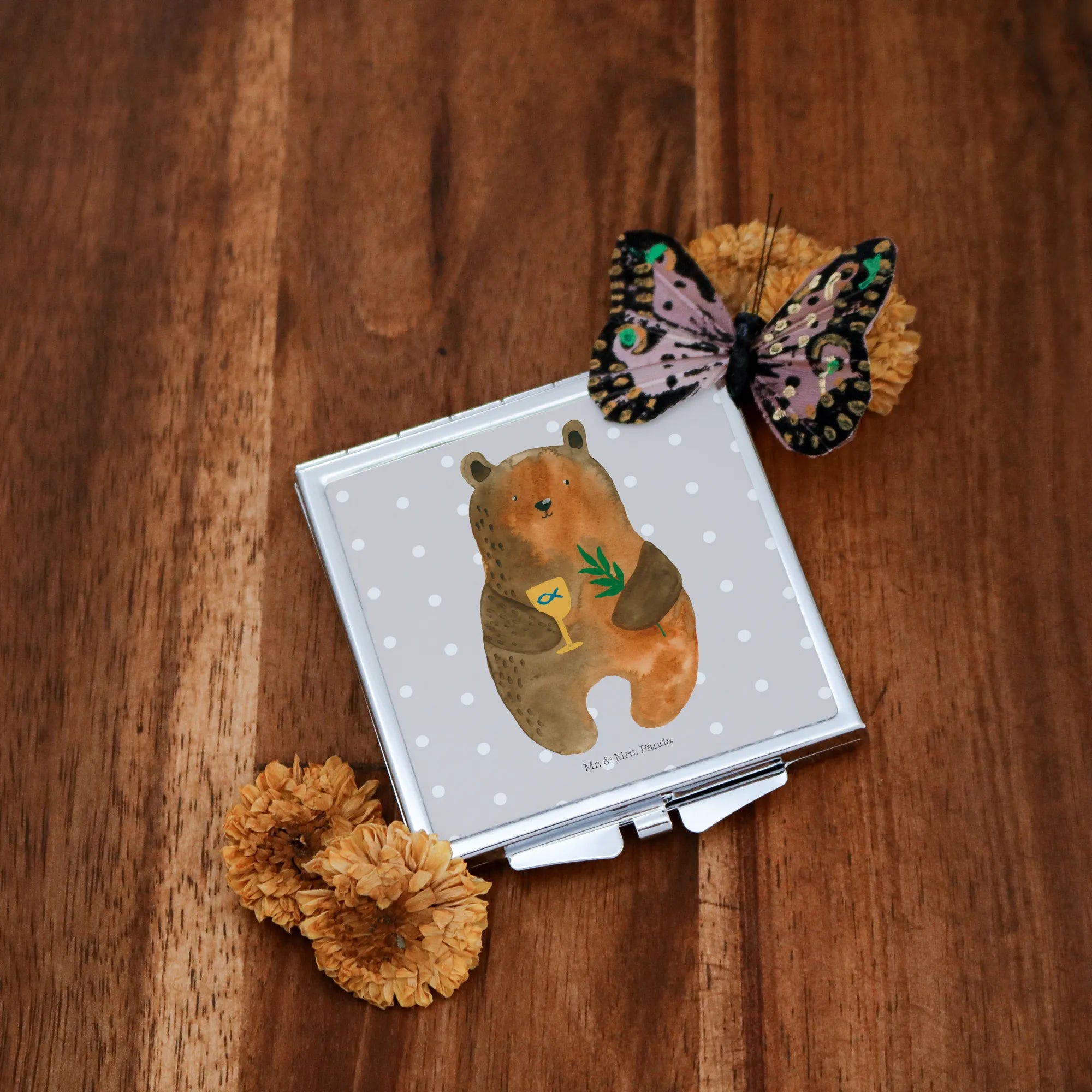Handbag mirror bear confirmation - with saying - Pastel Gray