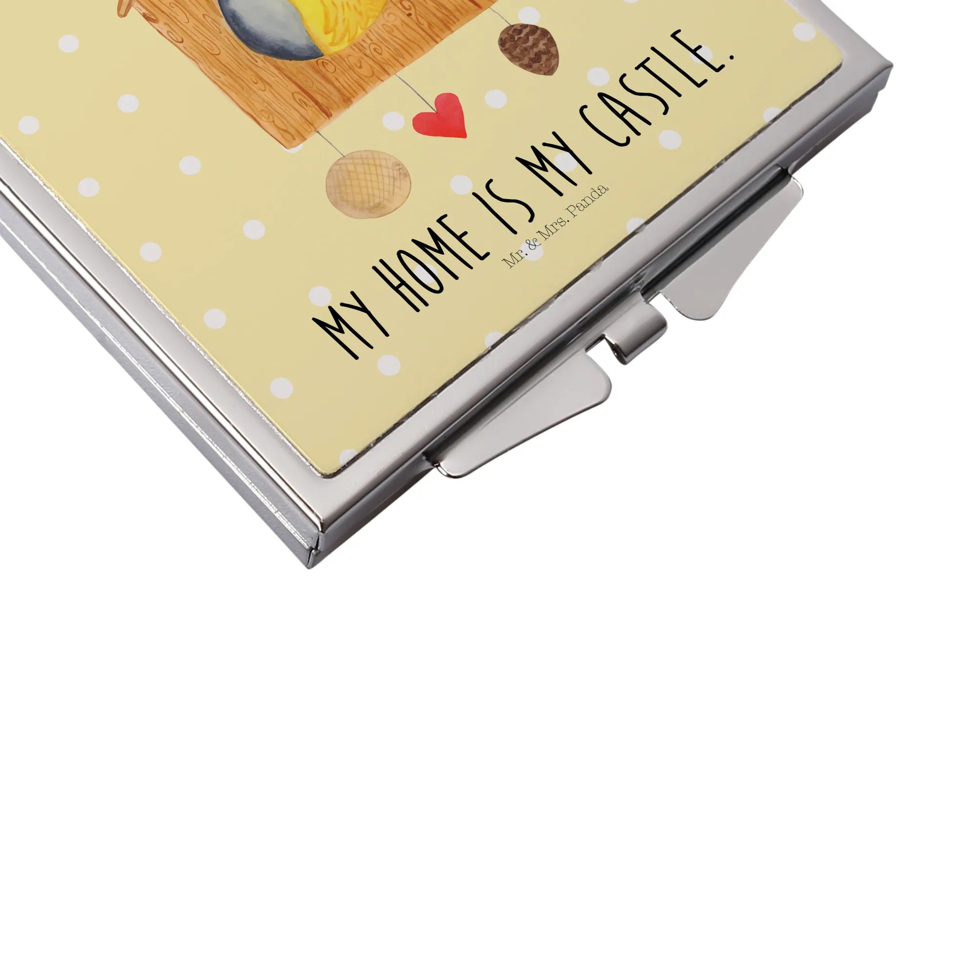 Handbag mirror Bird House - with a saying - Pastel Yellow