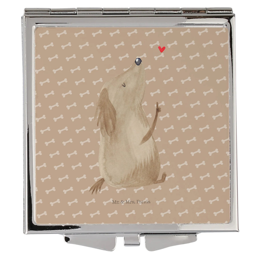 The front side of the mirror features a beautiful design by Mr. & Mrs. Panda, showcasing an irresistibly cute dog who happily presents a small heart. This lovely depiction represents the unconditional love between dogs and their humans, embodying the saying "Dogs! First they steal your heart, then the comfiest spot on the couch." This design not only serves as a practical beauty accessory but also as an uplifting reminder of your beloved four-legged friends.