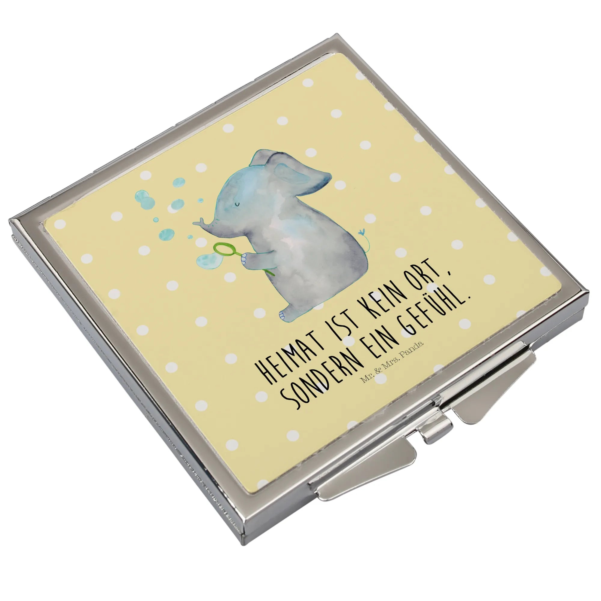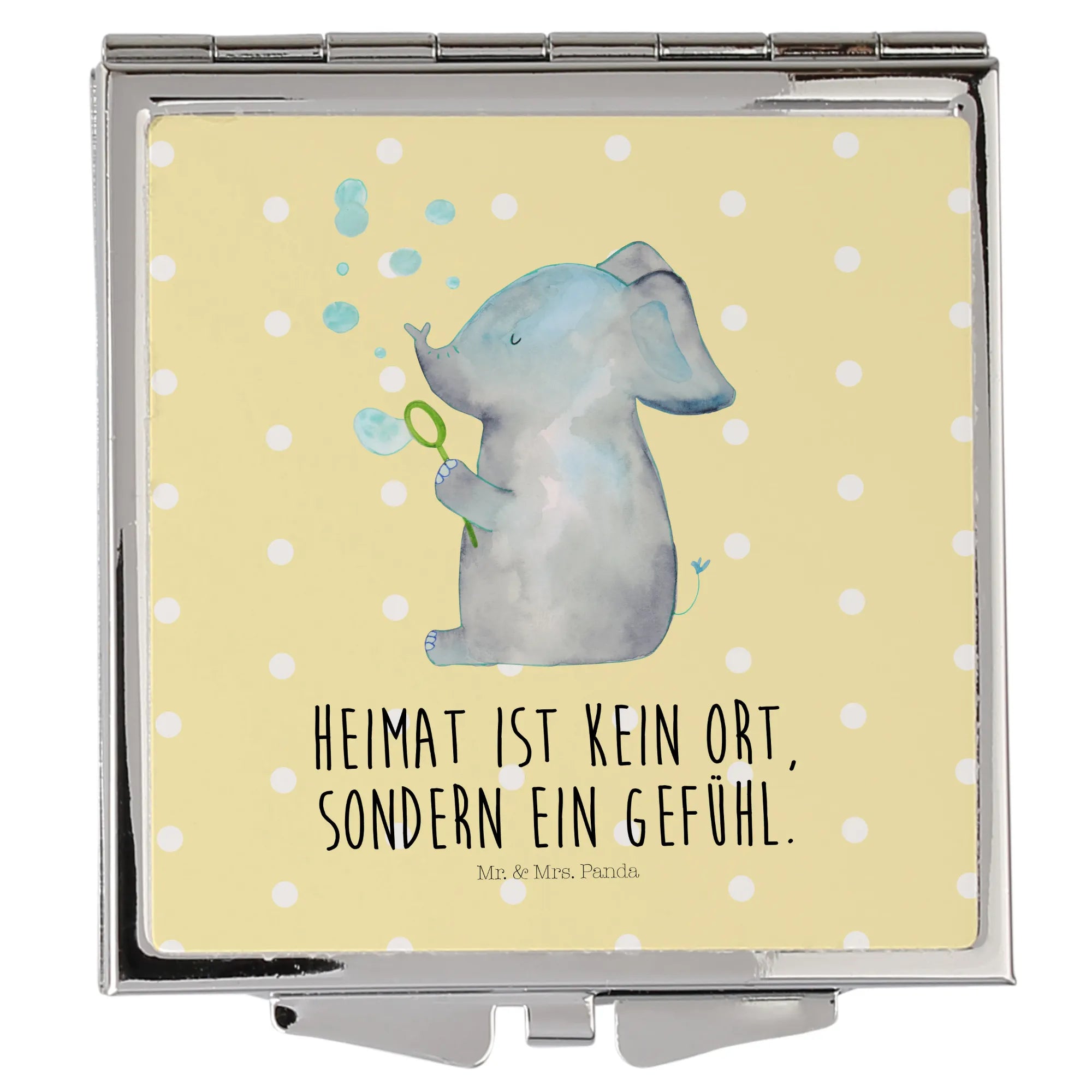 Handbag mirror elephant soap bubbles - with a saying - Yellow Pastel