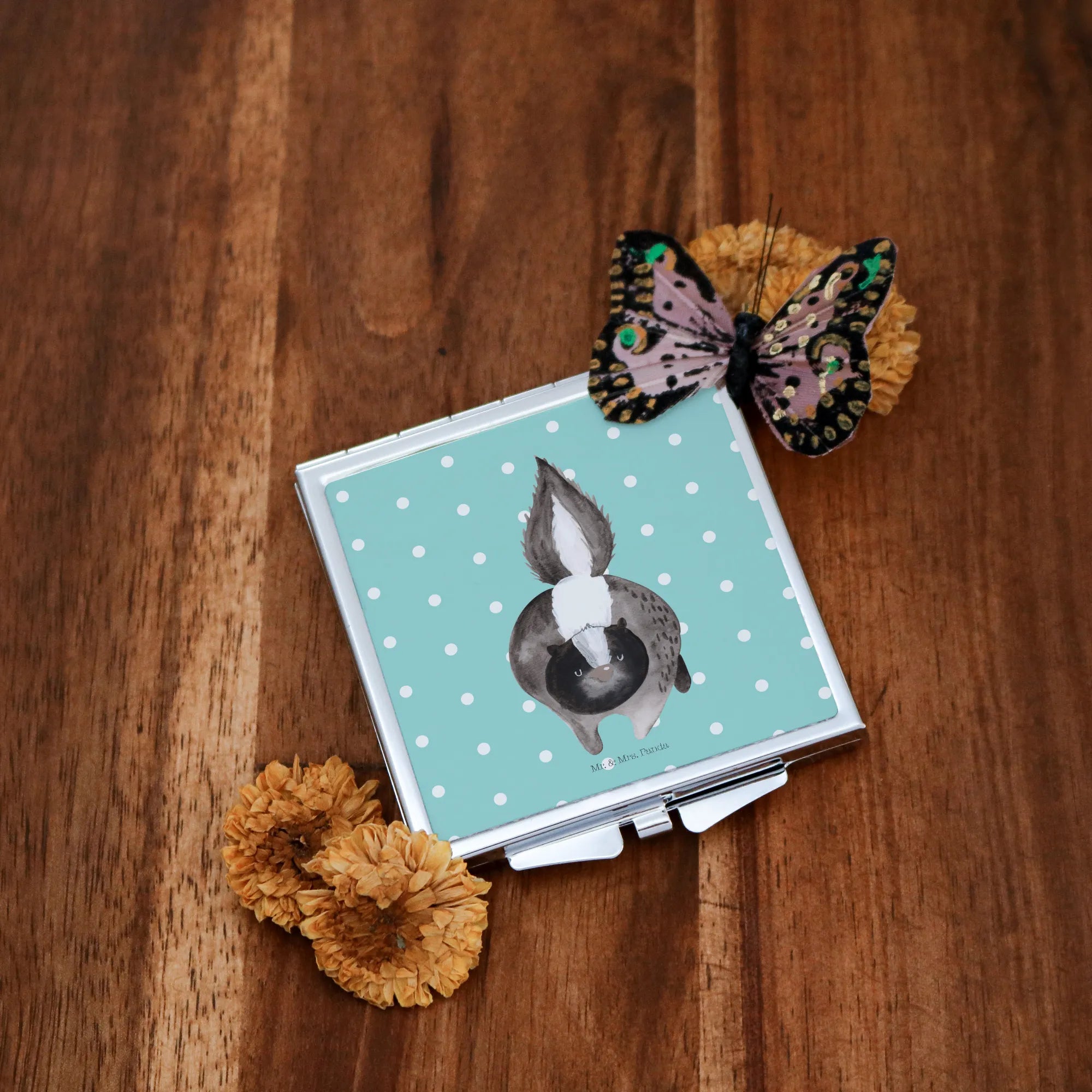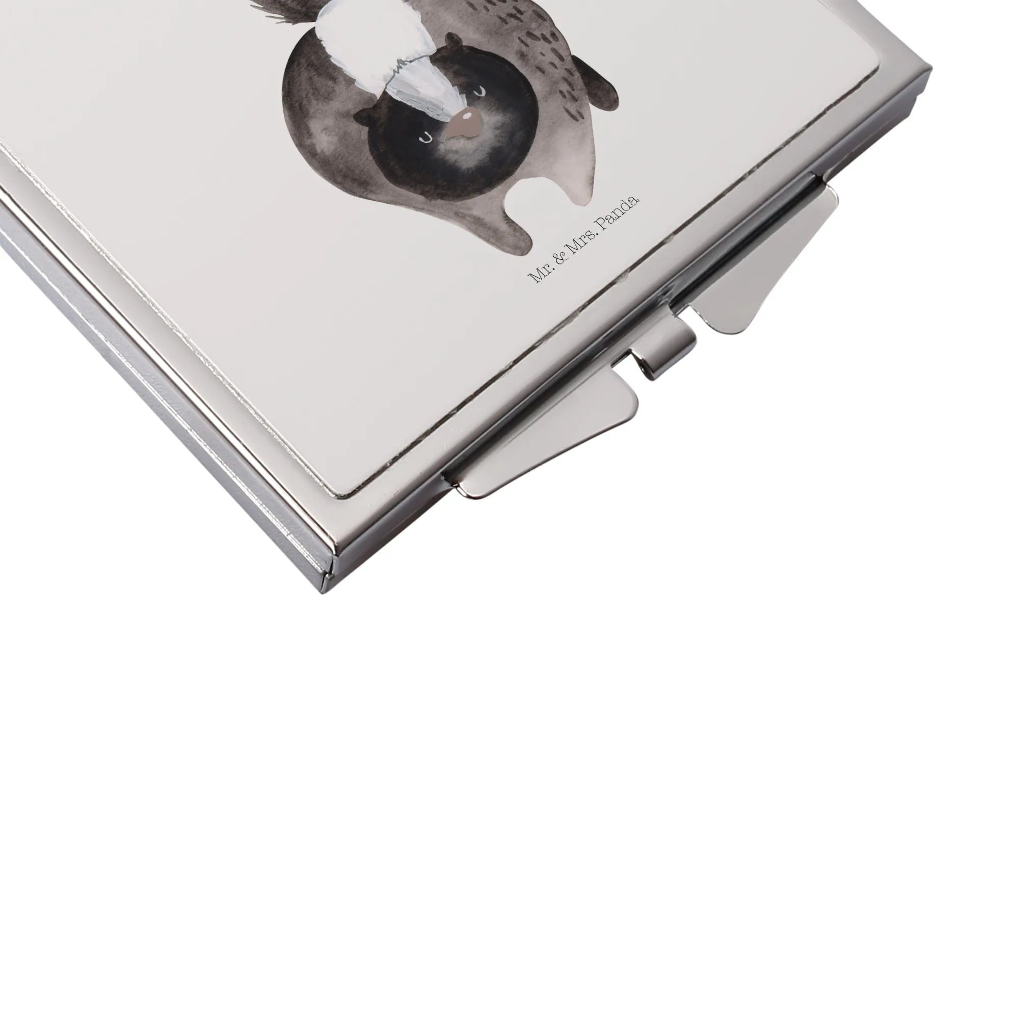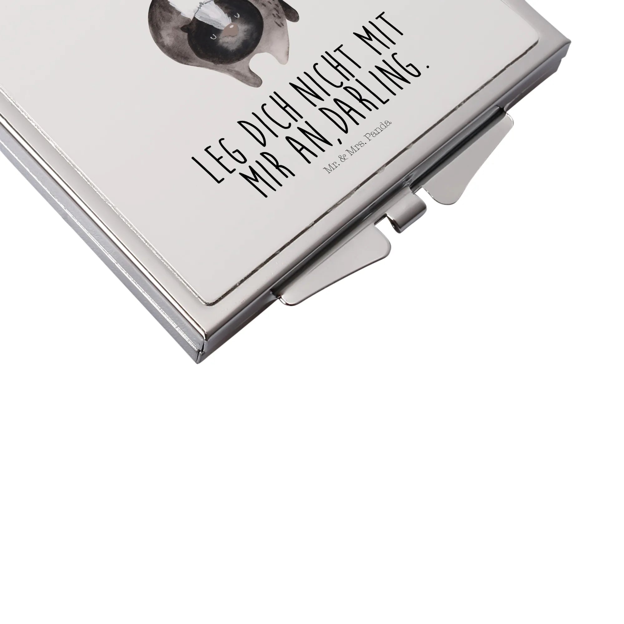 Step into elegance with the enchanting Handbag Mirror from Mr. & Mrs. Panda! This square mirror, sized 60 mm x 60 mm x 8 mm, features delightful motifs and cheerful quotes that elevate any moment. Crafted from top-quality glass with an aluminum metal frame, this durable yet graceful piece is adorned with a shiny silver plating for a classy finish. Its compact, square design means it easily fits into your handbag or backpack, making it the ideal accessory for your on-the-go lifestyle. The secure folding closure prevents scratches and damages, keeping your mirror pristine. Whether it's for a quick touch-up, a spontaneous selfie, or as a thoughtful gift, this mirror will surely bring joy to every recipient. With just a simple wipe using a damp cloth, it remains sparkling clean for all your beauty needs. Bring the Mr. & Mrs. Panda charm into your daily routine with this lovely handbag mirror!