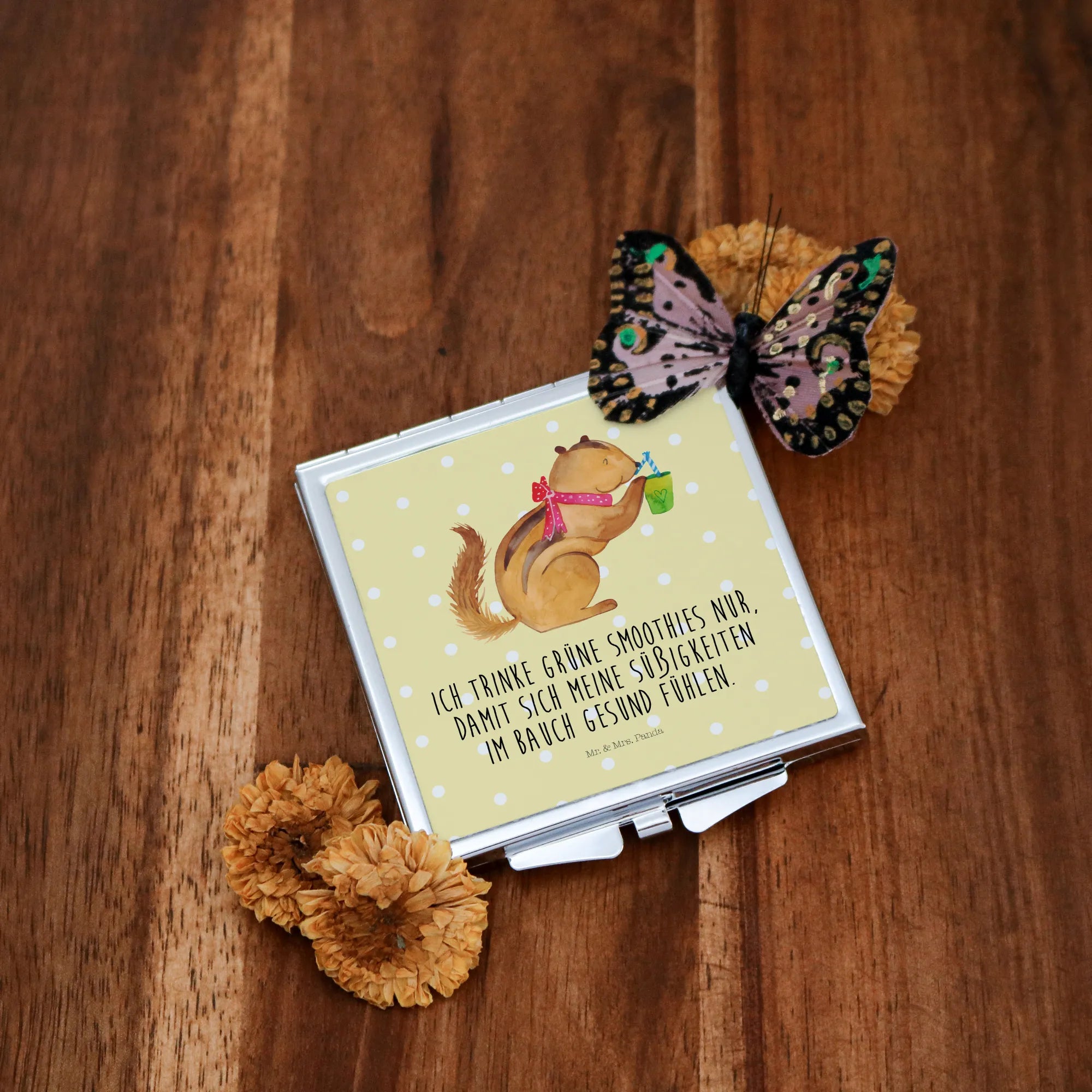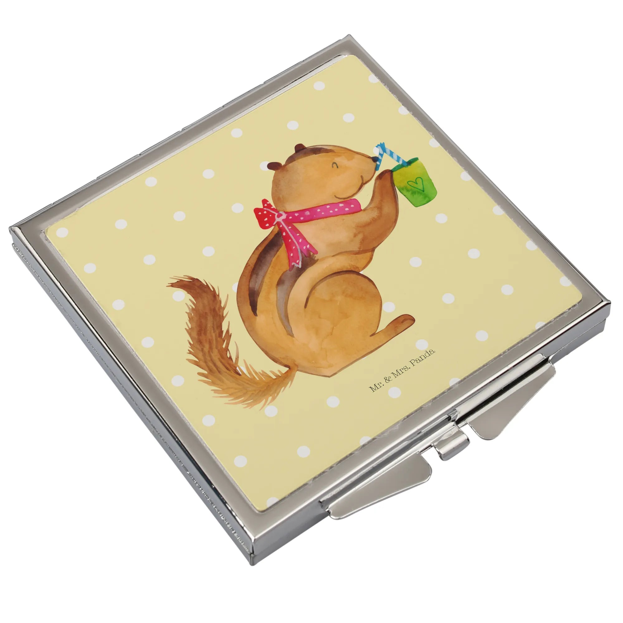 Handbag mirror Squirrel smoothies - with a saying - Yellow Pastel