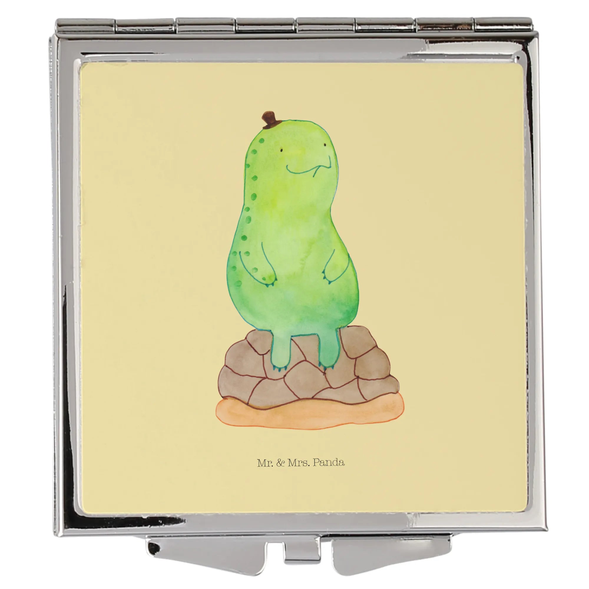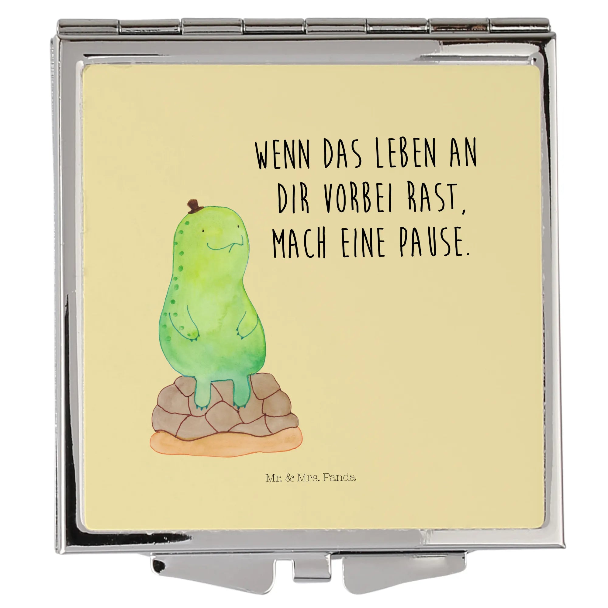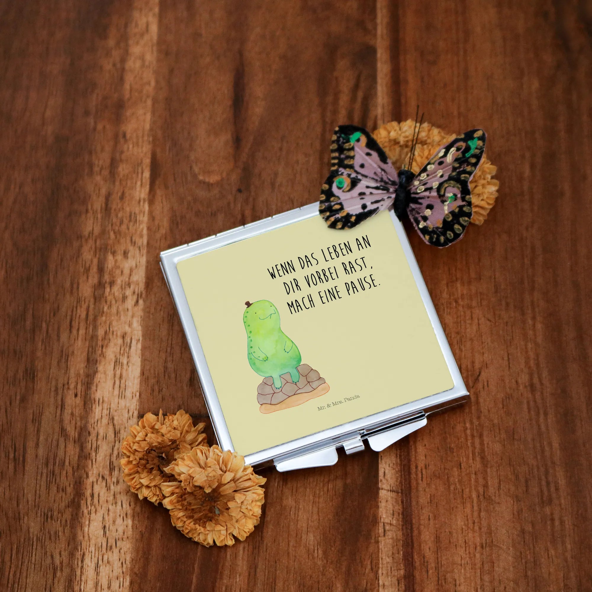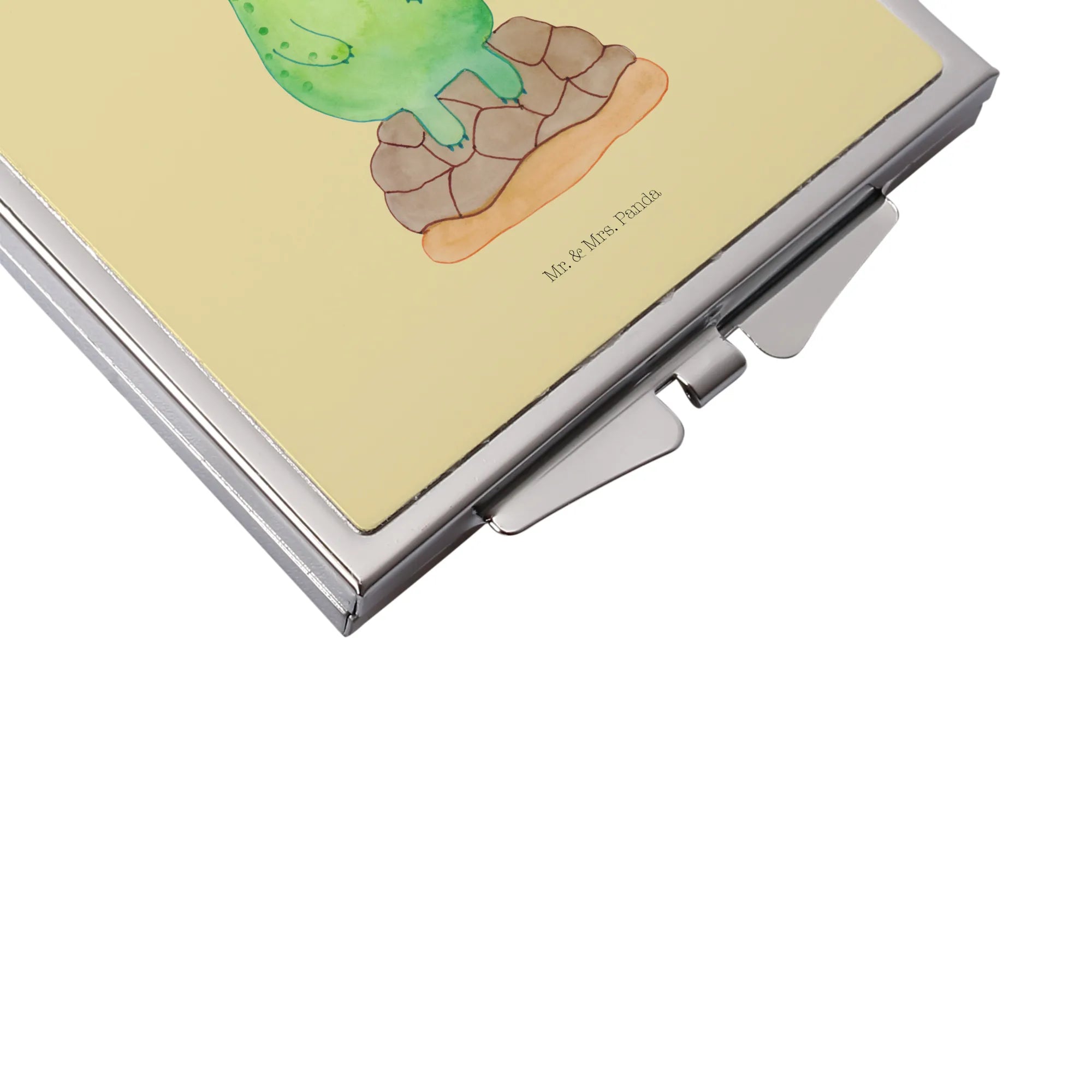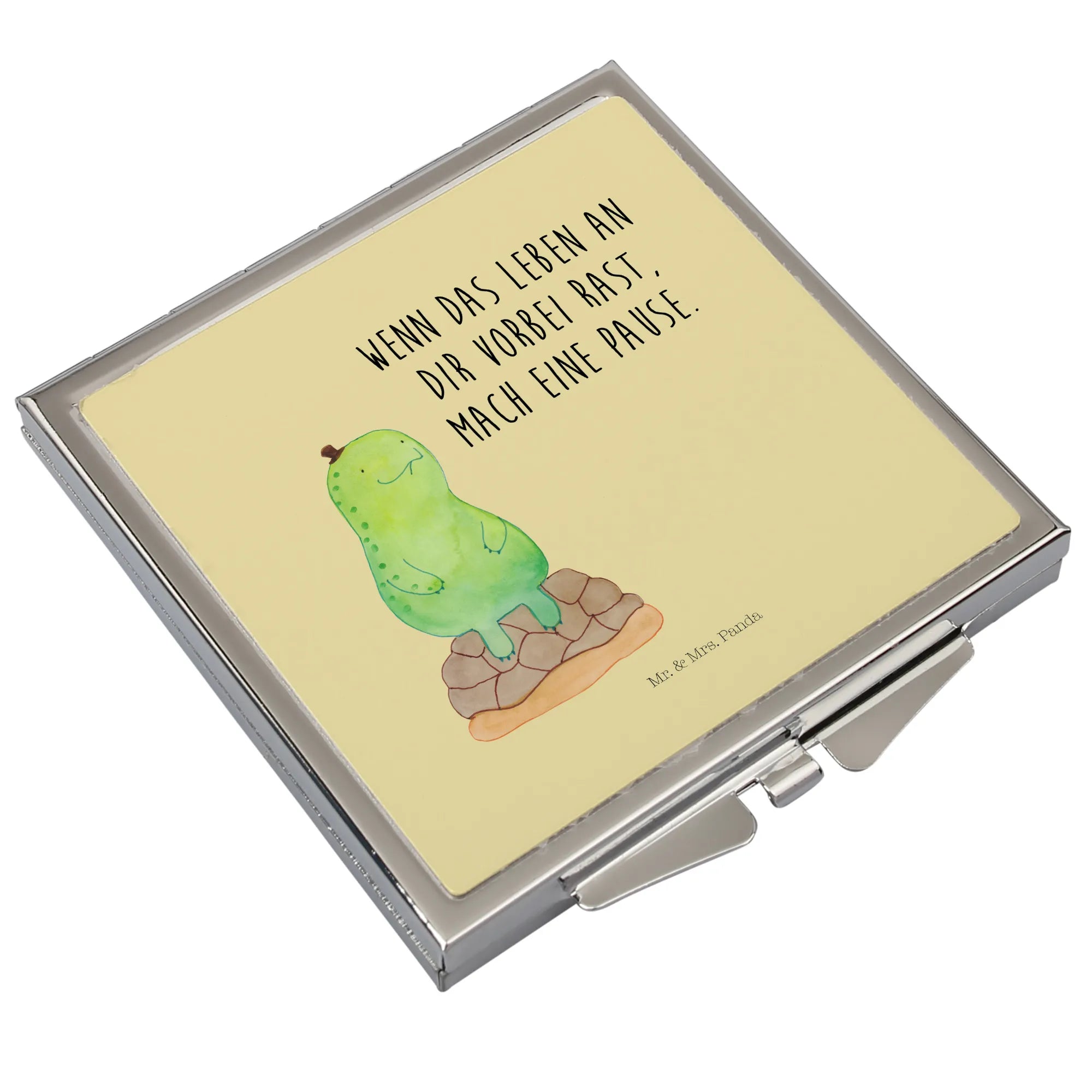 Handbag mirror tortoise Break - with saying - Pastel Yellow