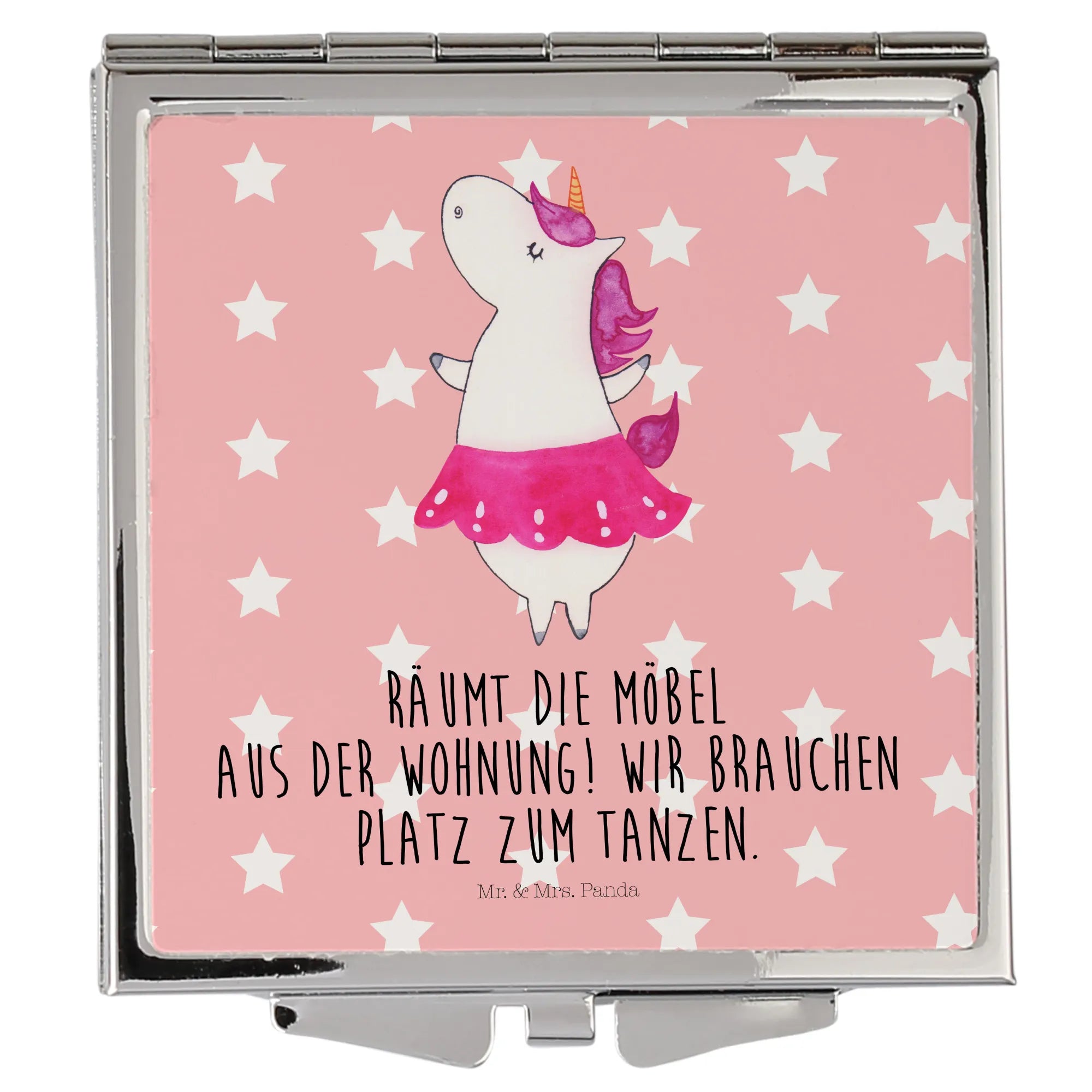 Der perfekte Begleiter für unterwegs: Unser quadratischer Handtaschenspiegel „Einhorn Ballerina“ von Mr. & Mrs. Panda vereint süßes Design und praktische Funktion. Der Kompaktspiegel im Klappformat passt in jede Handtasche und ist immer dann zur Stelle, wenn du einen schnellen Blick in den Schminkspiegel brauchst.