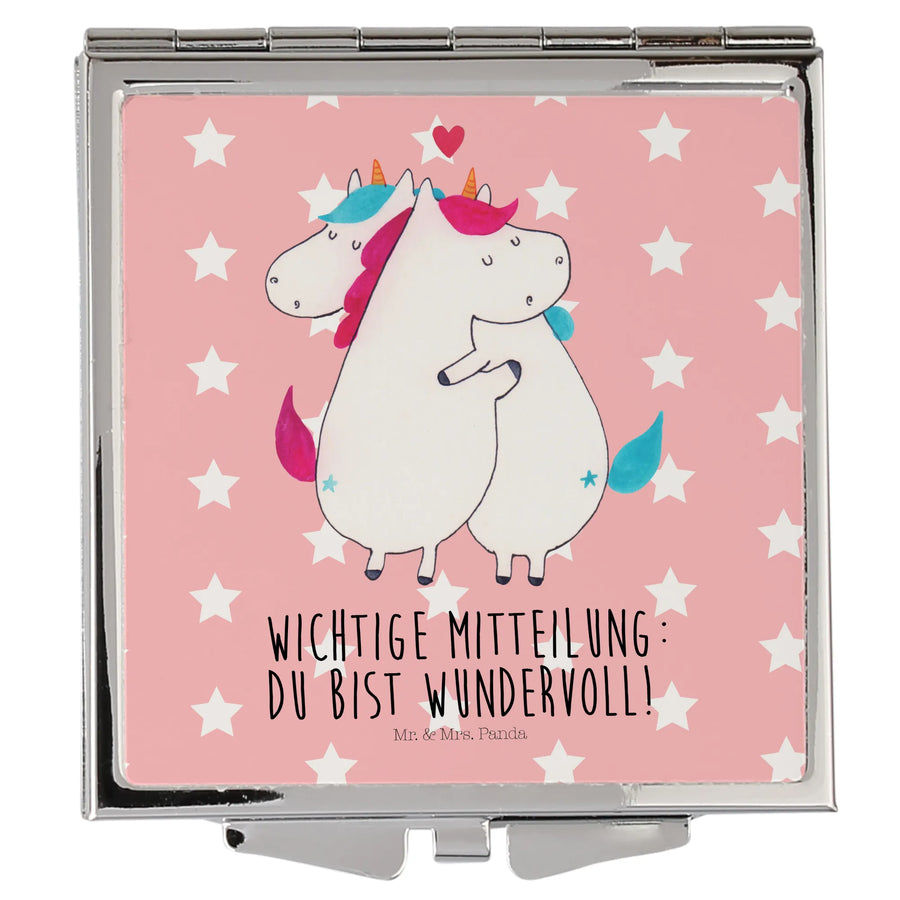 Handbag mirror unicorn communication - with saying - Red Pastel