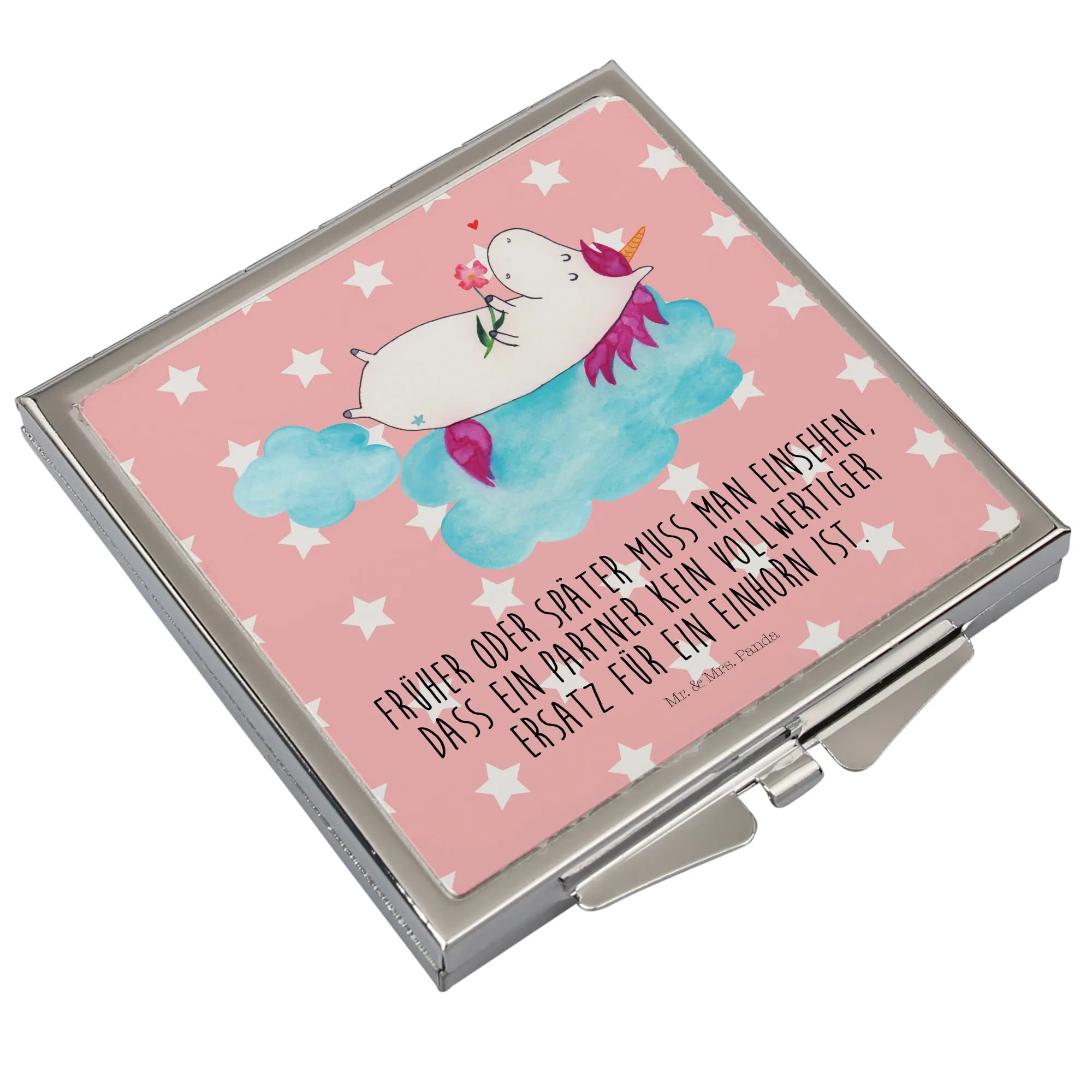 Discover the beauty of our square Handbag Mirror from Mr. & Mrs. Panda, designed to be your perfect travel companion. Measuring 60 mm x 60 mm x 8 mm, this stylish mirror is adorned with charming motifs and lighthearted sayings that will brighten your day. Made with high-quality glass and coated in aluminum, the mirror not only boasts an impressive durability but also features an elegant silver-plated edge that enhances its aesthetic allure. Its compact square shape ensures that it fits effortlessly into any purse or backpack, making it the ultimate accessory for on-the-go touch-ups. The easy-to-use folding mechanism ensures a secure closure, keeping your mirror safe from scratches. Whether as a thoughtful gift or a treat for yourself, this handbag mirror showcases the delightful essence of Mr. & Mrs. Panda. Suitable for quick make-up adjustments or a quick check before you head out, it's a must-have for anyone who values functionality alongside style. Just wipe it clean with a damp cloth to maintain its sparkle.