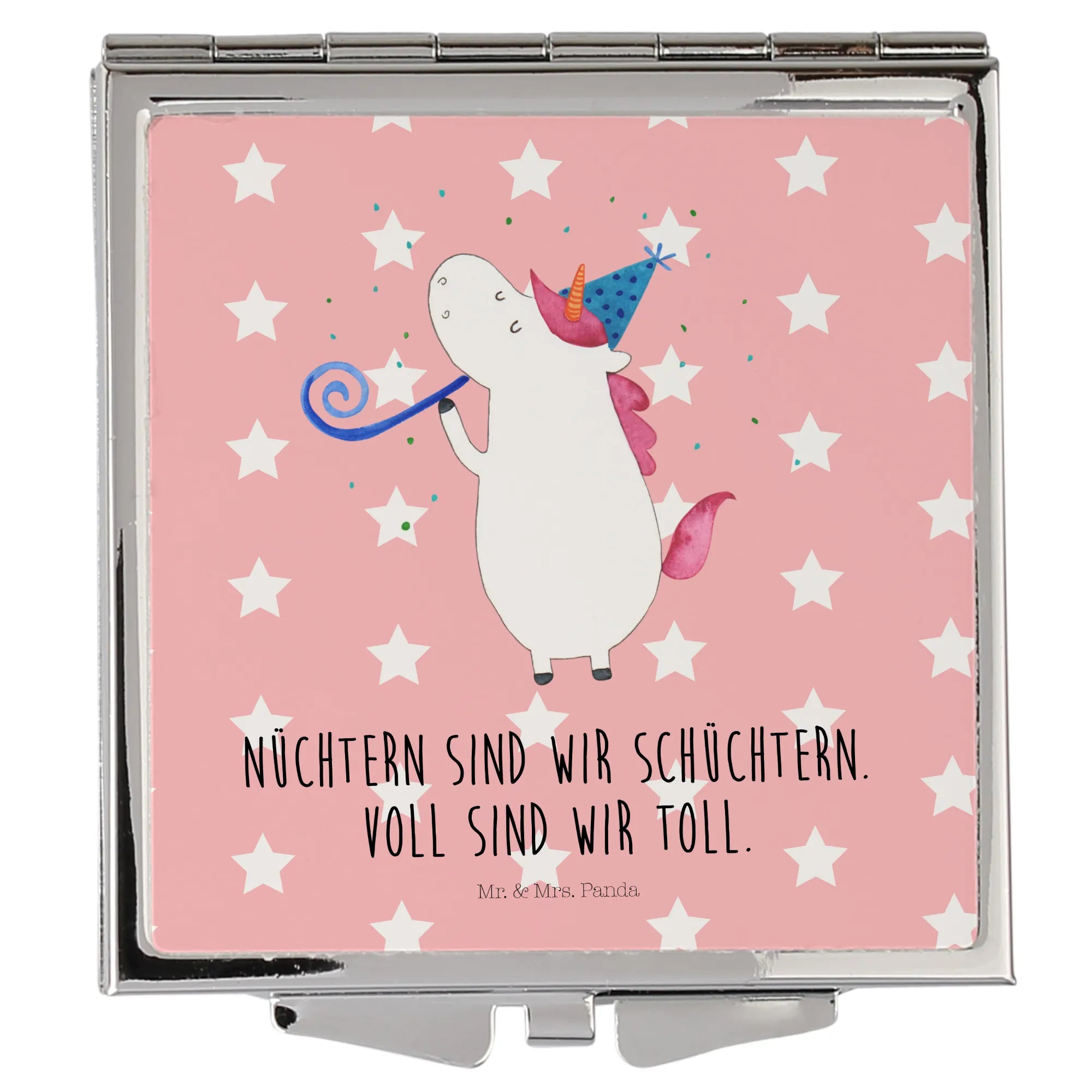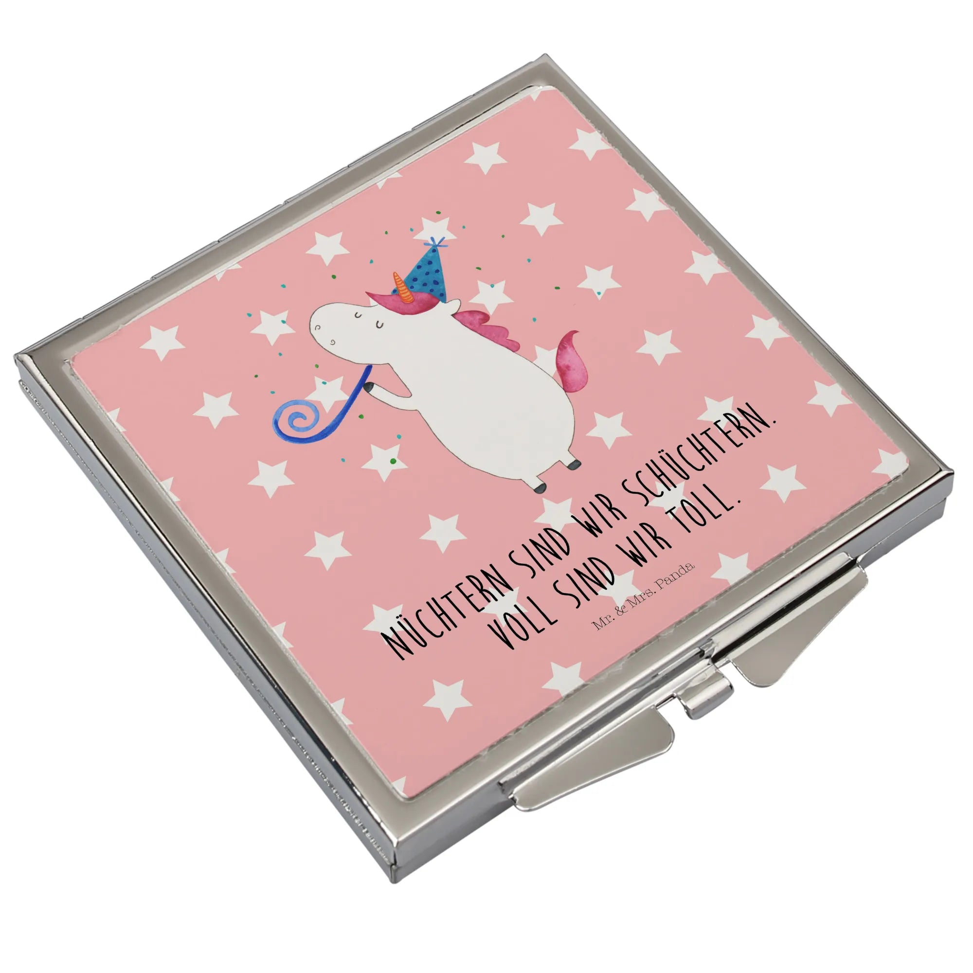 Discover the beauty of our square Handbag Mirror from Mr. & Mrs. Panda, designed to be your perfect travel companion. Measuring 60 mm x 60 mm x 8 mm, this stylish mirror is adorned with charming motifs and lighthearted sayings that will brighten your day. Made with high-quality glass and coated in aluminum, the mirror not only boasts an impressive durability but also features an elegant silver-plated edge that enhances its aesthetic allure. Its compact square shape ensures that it fits effortlessly into any purse or backpack, making it the ultimate accessory for on-the-go touch-ups. The easy-to-use folding mechanism ensures a secure closure, keeping your mirror safe from scratches. Whether as a thoughtful gift or a treat for yourself, this handbag mirror showcases the delightful essence of Mr. & Mrs. Panda. Suitable for quick make-up adjustments or a quick check before you head out, it's a must-have for anyone who values functionality alongside style. Just wipe it clean with a damp cloth to maintain its sparkle.